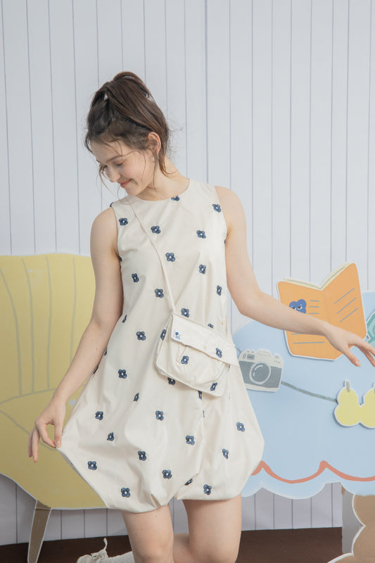 Muse Sheer Embroidery Sleeveless Dress (Beige)