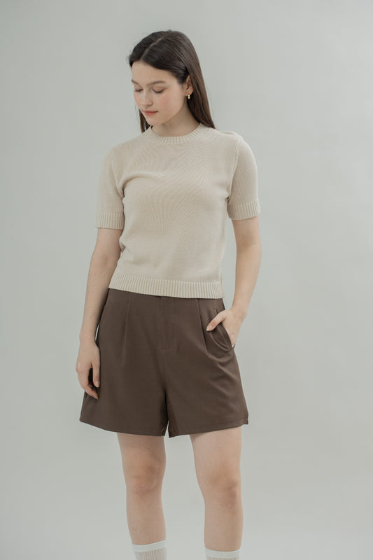 Dolman Sleeve Pleated Top (Beige)