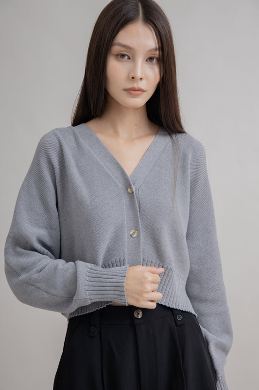 Slip into easy comfort with this classic V-neck knit cardigan in a cool grey tone....
