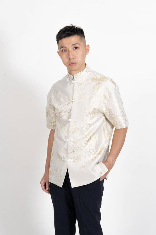 Menswear Floral Gold Embroidery Tang Suit (Beige)