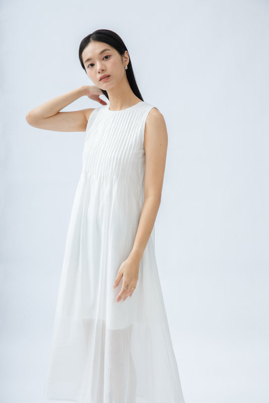 Light, airy, and effortlessly elegant — this Pintuck Sleeveless Dress in ivory is crafted from...