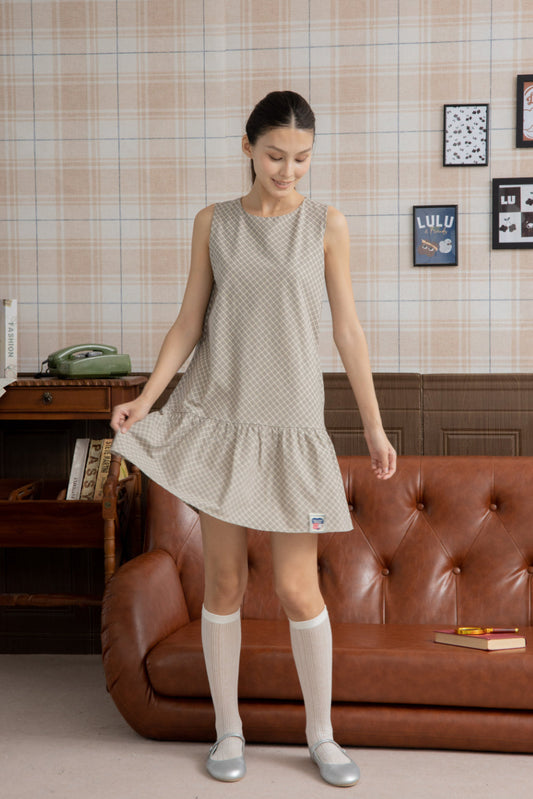 LULU Plaid Sleeveless Dress (Brown Plaid)