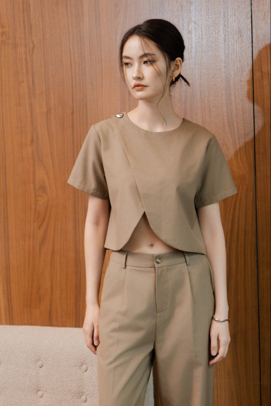 Axis Overlap Short Sleeve Top (Khaki)