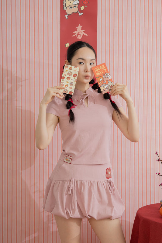 LULU Ribbon Collared Cheongsam Top (Pink)