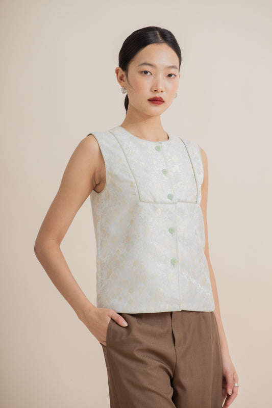Jacquard Cheongsam Sleeveless Top (Pale Green)