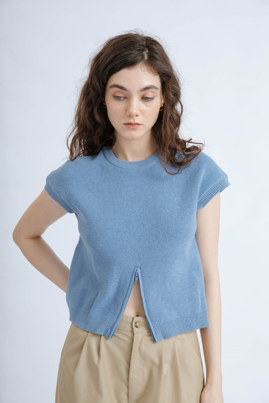 Elevate your everyday essentials with this modern sleeveless knit top, crafted from 90% recycled polyester...