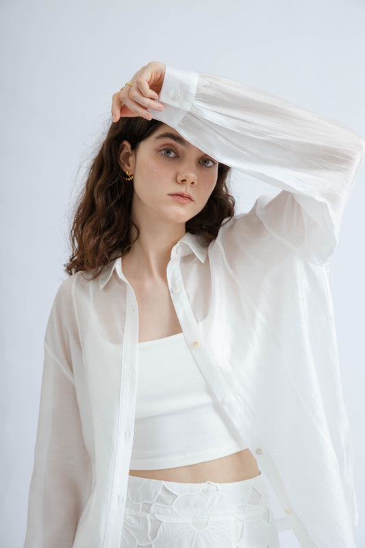Sheer Long Sleeve Tencel Shirt (Ivory)