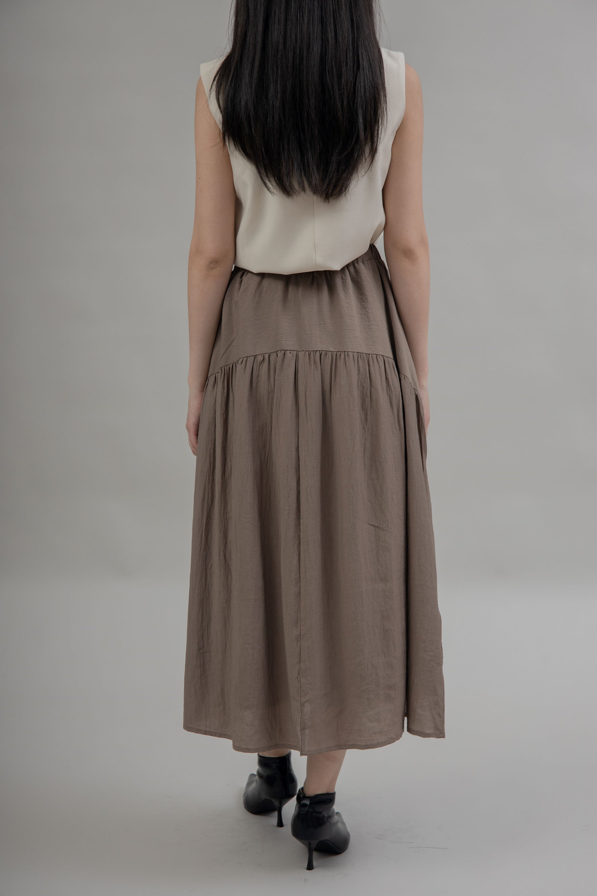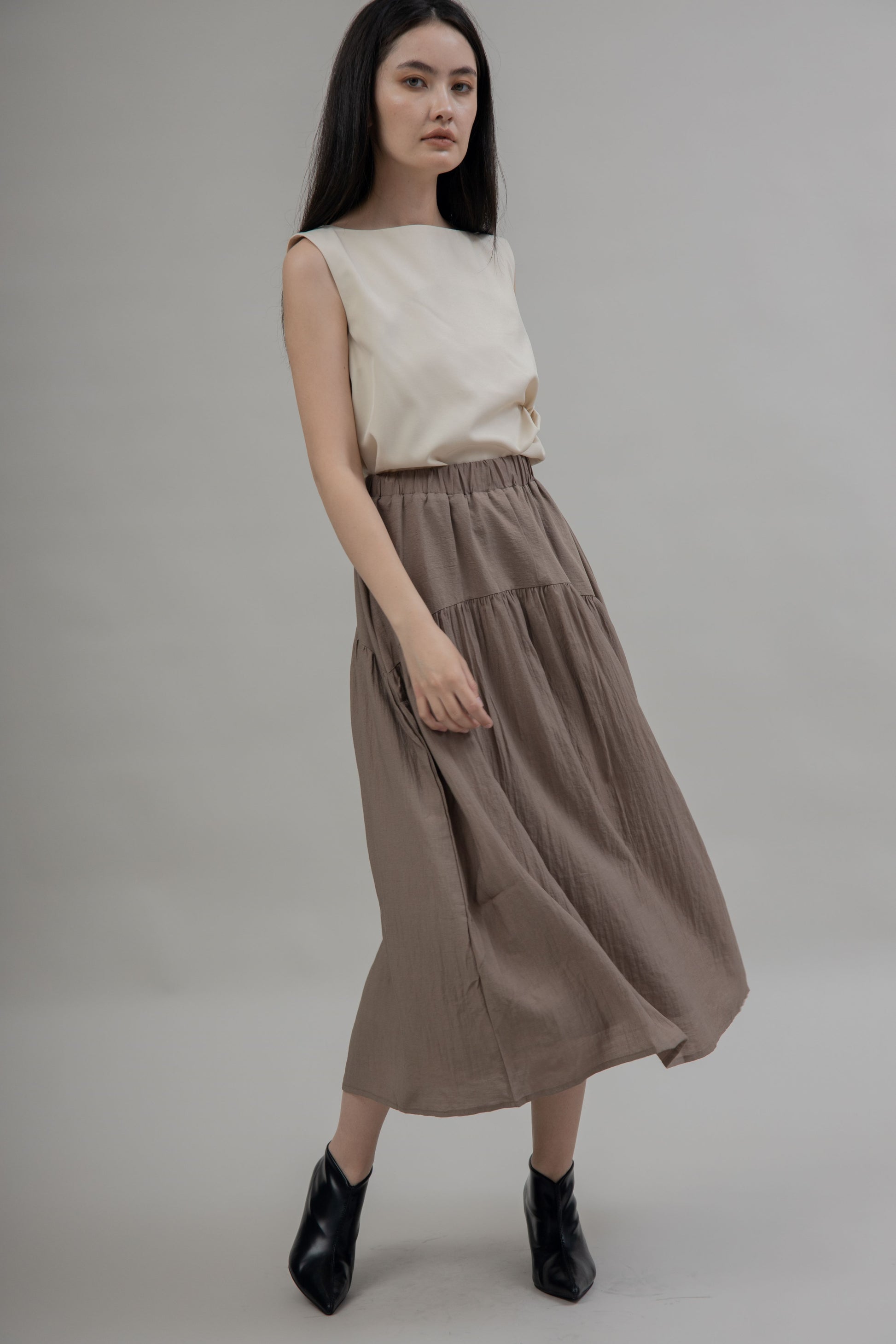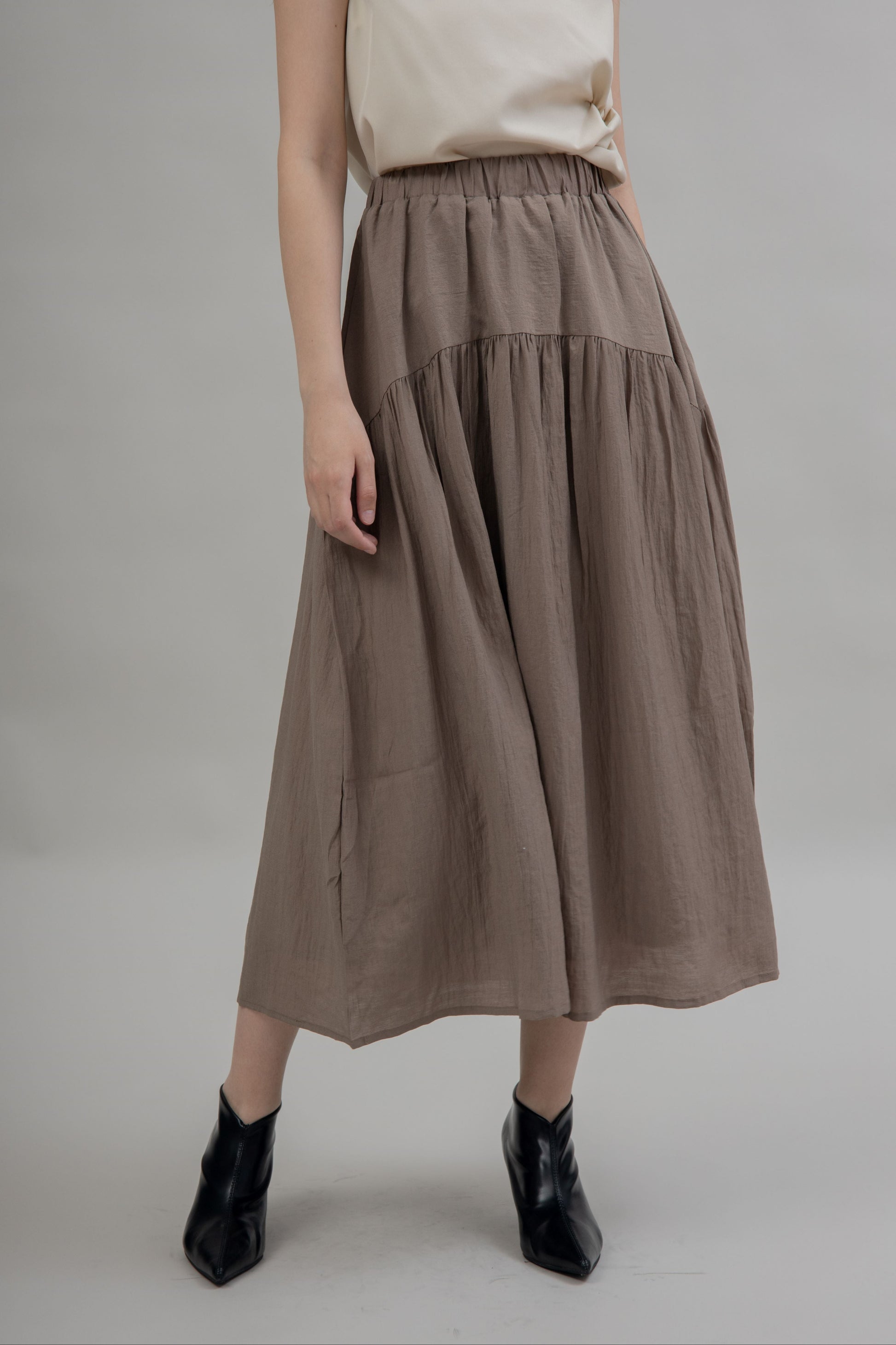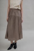 A sophisticated look is easily achievable with this full-length skirt, crafted from a luxuriously soft blend of 86% Viscose, 11% Polyester and 3% Nylon. The elastic waistband and ruched detailing at the front create a flattering fit and timeless silhouette.