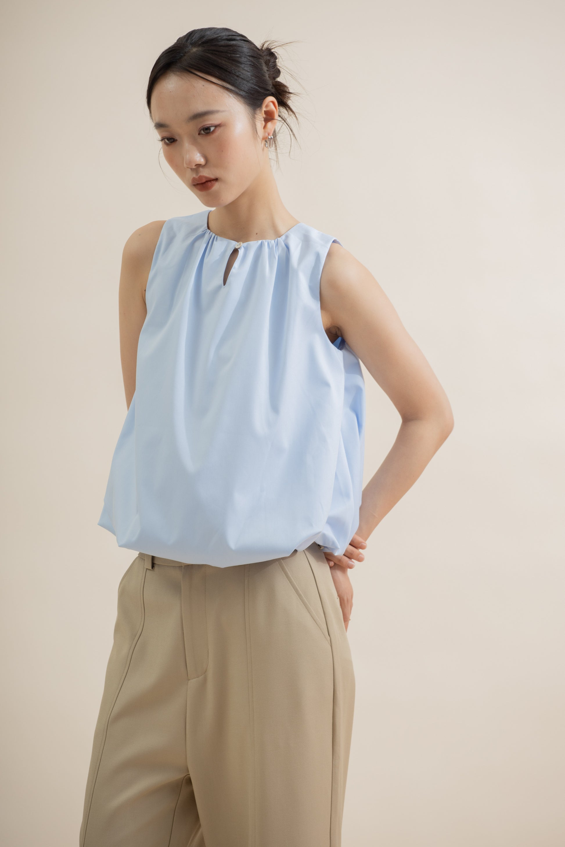 Aeris Two Way Sleeveless Puffy Top (Pastel Blue)
