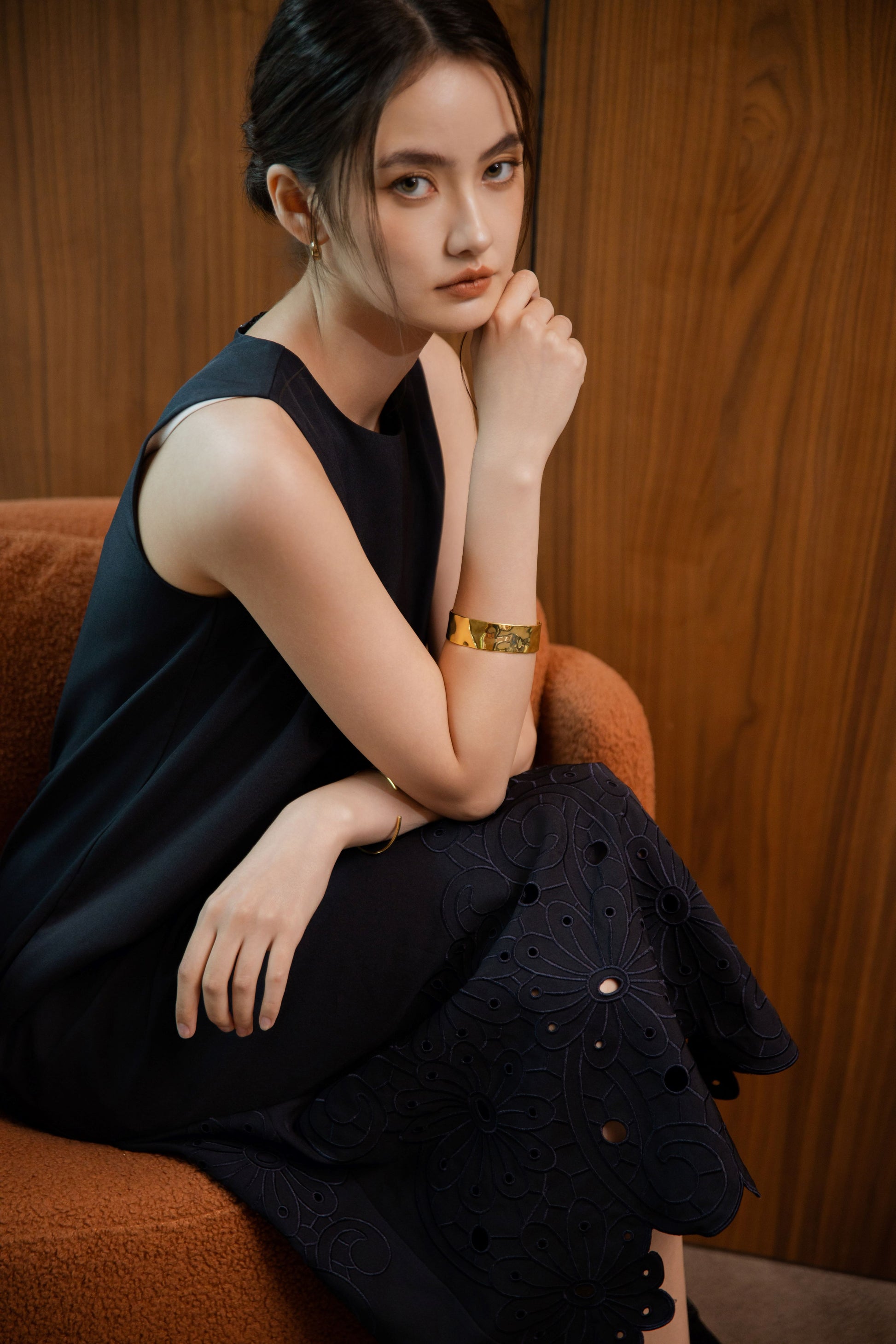 This wide 14K gold bangle makes a statement through clean lines and subtle curves. Designed in a sleek C-curve silhouette, it slips on with ease while offering a secure, comfortable fit. Its polished finish and solid weight give it a timeless presence—striking on its own or paired with finer pieces for contrast. A modern classic, made to last.