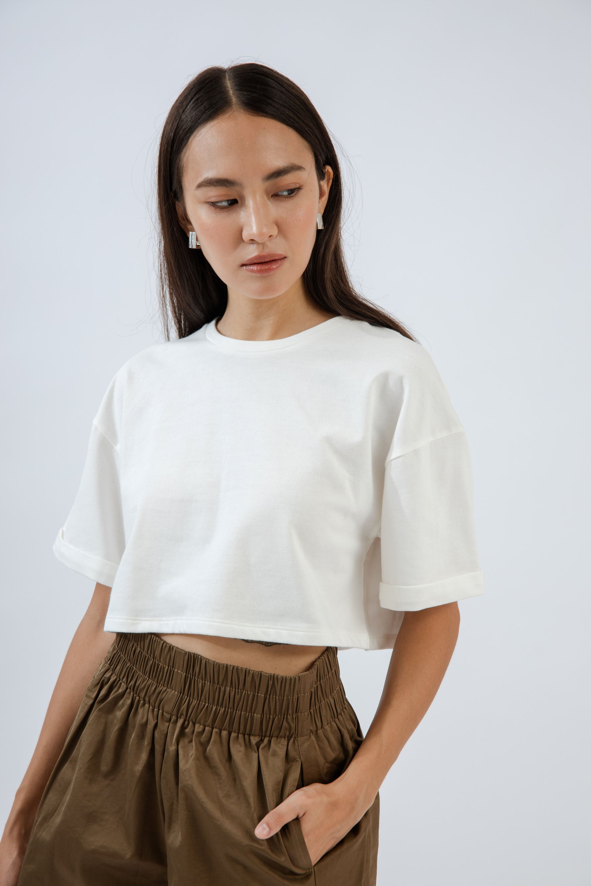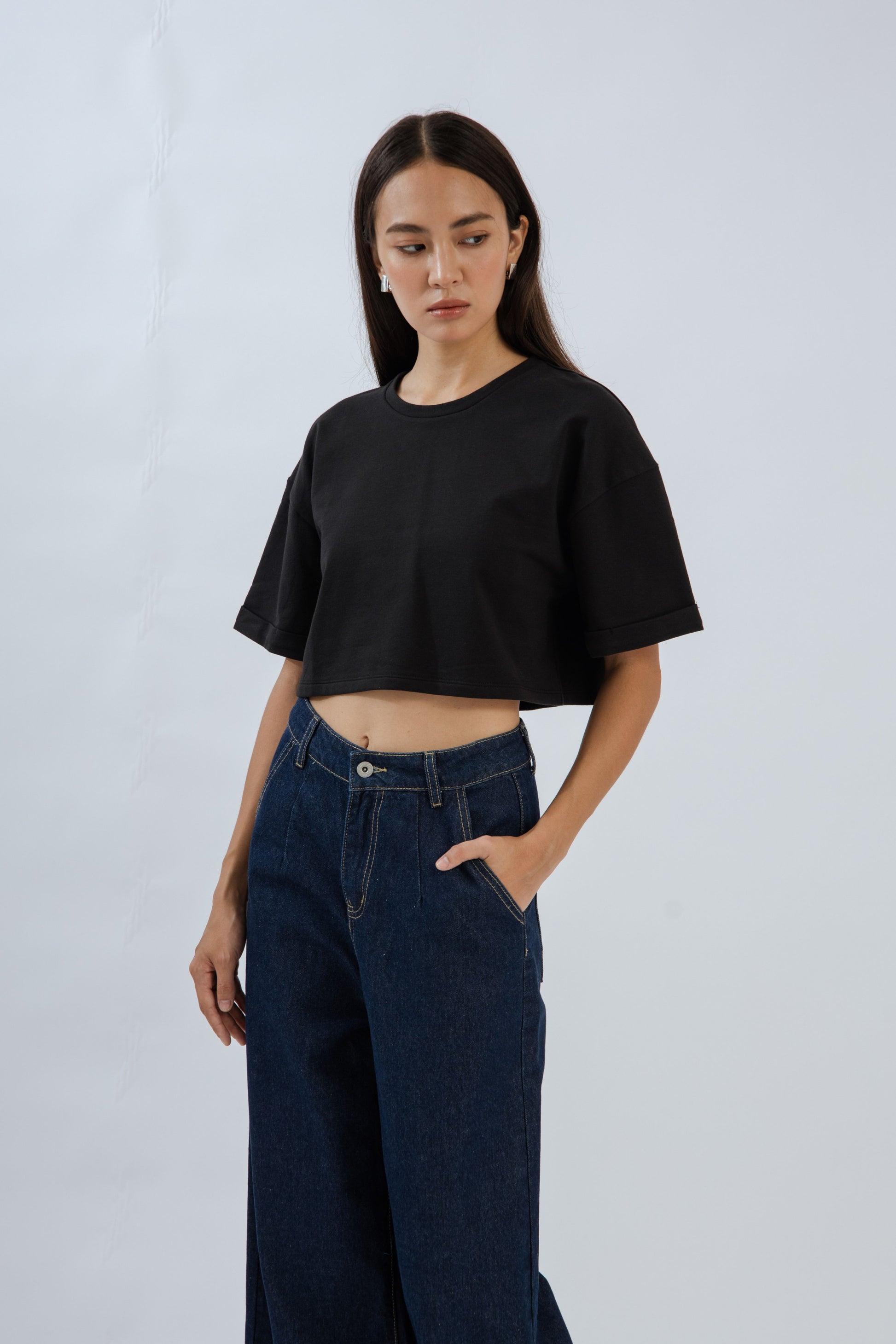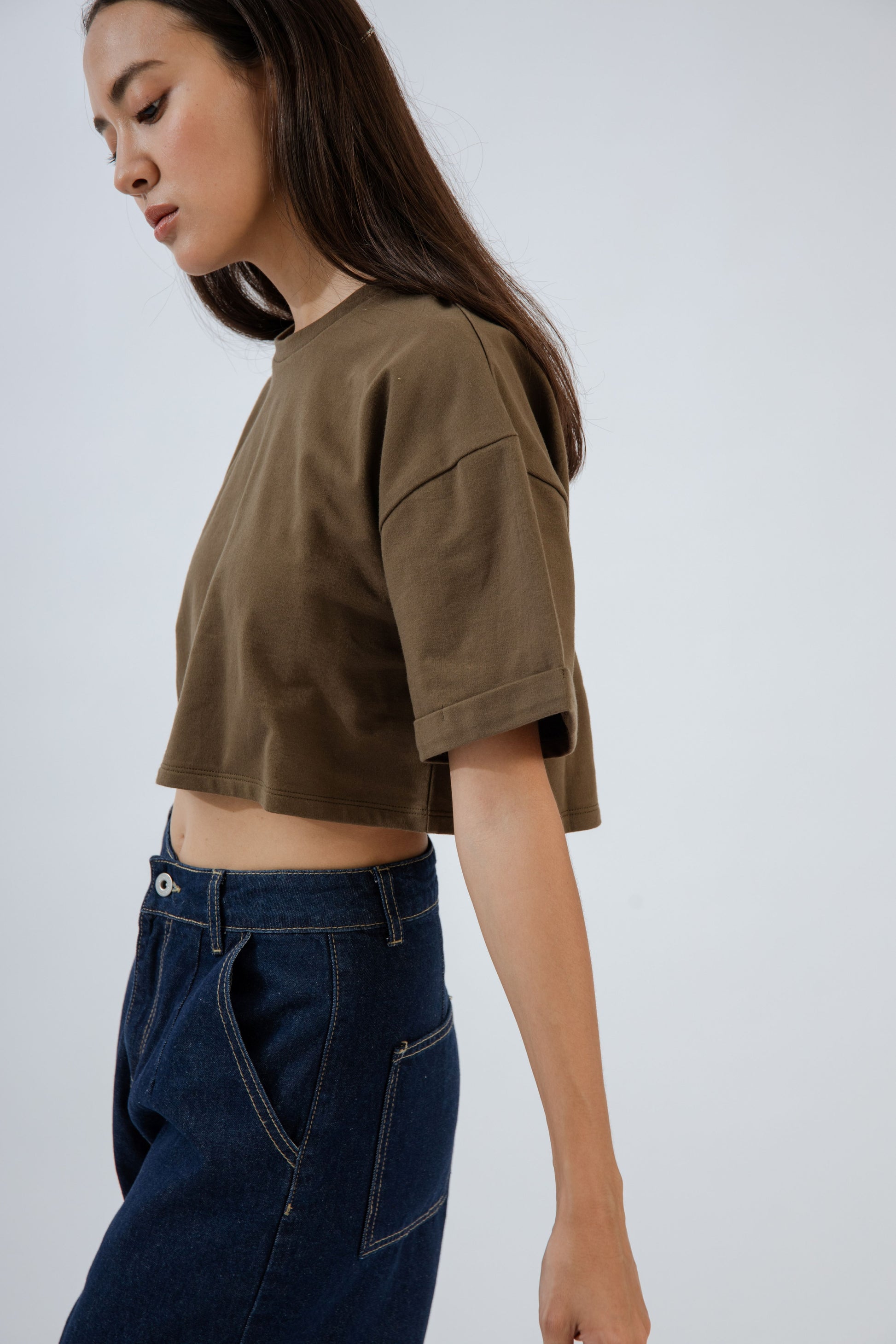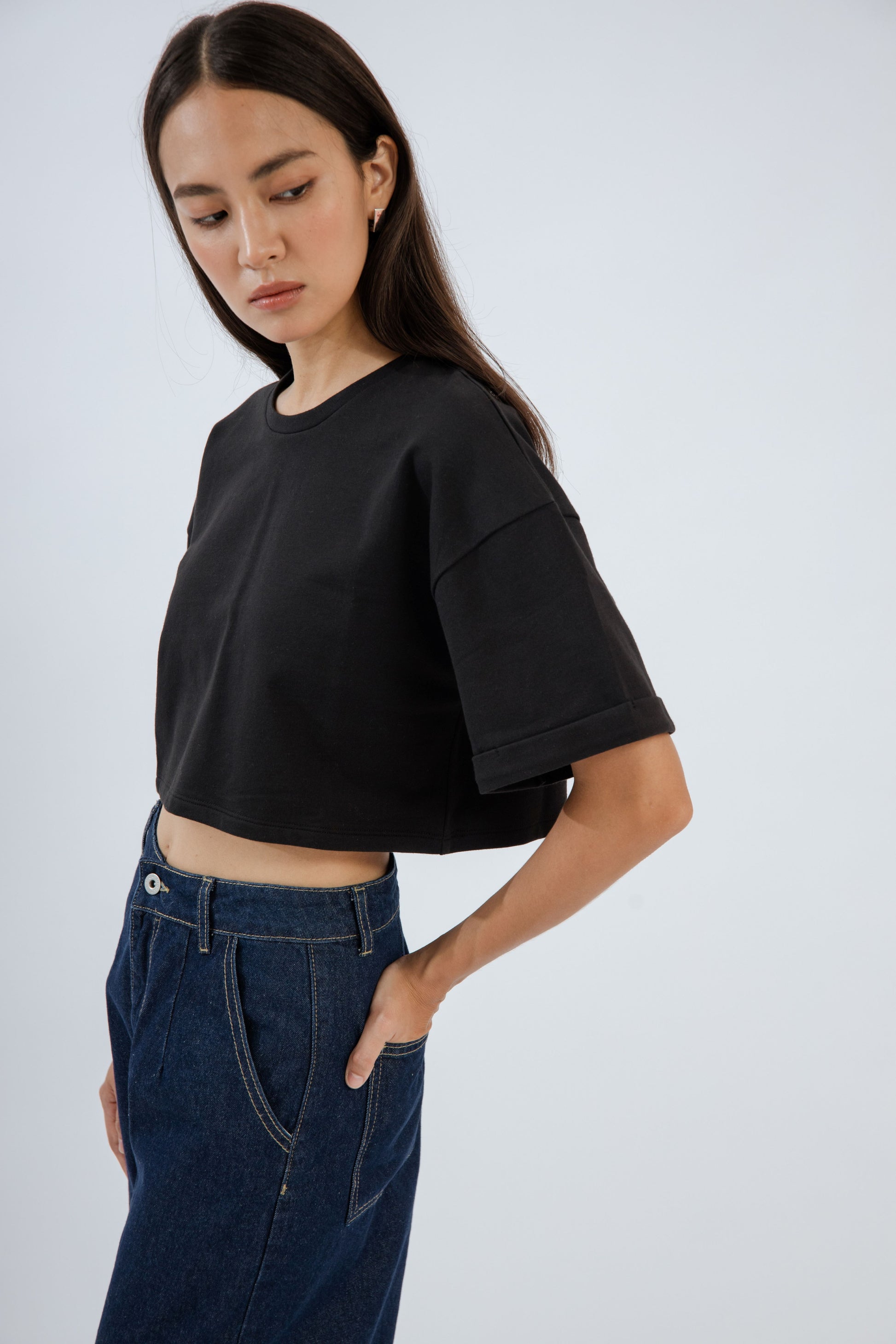 Basic Drop Shoulder Crop Tee