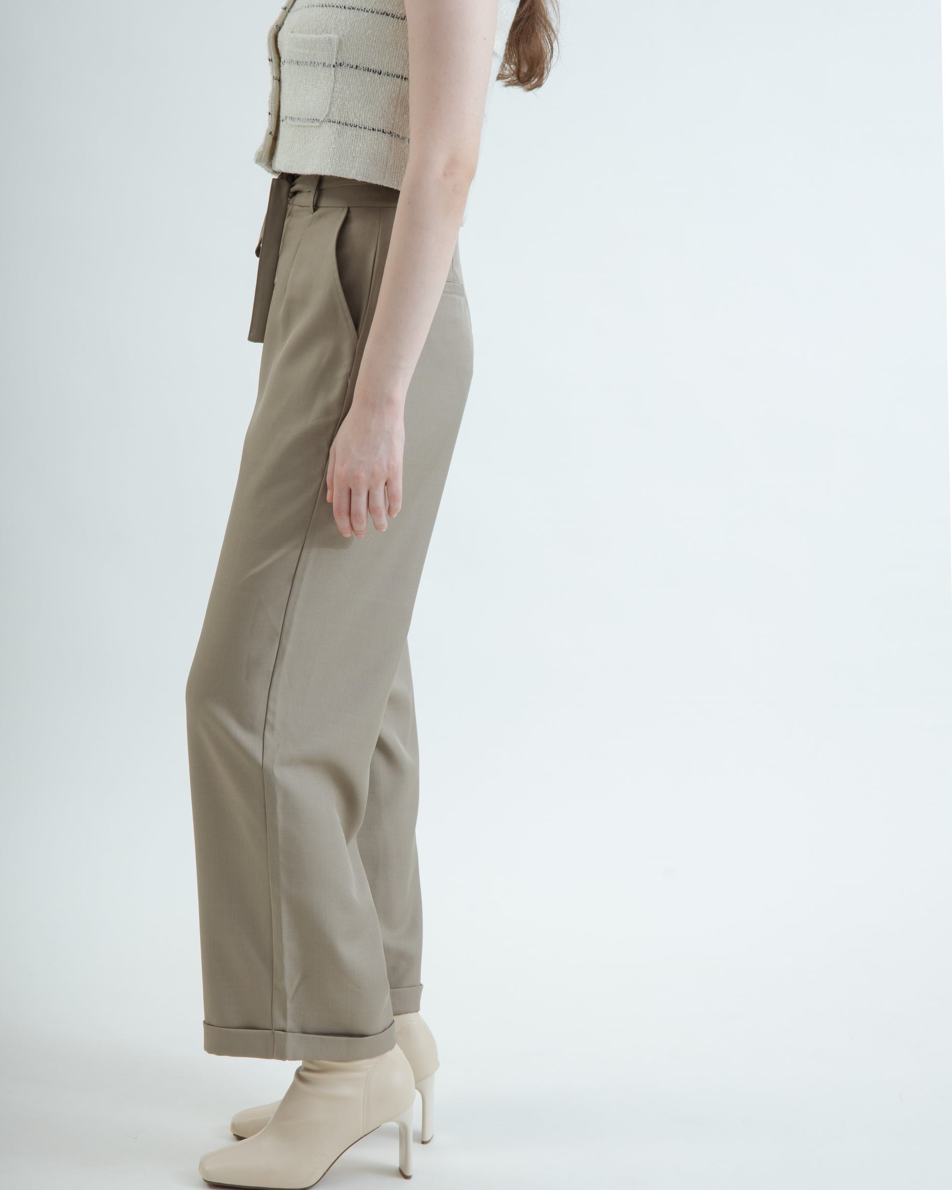 Belted Straight Cut Trousers, made from 95% Polyester and 5% Spandex, feature a sleek suit fabric with excellent vertical drape for a slimming effect. The straight-leg design is complemented by a matching fabric belt, allowing for adjustable styling. With two functional side pockets and decorative faux pockets at the back, these trousers offer both utility and elegance. The folded hem detail at the cuffs adds a touch of sophistication, while the soft, skin-friendly fabric ensures all-day comfort. Perfect for both formal and casual outfits!