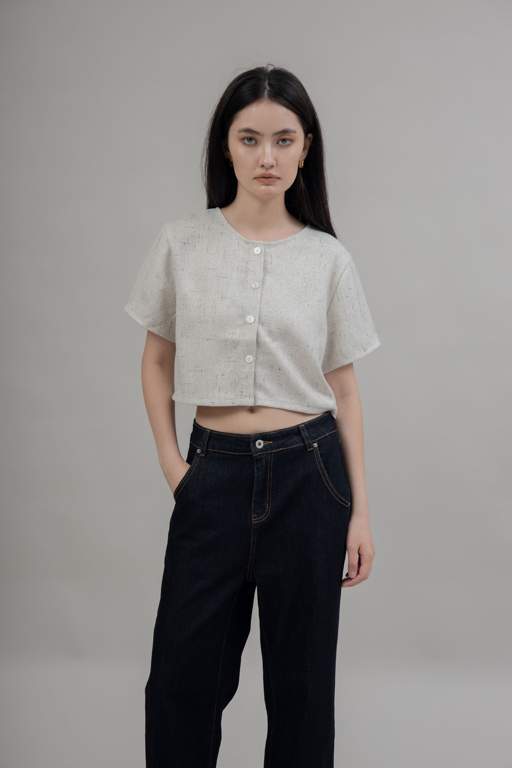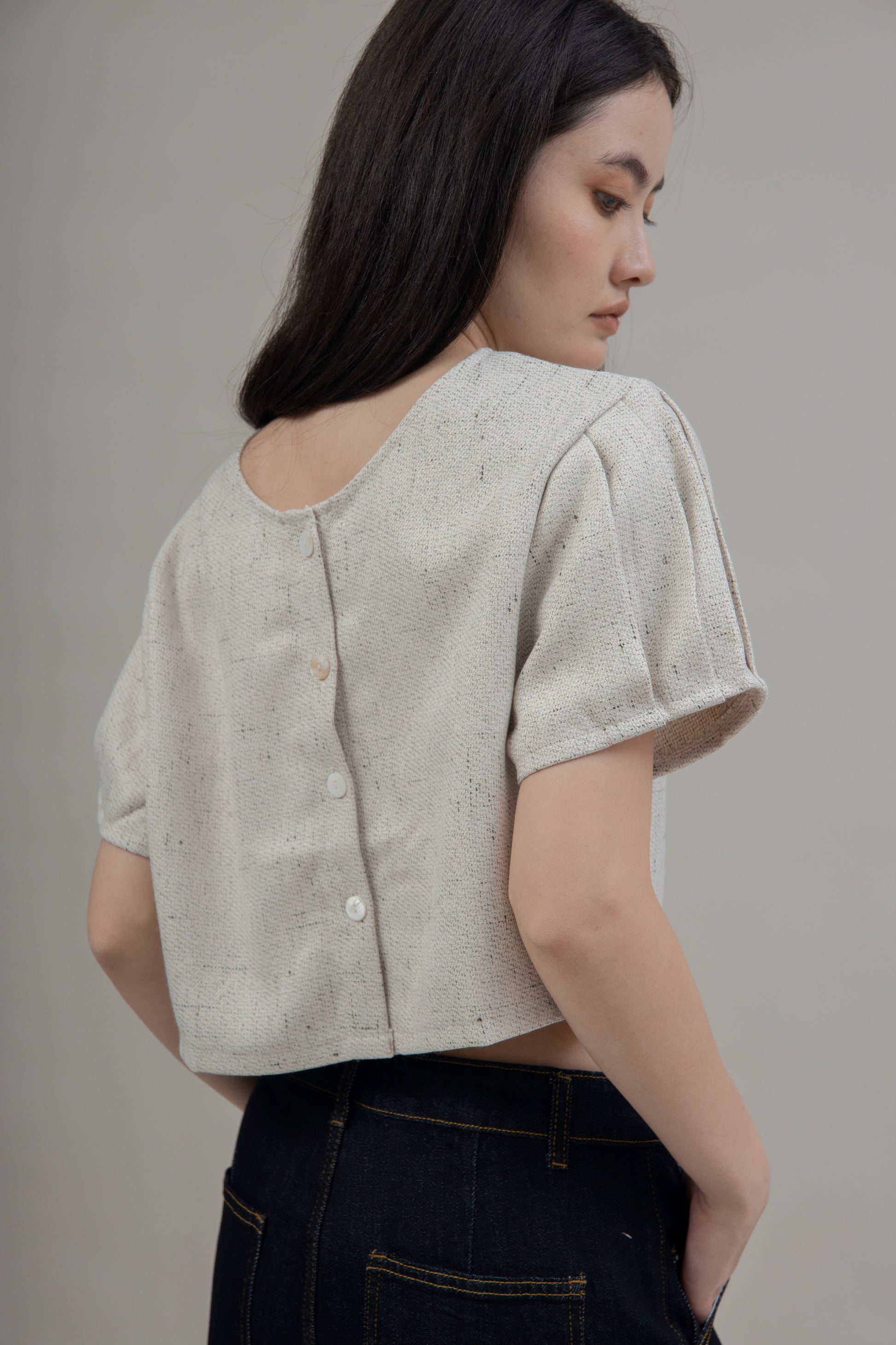 Button Down Tweed Two-Way Blouse (Grey Mix)