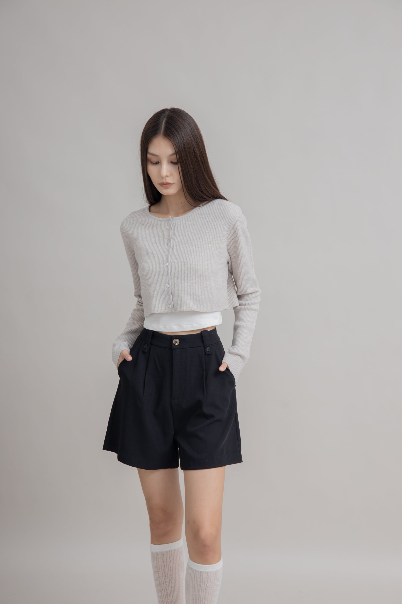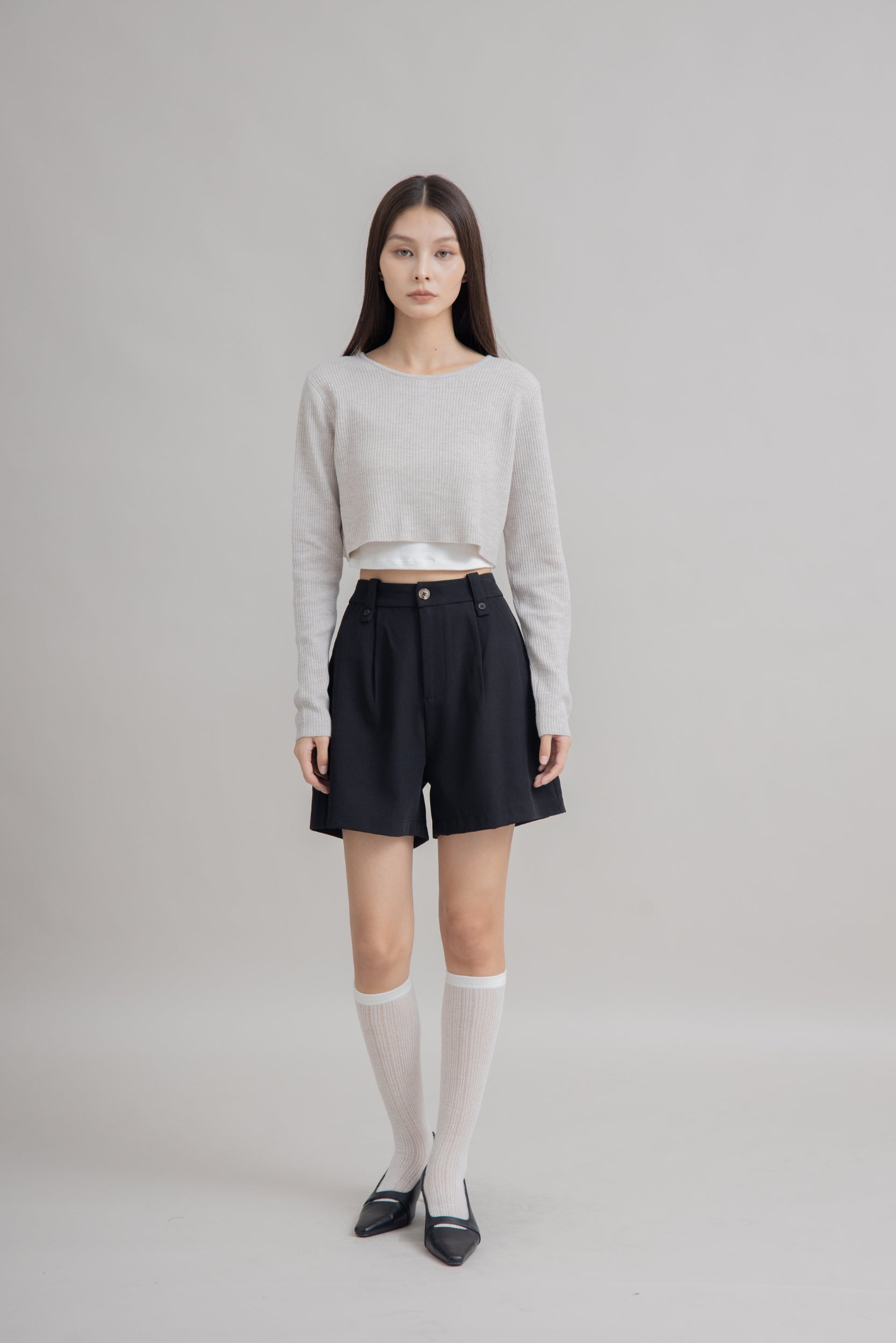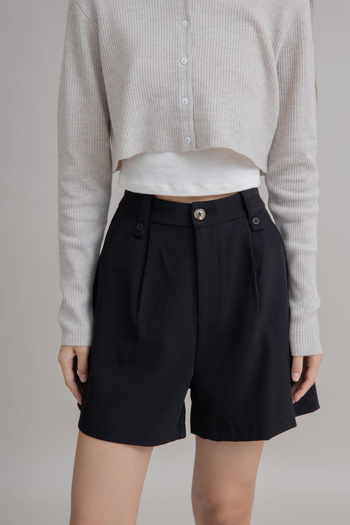 Button Loop Pleated Shorts (Black)