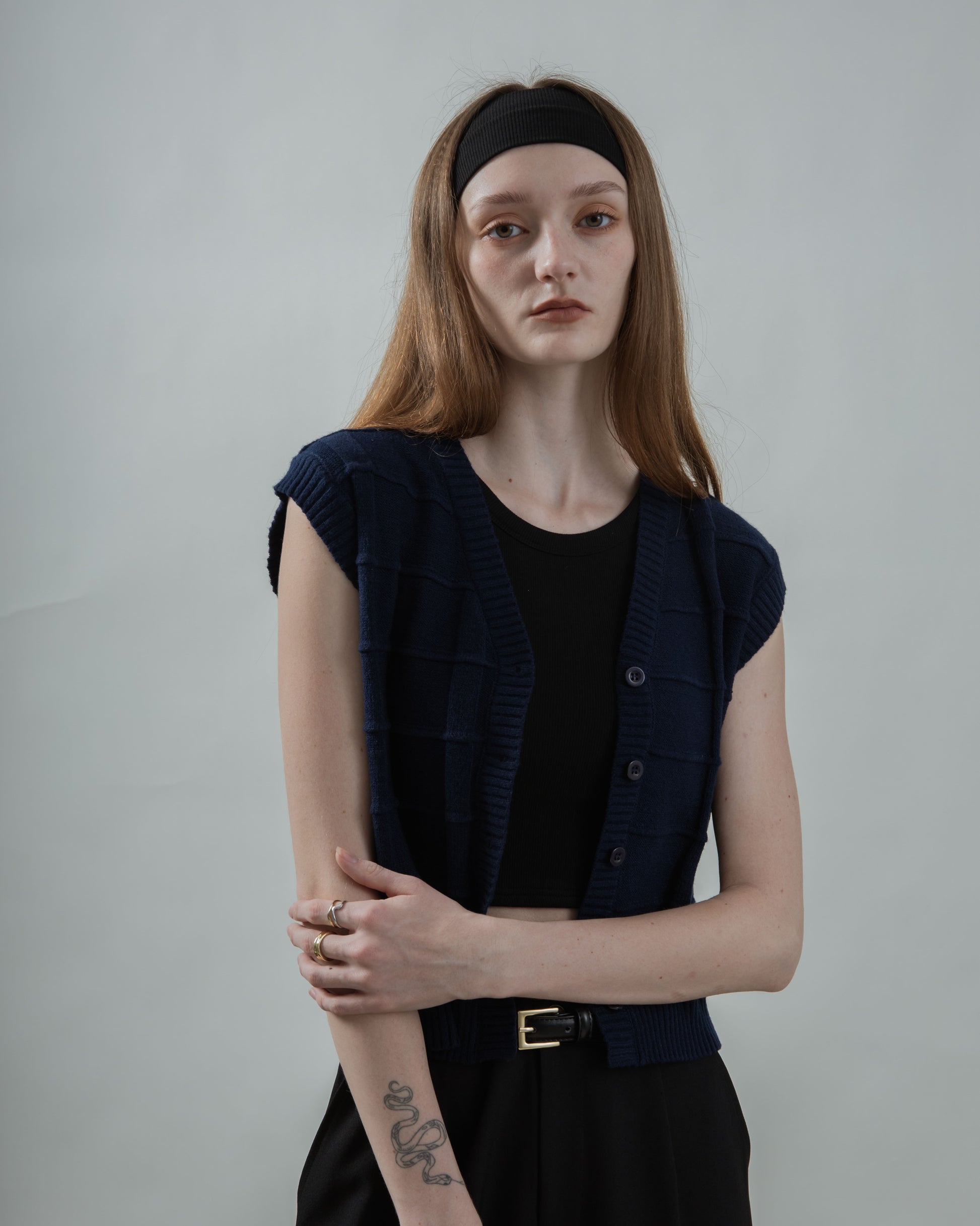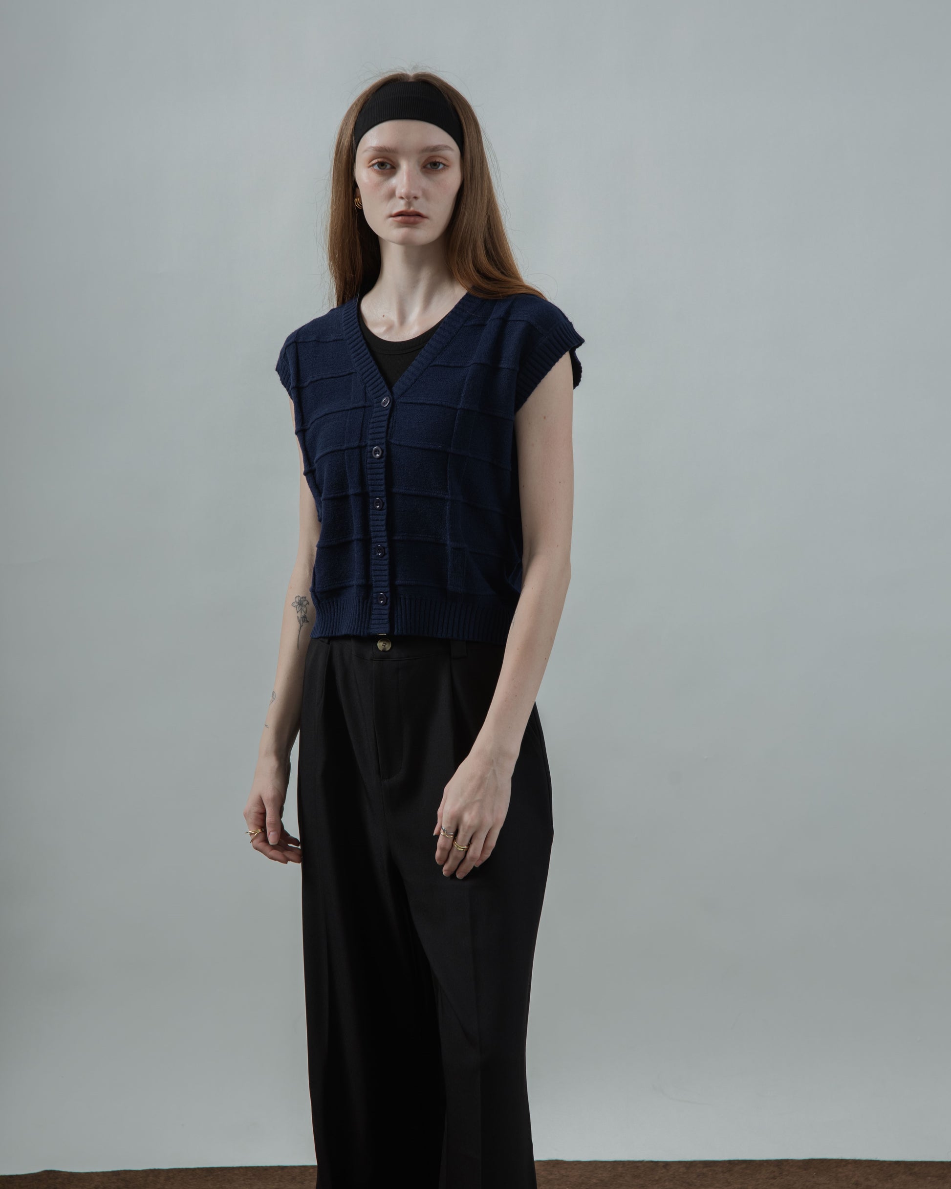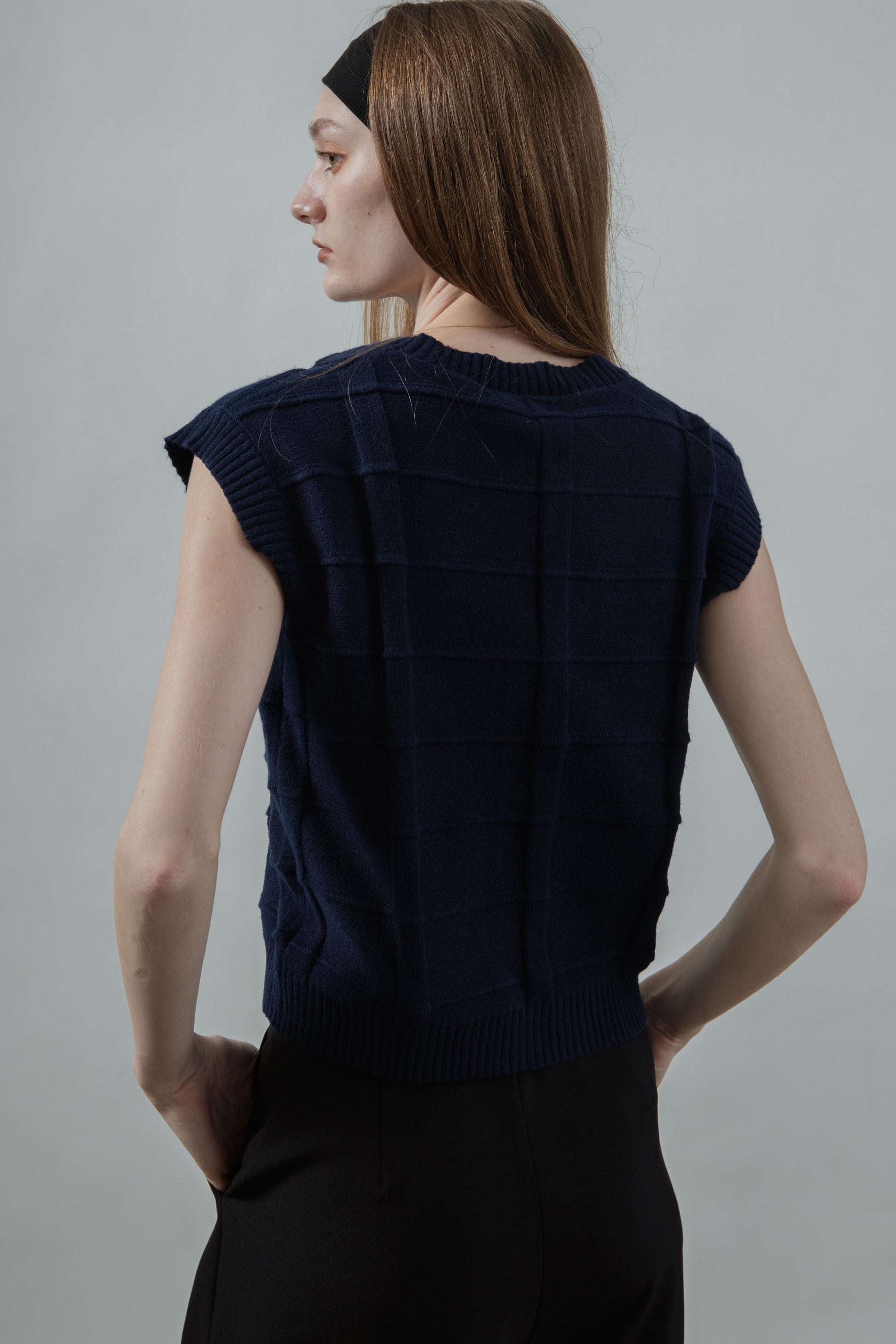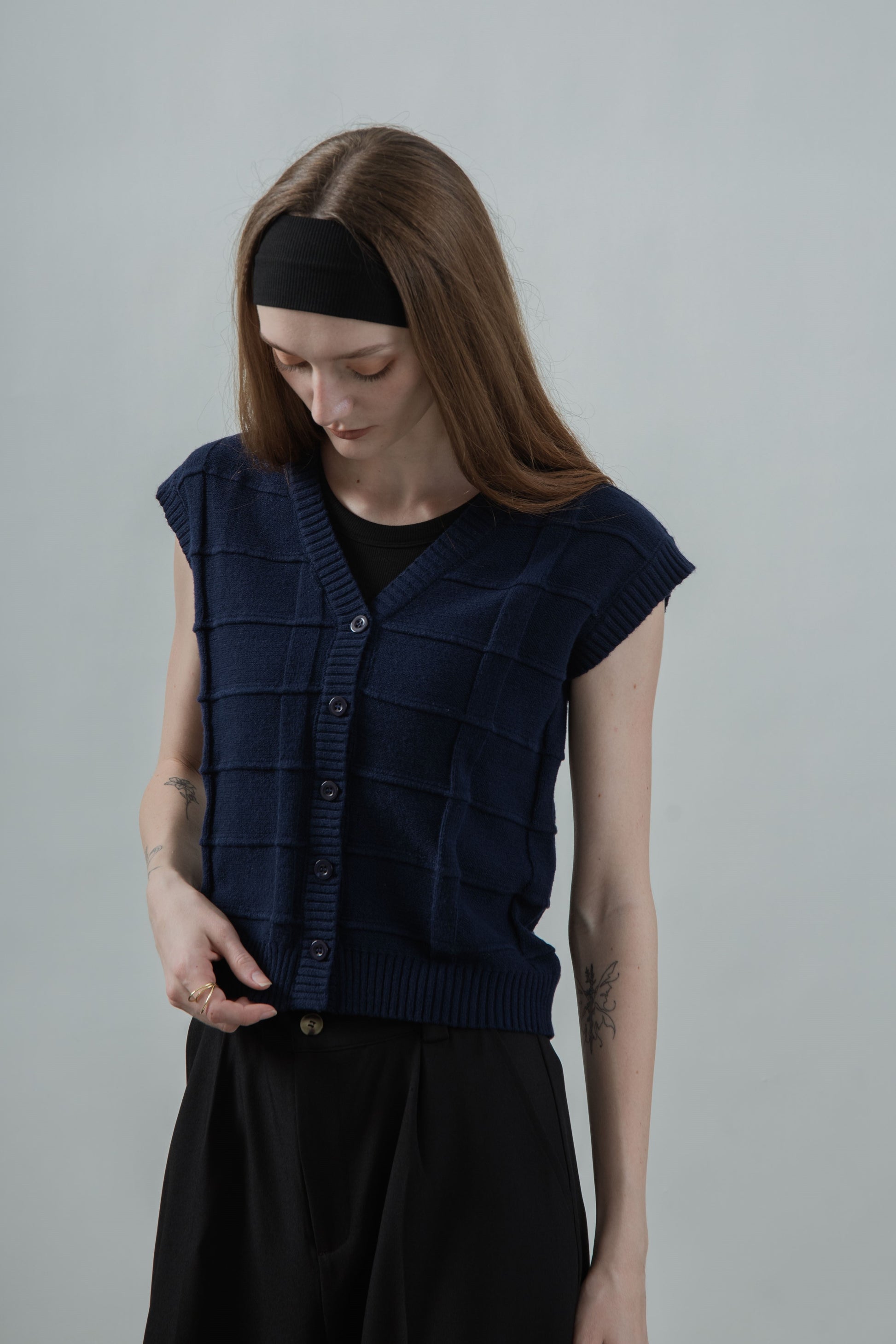 Crafted from eco-friendly materials, this Checkered Texture Knit Vest is made from 90% recycled polyester and 10% nylon. Its textured pattern adds subtle dimension, while the fabric offers a soft, plush feel for ultimate comfort. Versatile and stylish, this vest can be worn on its own or layered, making it a perfect sustainable addition to your wardrobe.
