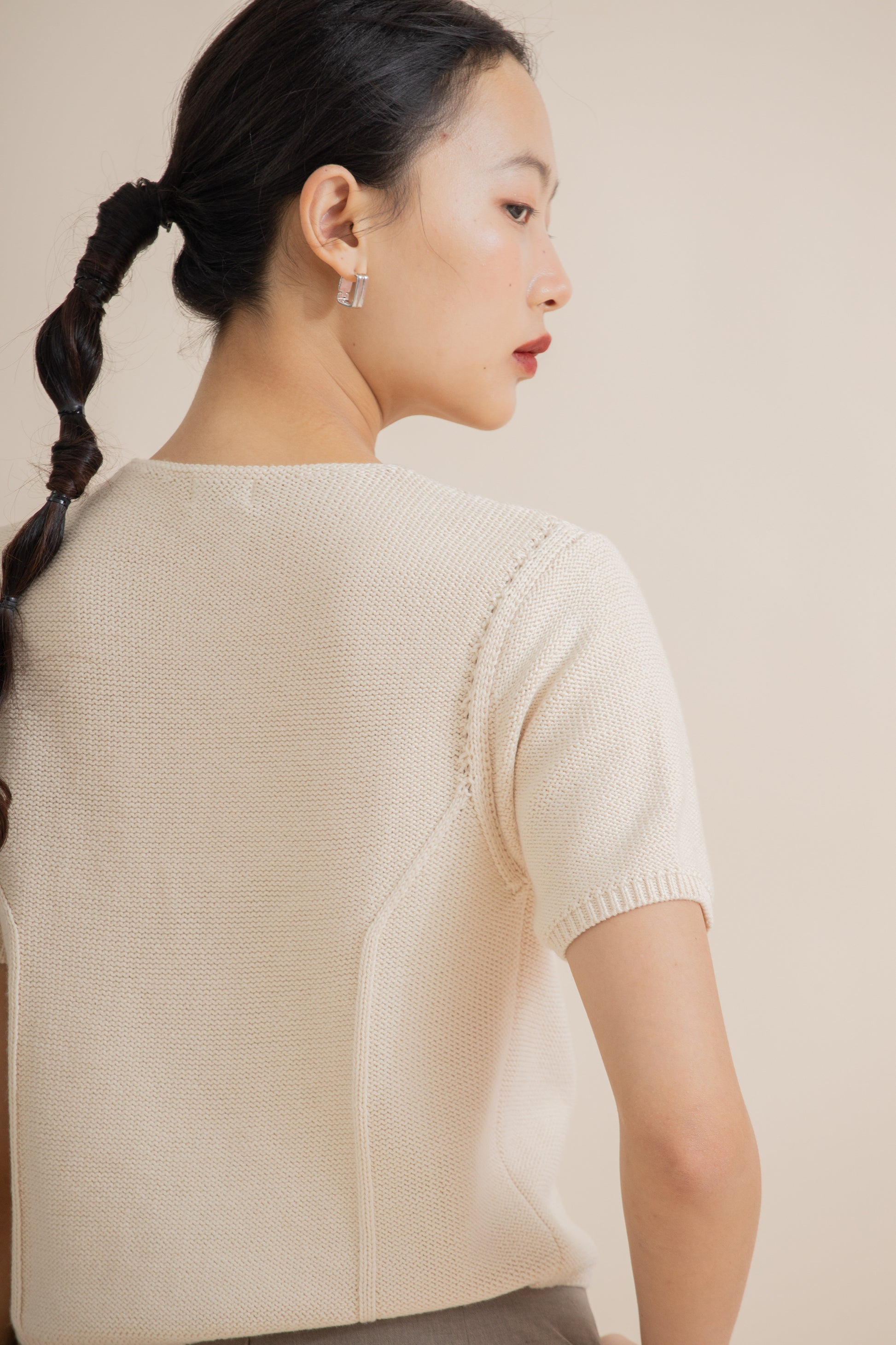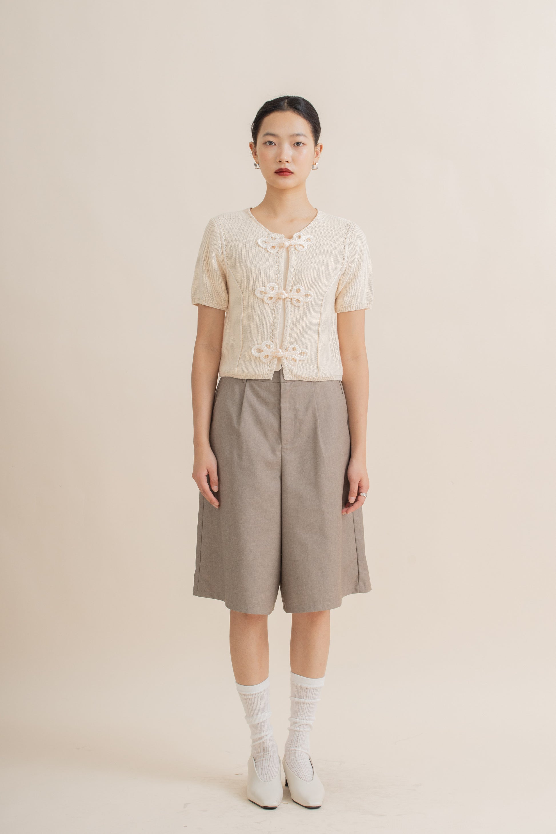 Chinese Knot Down Knit Top (Beige)