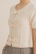 A charming knit top crafted from a soft 55% Acrylic, 45% Cotton blend, featuring traditional Chinese knot button details down the front for a subtle festive touch. Designed with short sleeves and a comfortable, breathable knit texture, it’s an easy piece to dress up or down. Perfect for adding a hint of culture and elegance to your everyday look.