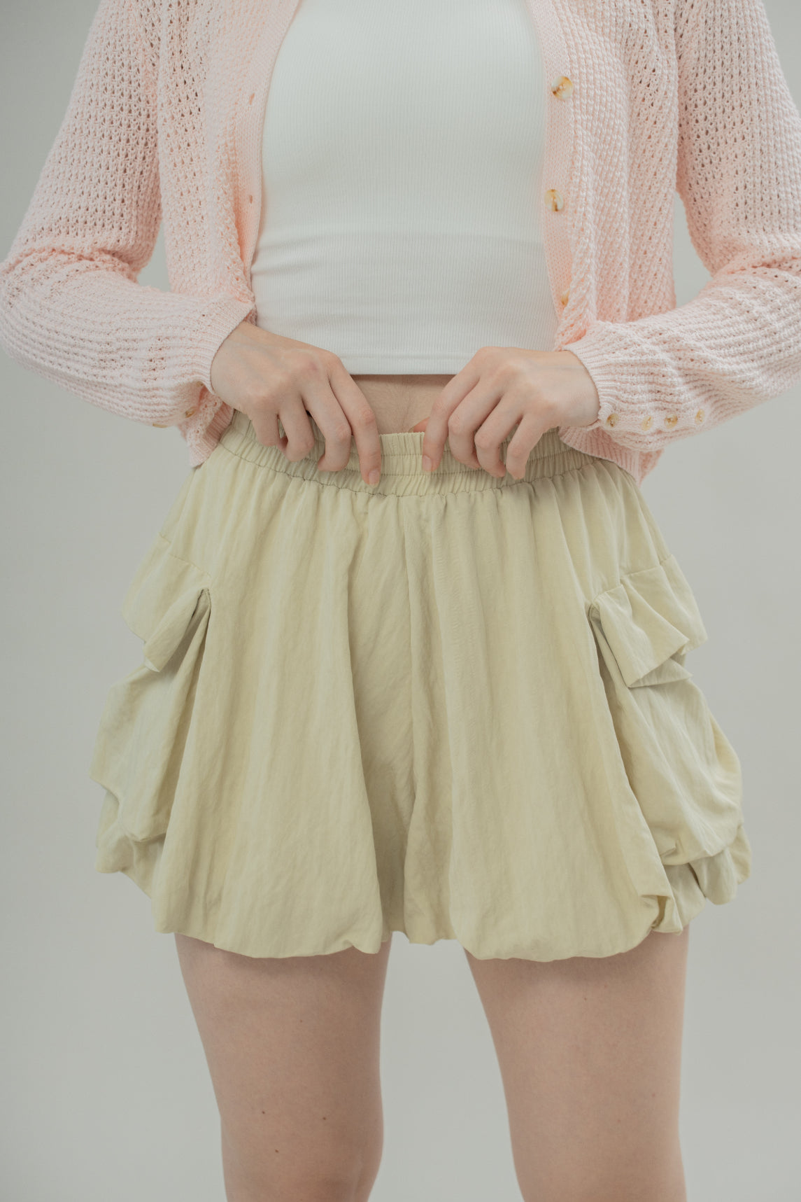 Chunky Pockets Puffy Shorts (Light Khaki)