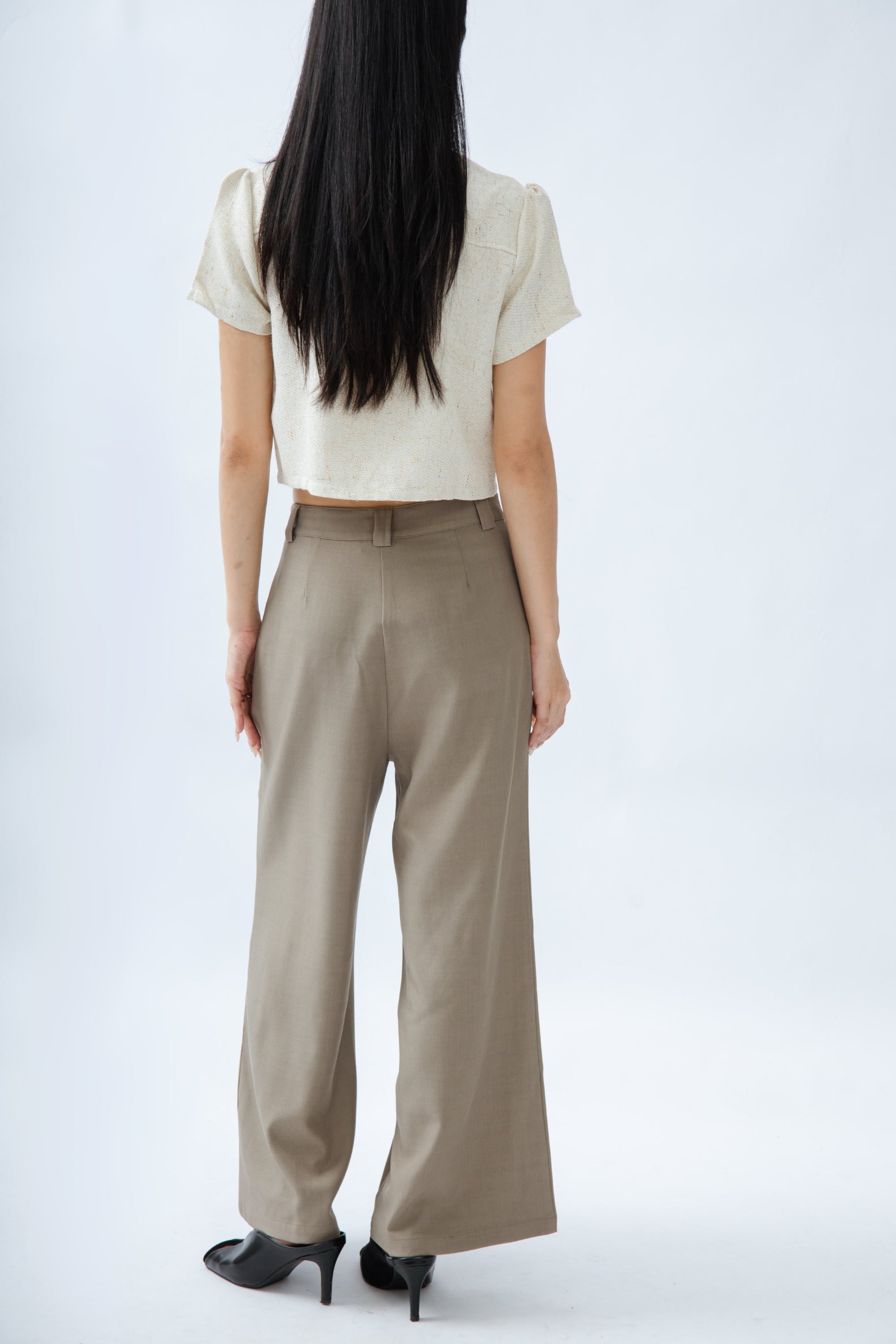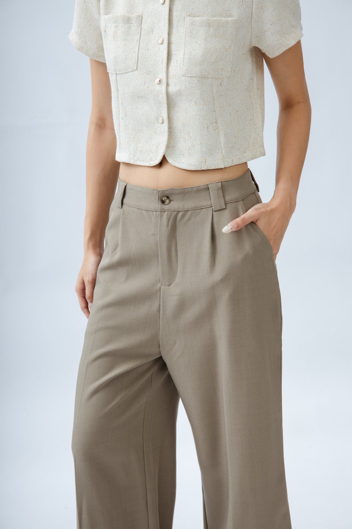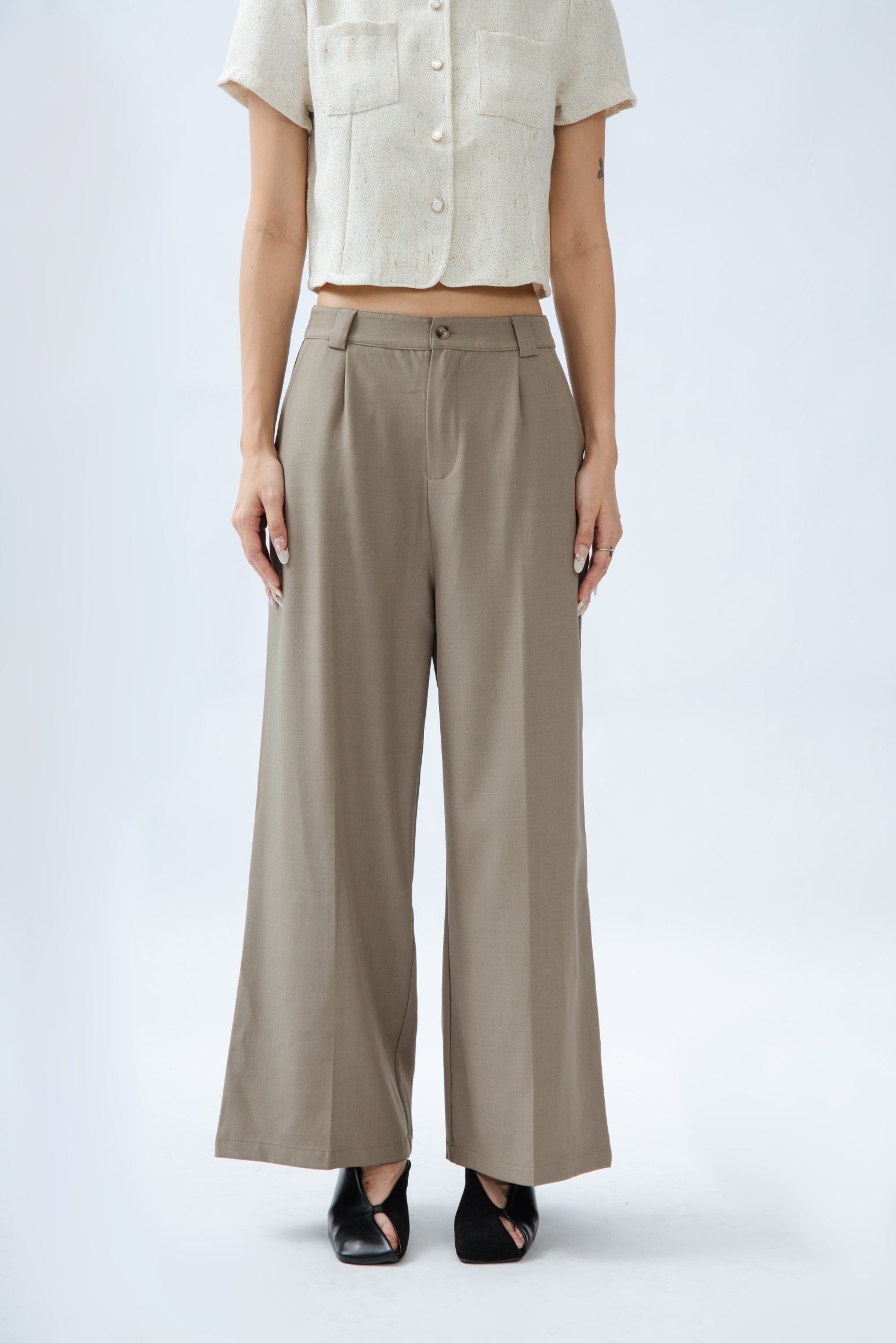Classic High Waist Straight Cut Trousers (Khaki Grey)