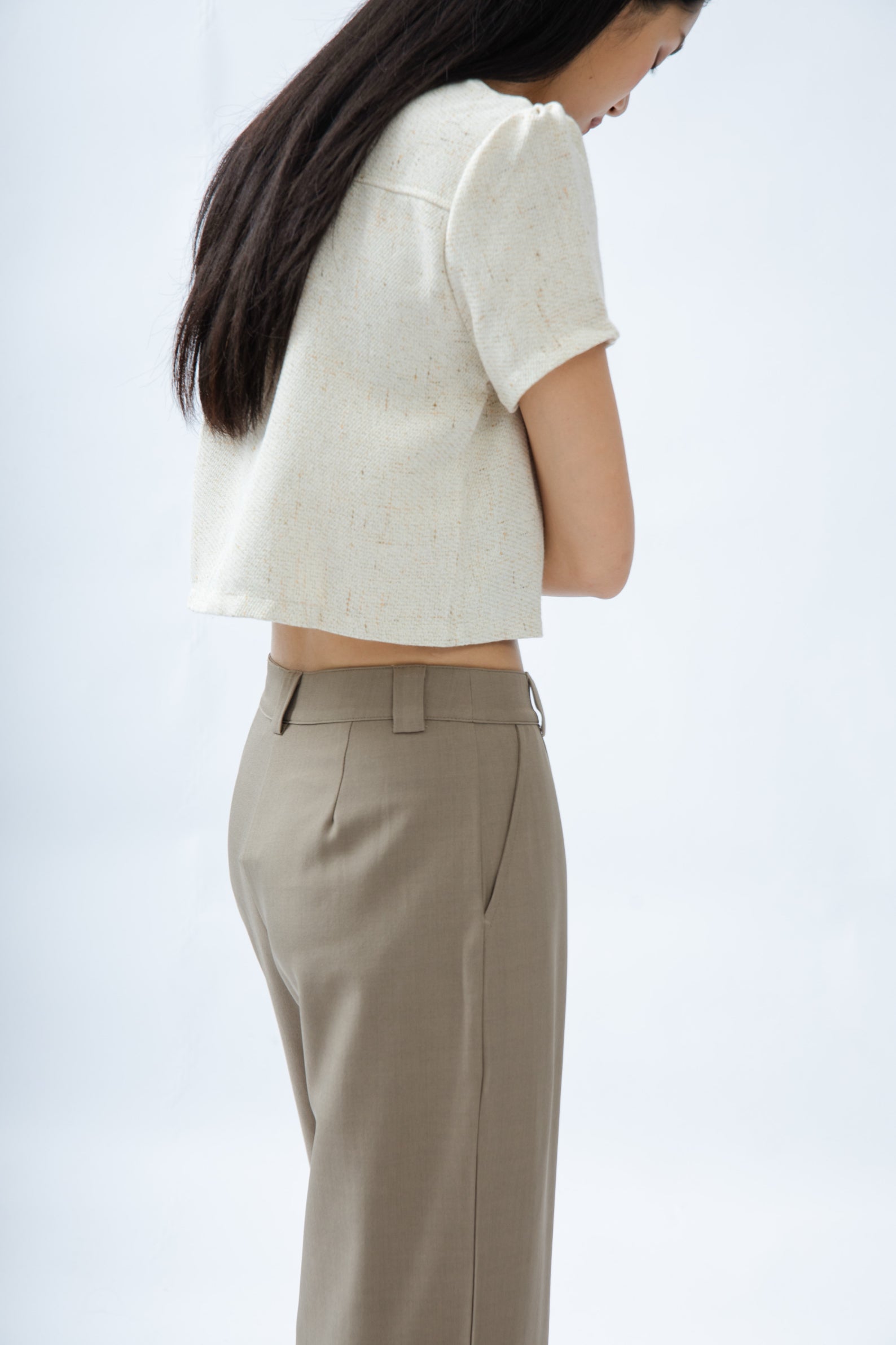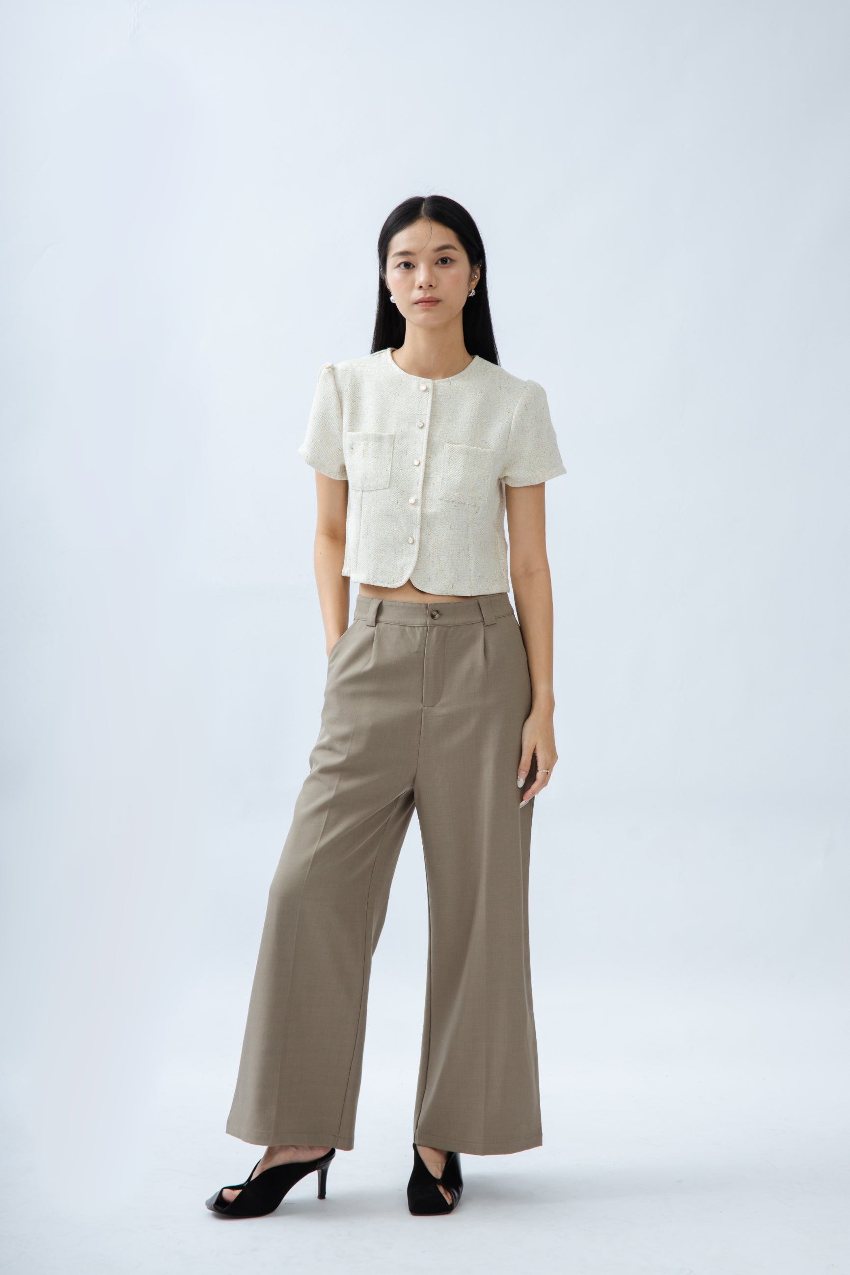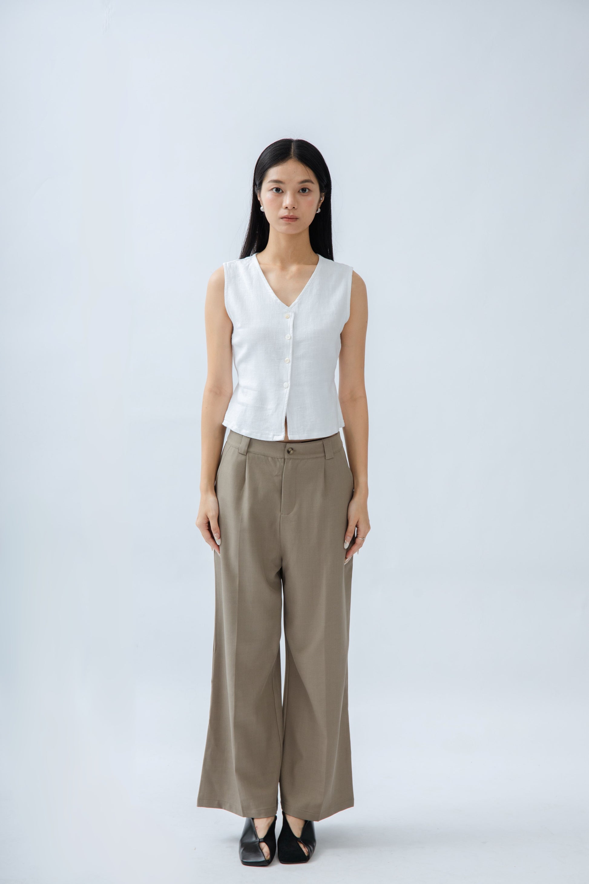 Classic High Waist Straight Cut Trousers (Khaki Grey)