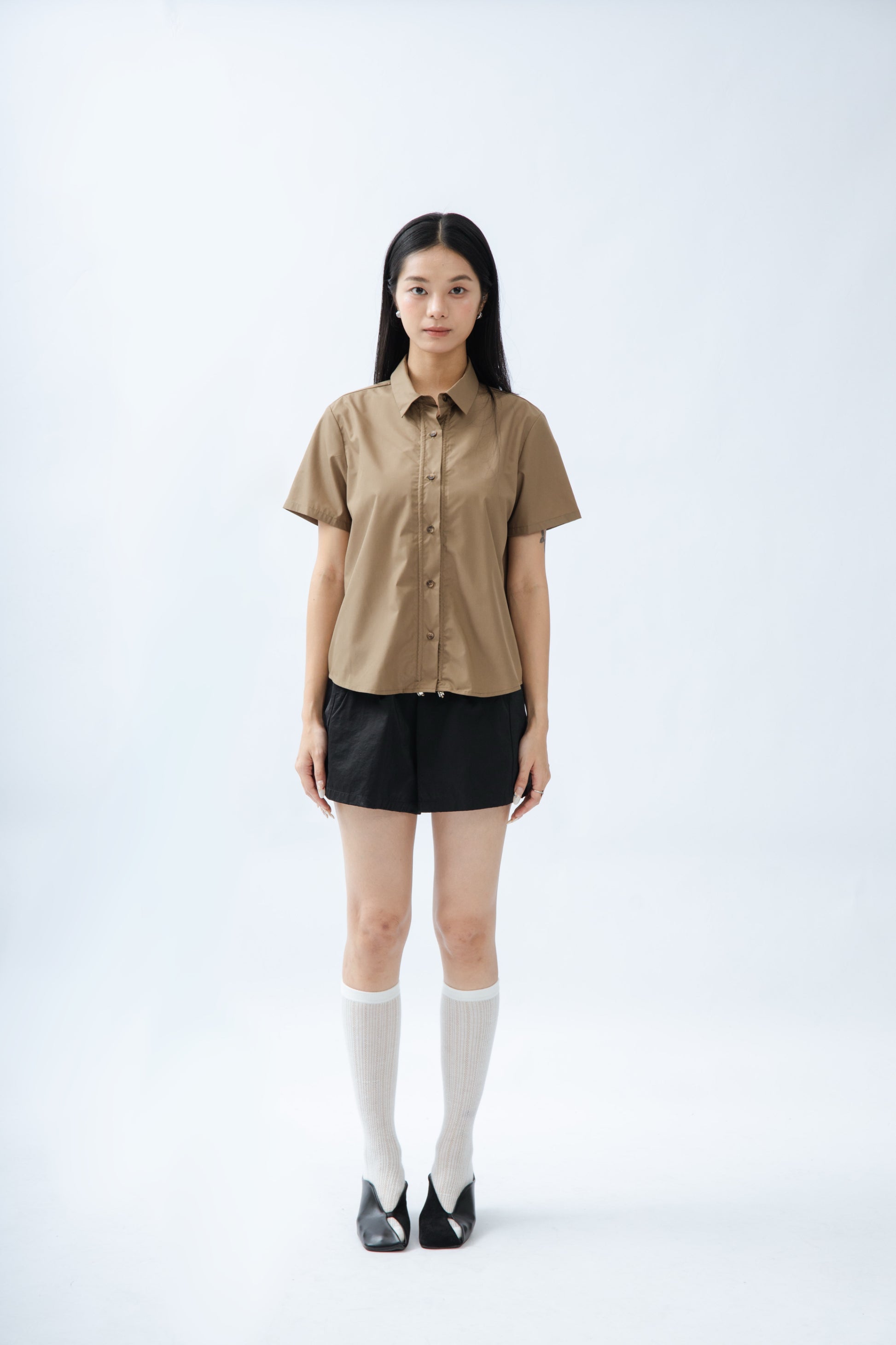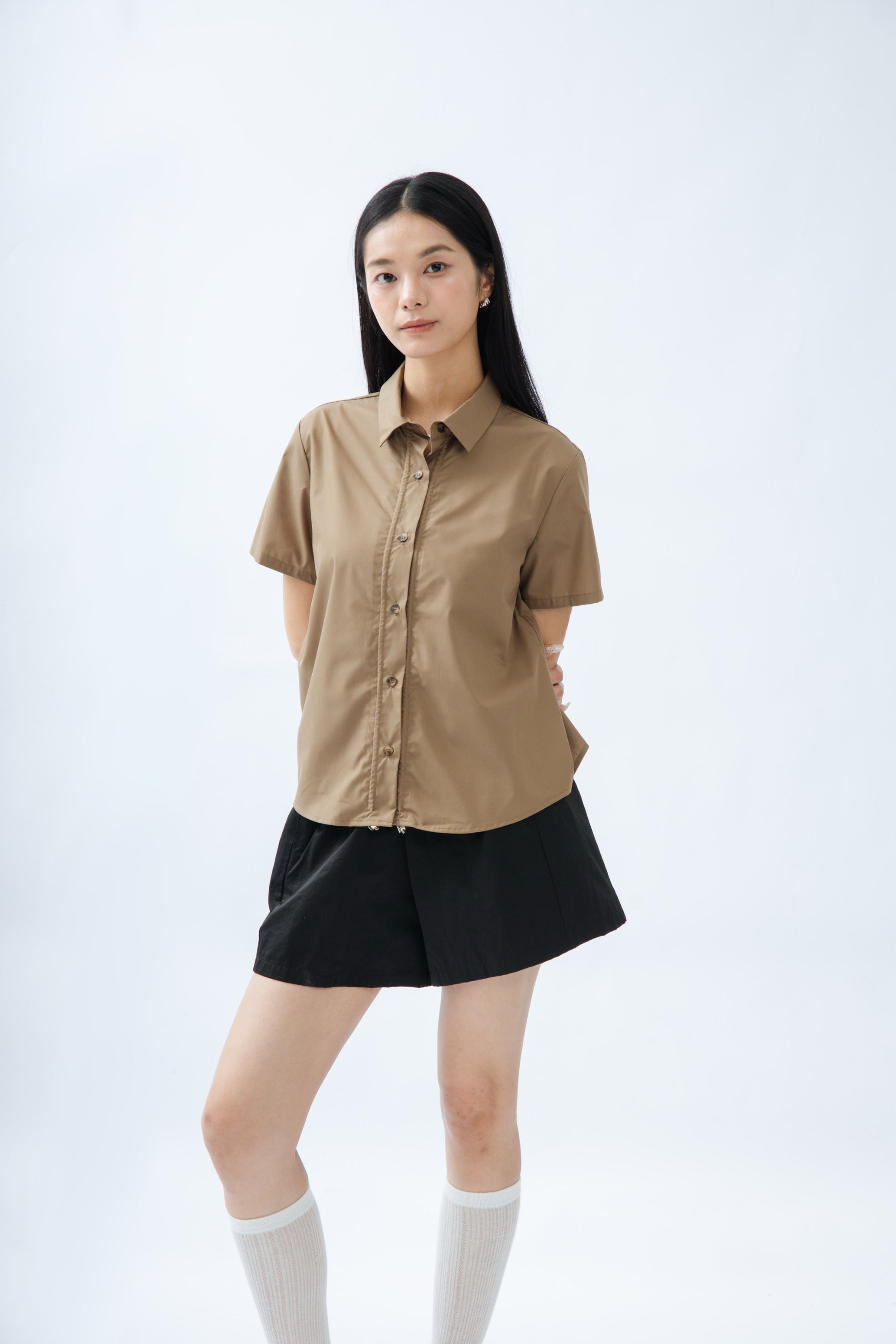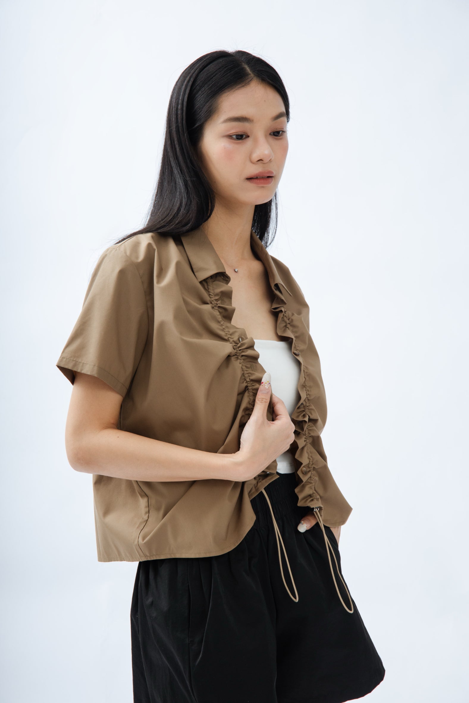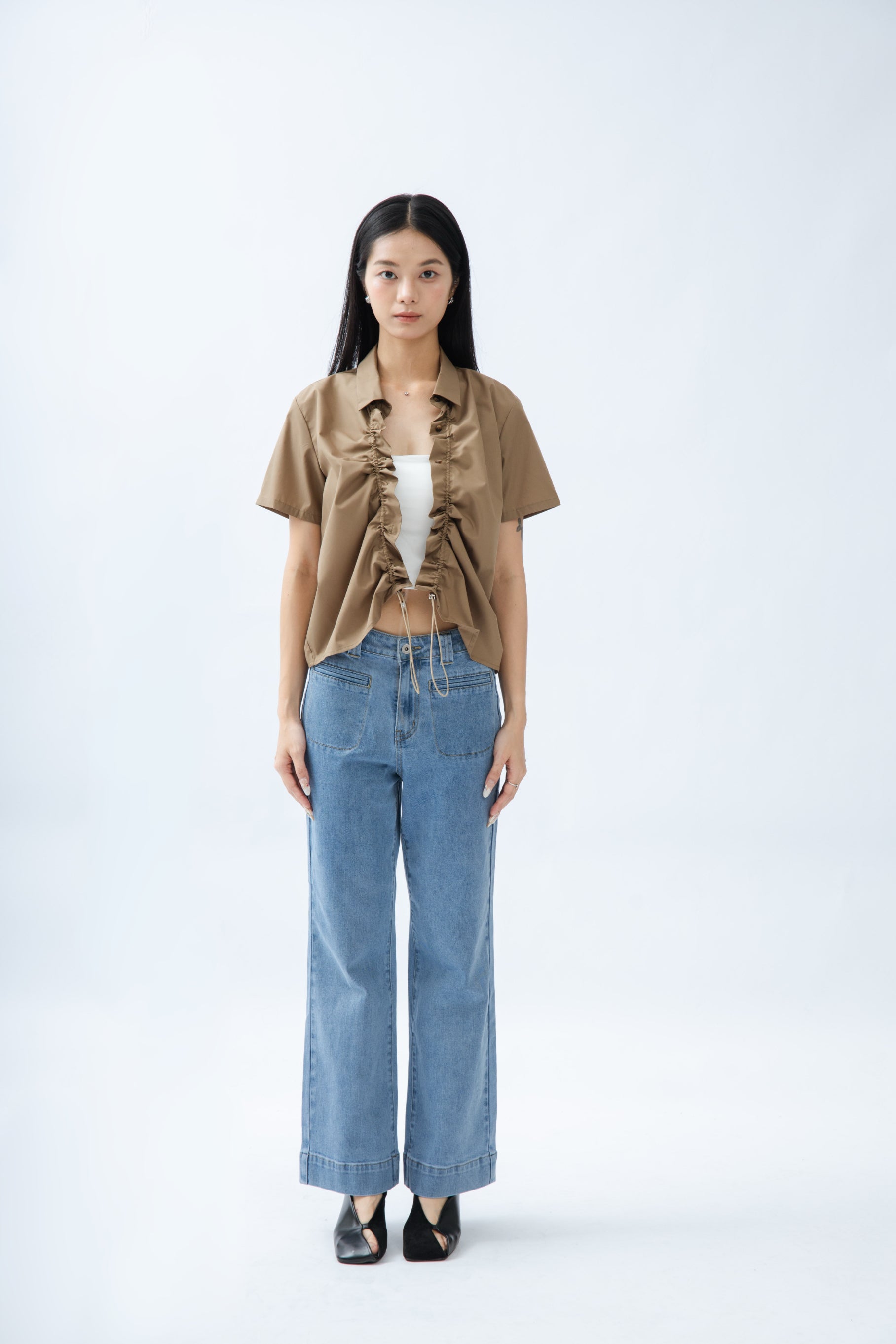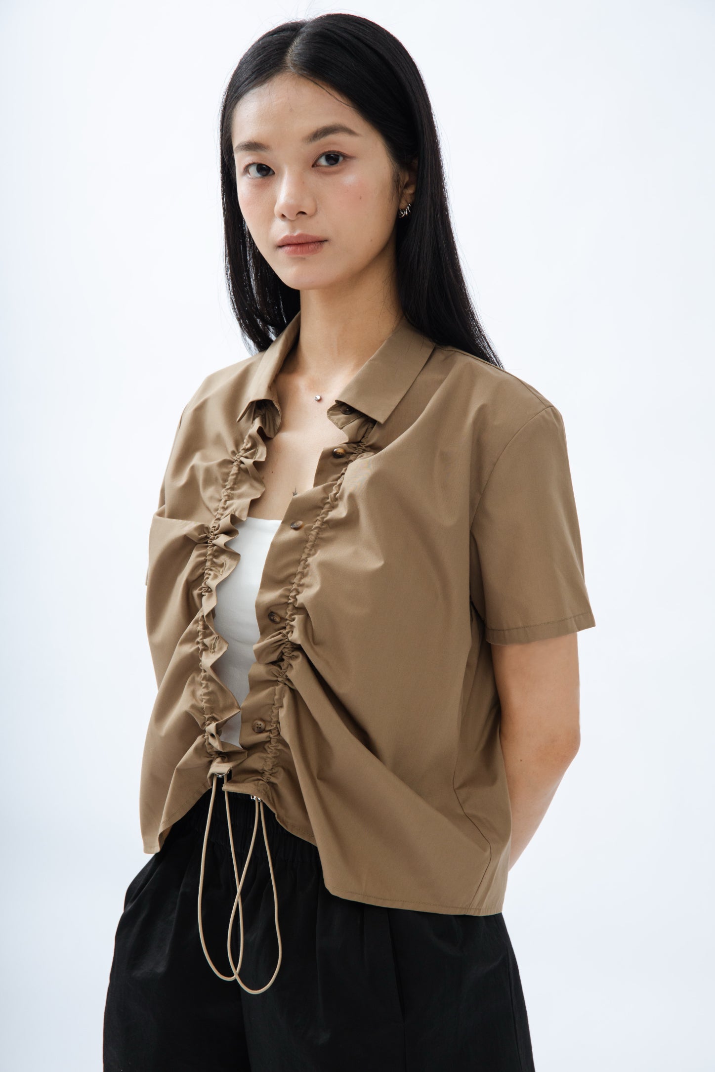 Effortless with a twist — this top features a statement drawstring down the front, allowing you to adjust the ruching for a personalized fit and shape. Made from a breathable blend of 65% Tencel and 35% Cotton, it feels soft on the skin with a smooth, drapey finish.