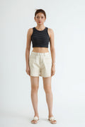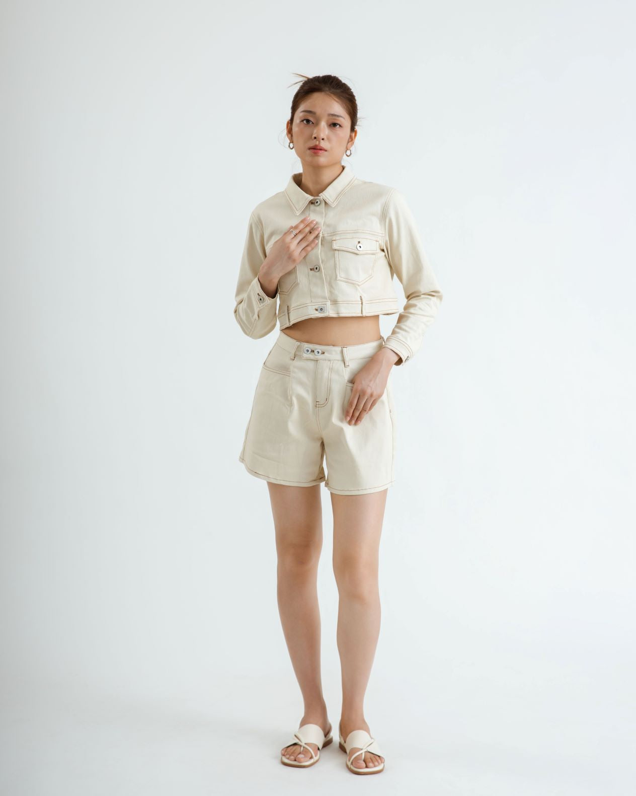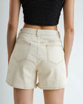 Denim shorts are a must-have in every girl's wardrobe. These shorts feature stylish details like a horizontal dual button and functional pockets. With a dual button and zipper  opening, front and back pockets, and belt loops, they’re designed to be worn high on the waist. Made from 98% cotton and 2% spandex, they offer a non-stretchable, classic fit.