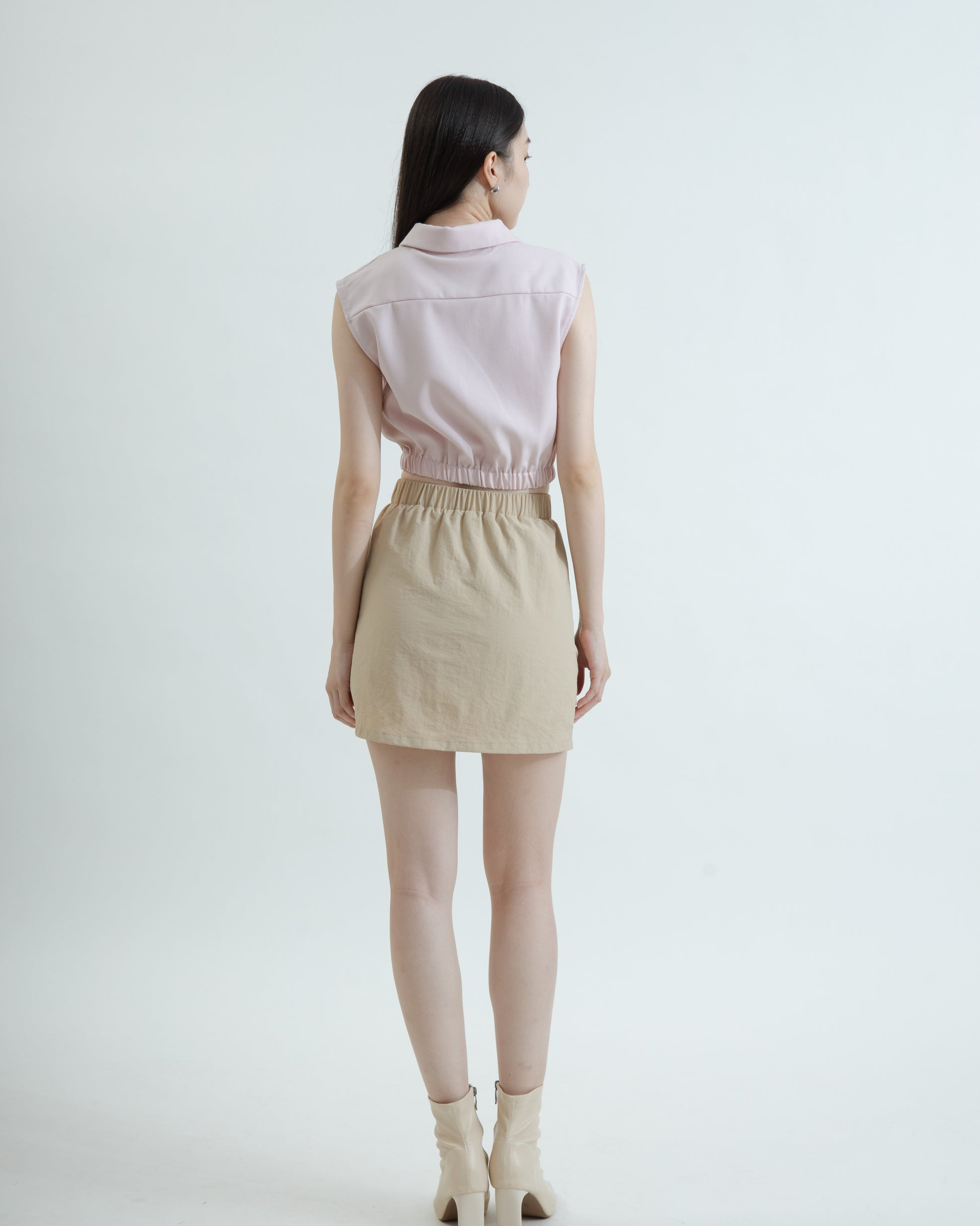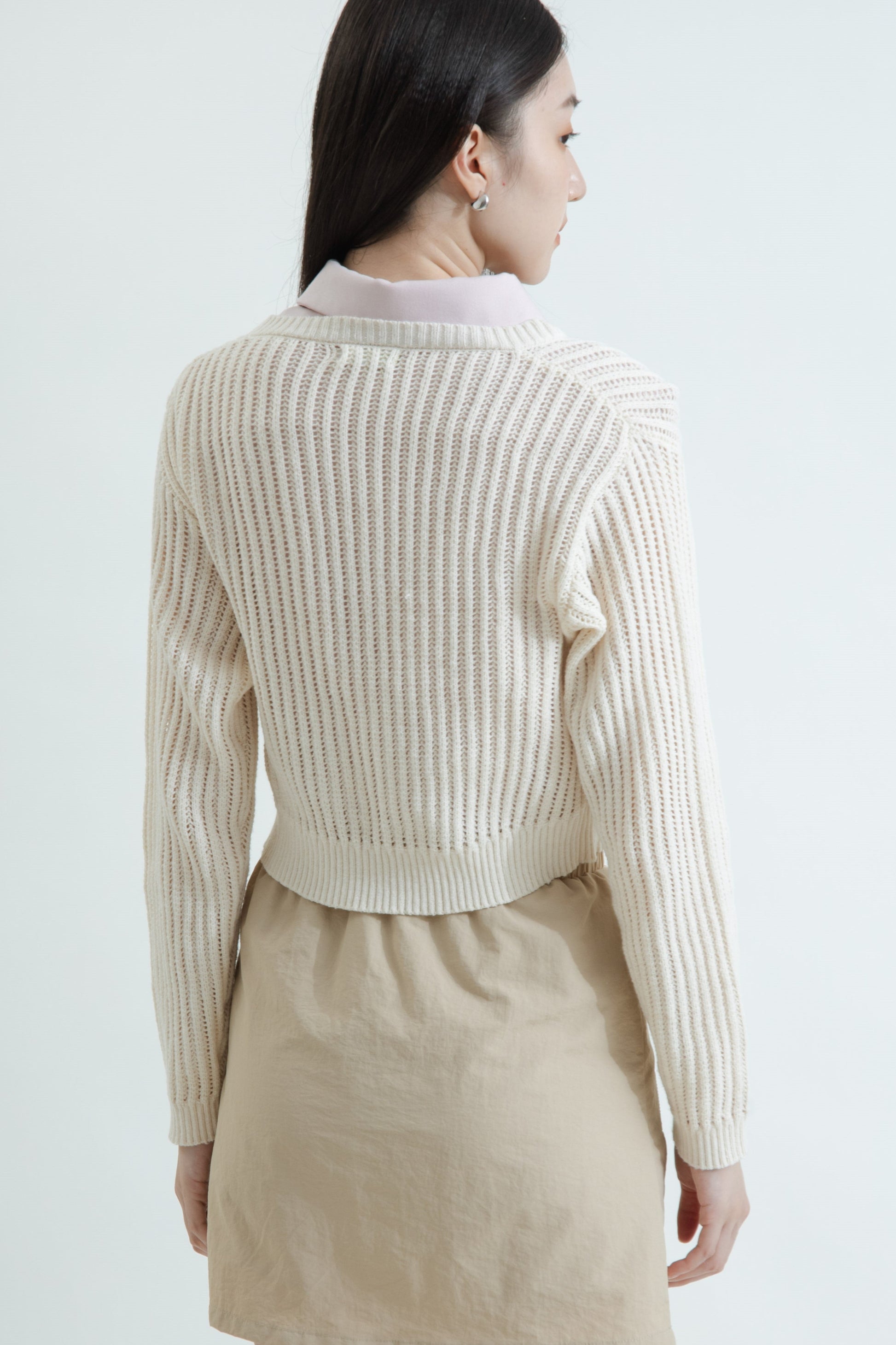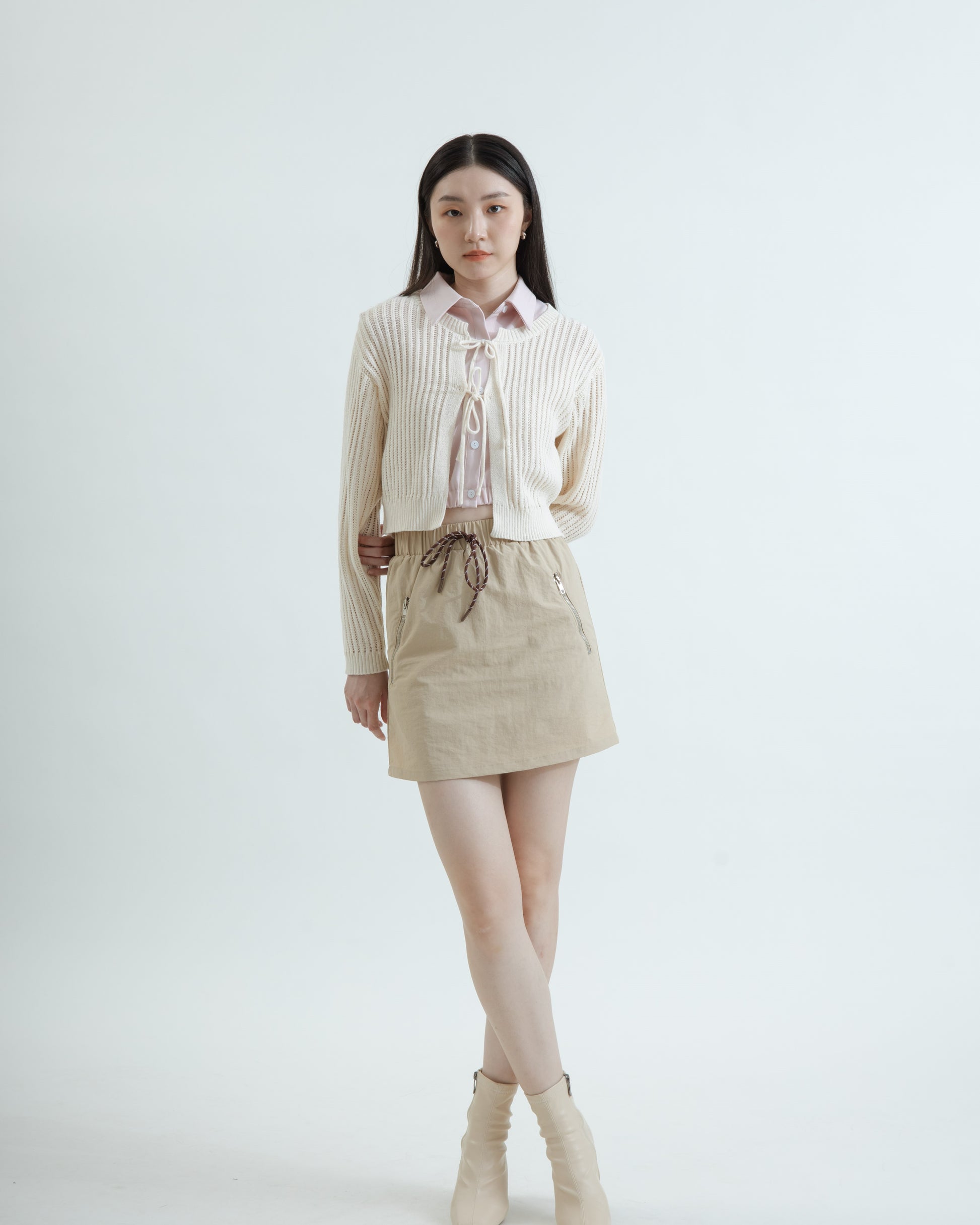 Eco Hollow Front-Tie Knit Cardigan (Beige)