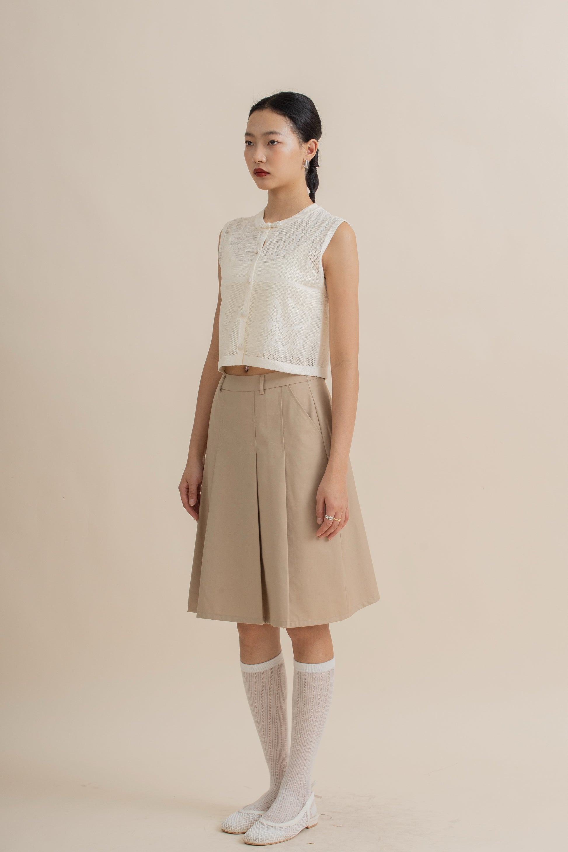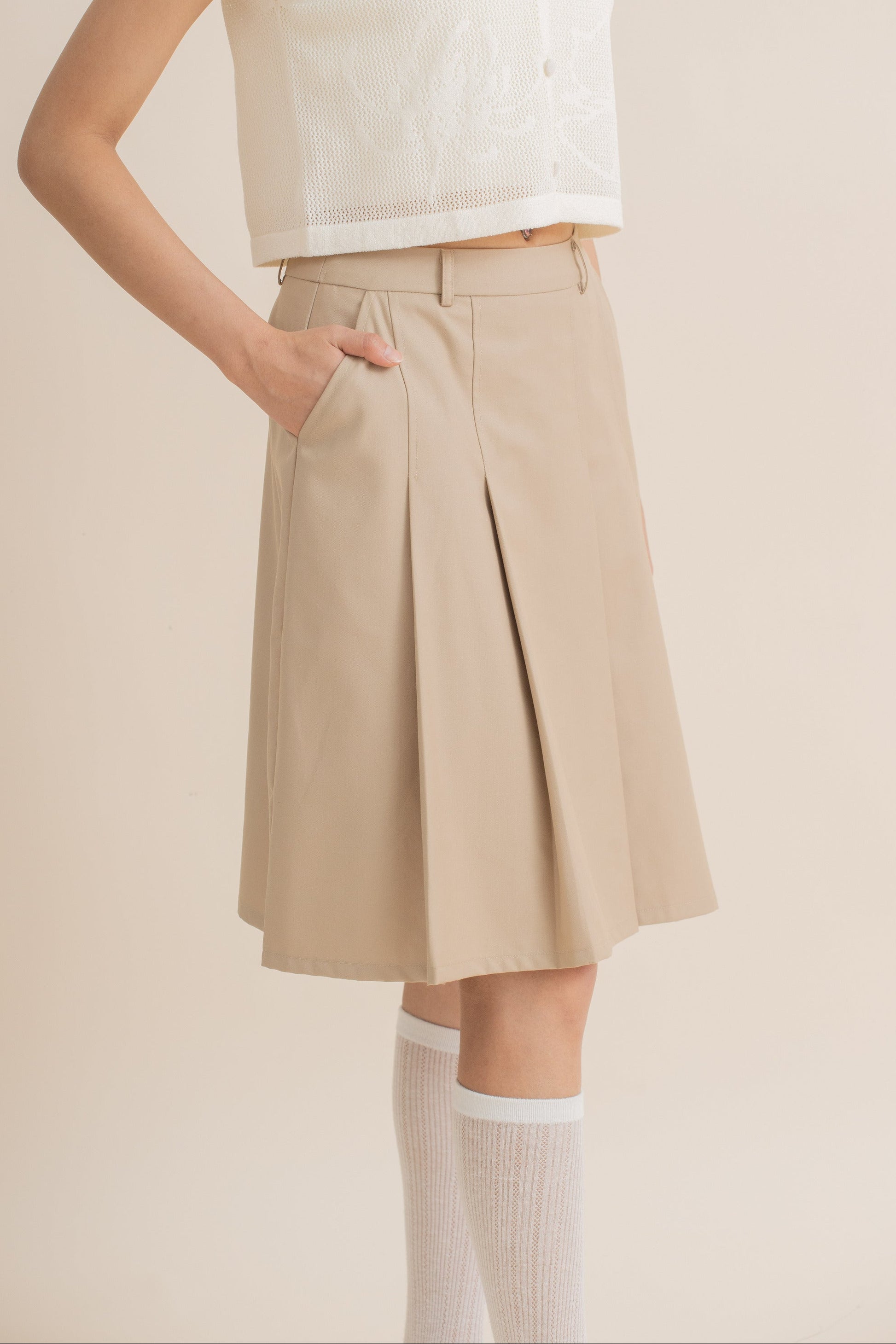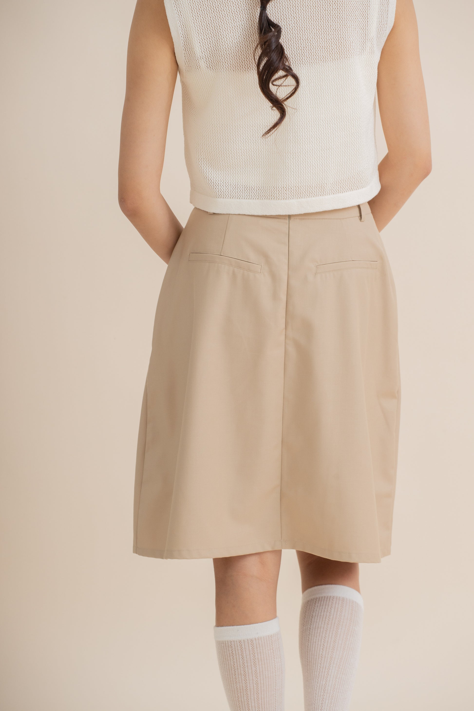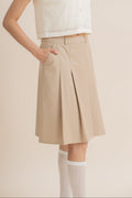 Elevate your everyday style with our Pleated Knee-Length Skirt in versatile Khaki. Made from a soft blend of 80% Polyester and 20% Viscose, it offers lightweight comfort and a graceful drape. Featuring classic pleats for movement and sophistication, along with functional side pockets for practicality, this skirt is perfect for pairing with tees, blouses, or knitwear for a polished, effortless look.