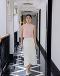 Elysse Mandarin Collar Side Buttons Cheongsam Top, made from 100% polyester, features a textured plaid fabric that adds depth and dimension to the design. With white jade buttons and a mandarin collar, this sleeveless top exudes a minimalist and versatile charm, perfect for creating elegant yet casual looks.