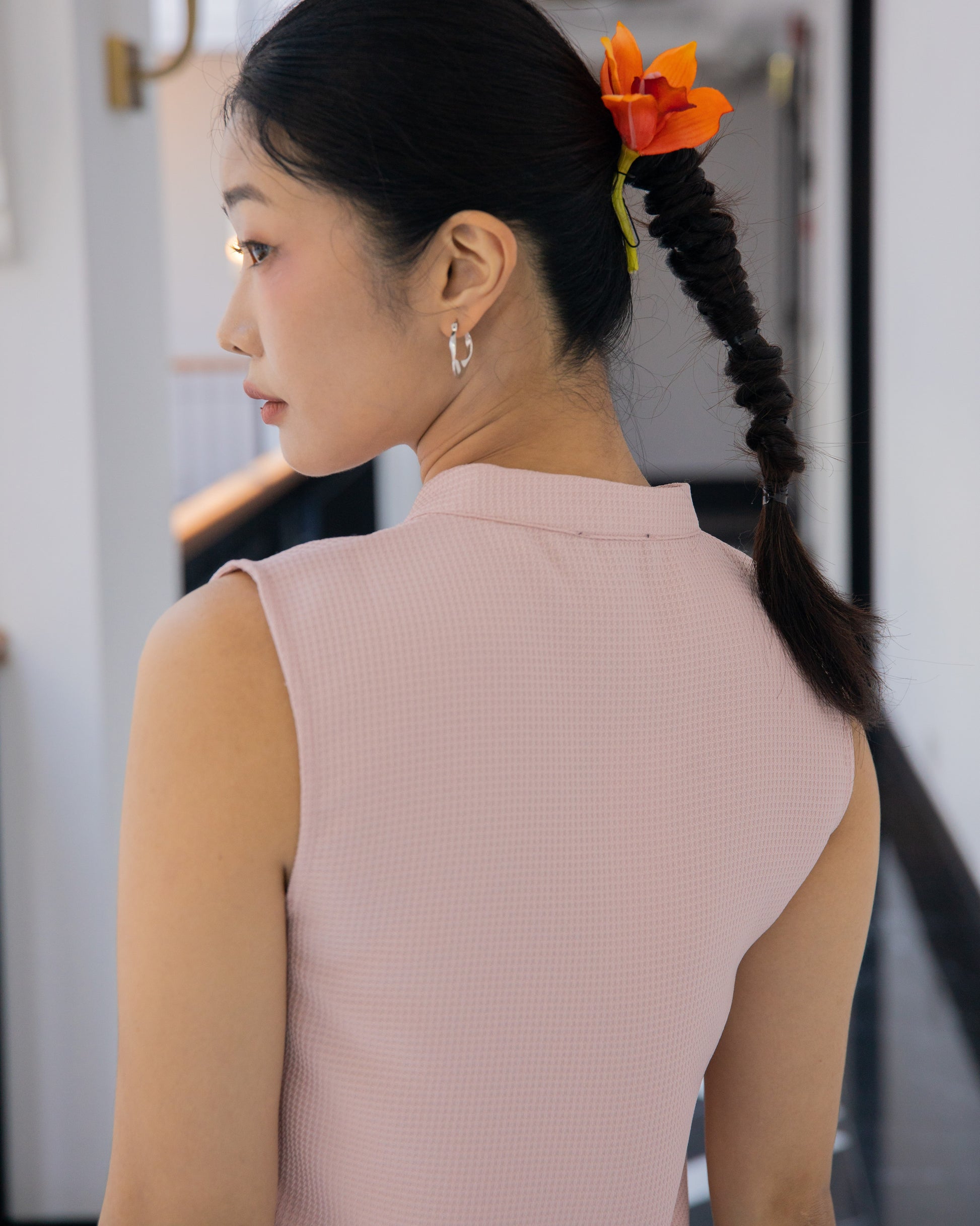 Elysse Mandarin Collar Side Buttons Cheongsam Top (Pink)