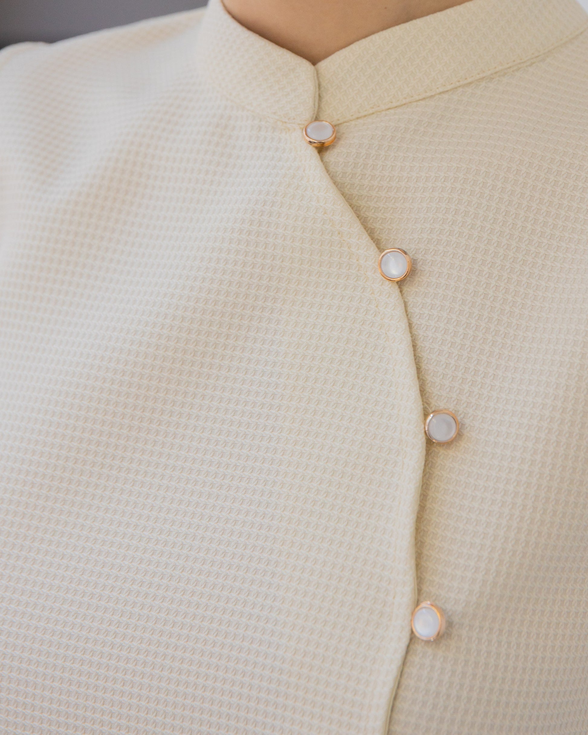 Elysse Mandarin Collar Side Buttons Cheongsam Top (White)