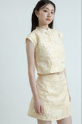 Made from 100% polyester, the Spring Aura Embroidery A-Line Mini Skirt features intricate embroidery that brings a touch of elegance. Designed with a comfortable inner lining, it includes practical side pockets for added convenience. A delicate white jade stone accents the left hem, adding a refined detail. With an A-line silhouette and a hidden zipper at the back, this skirt flatters the figure while offering both style and comfort.