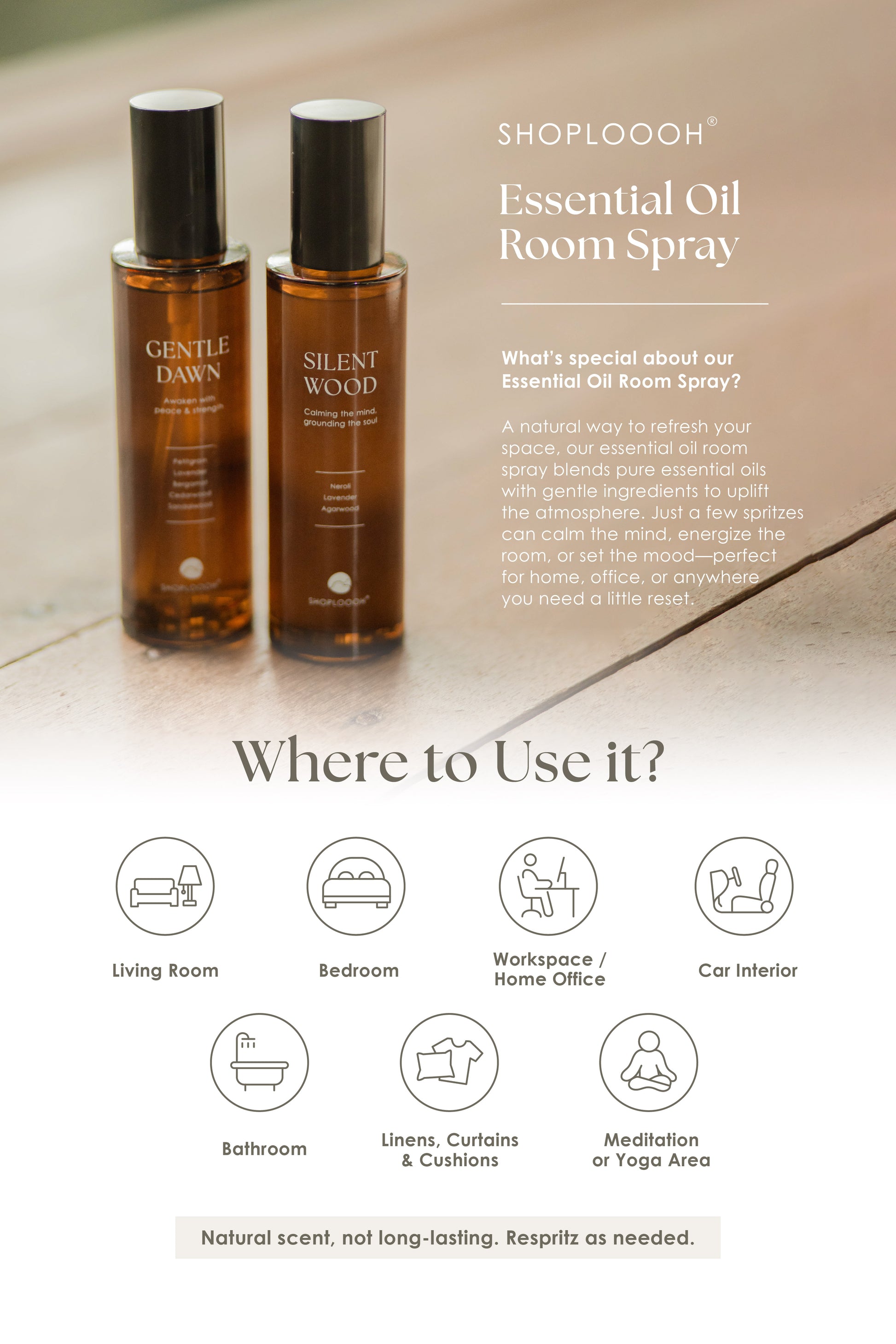 Shake well before use. Hold the bottle upright and spray 2–3 pumps into the air or directly onto fabrics like bedsheets, clothing, or personal items—depending on your preference.