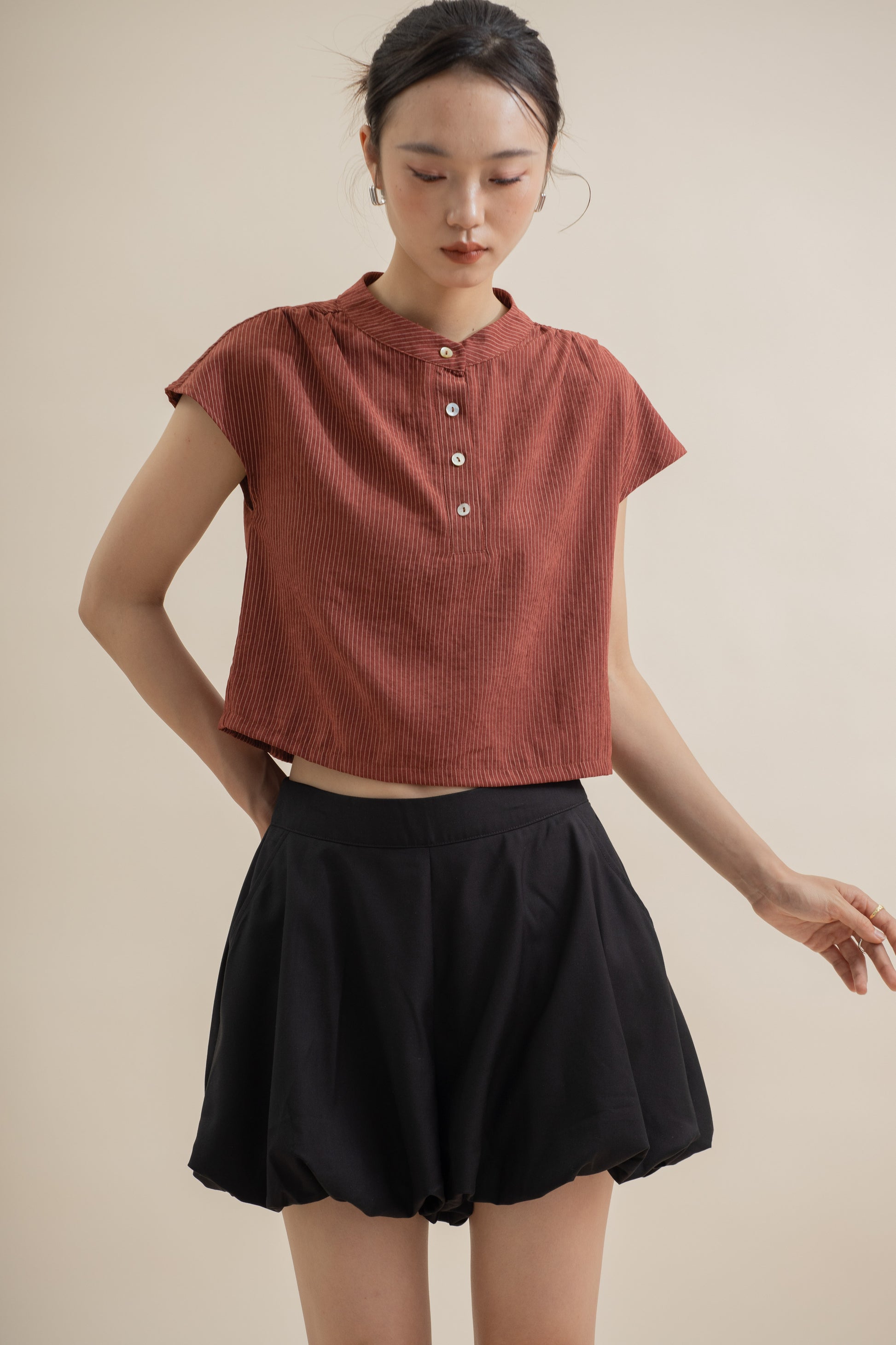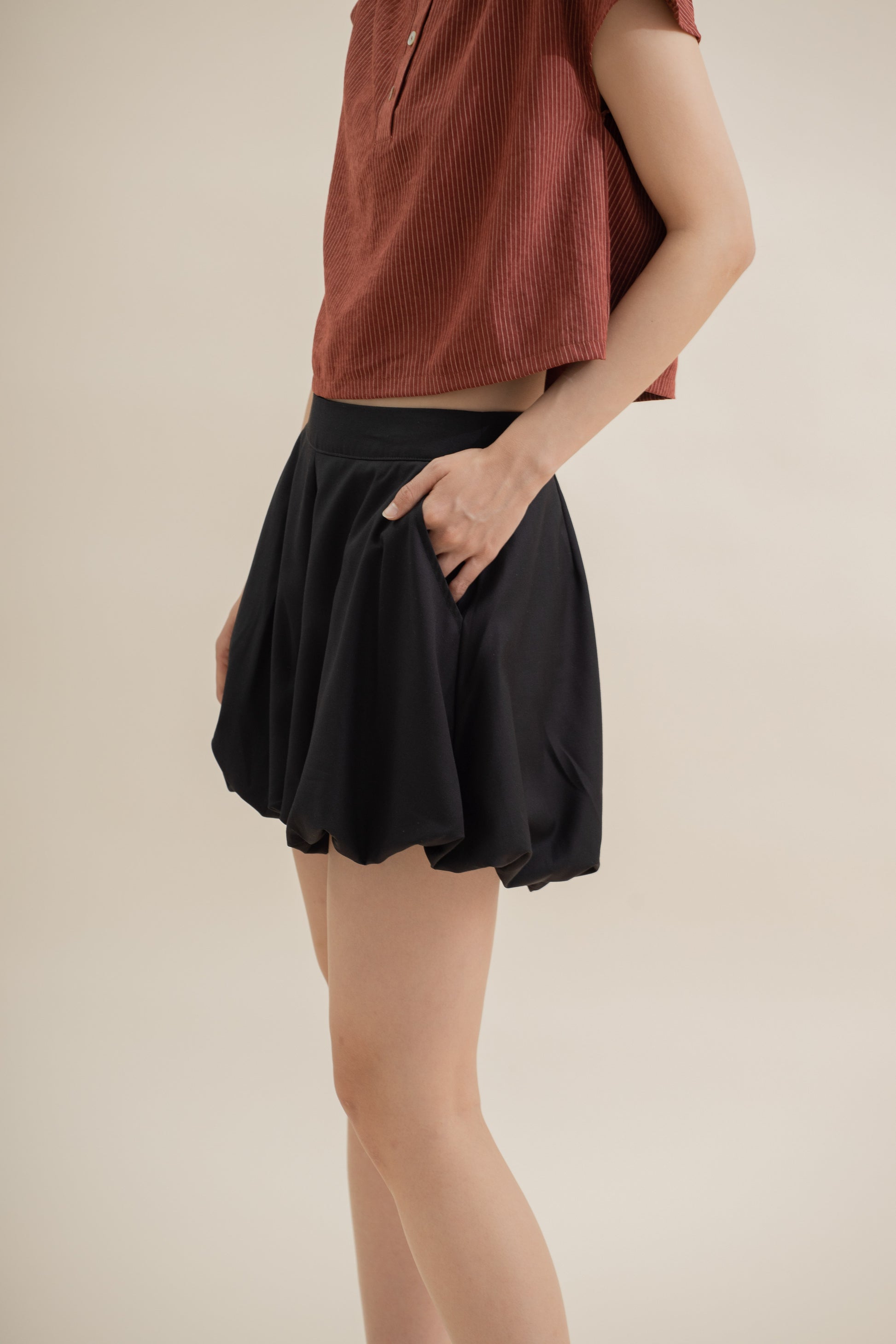 Chic and easy-going — these shorts feature a softly structured silhouette with puffy volume and practical side pockets. Made from a smooth 80% Polyester, 20% Viscose blend, they feel light, breathable, and hold their shape effortlessly.