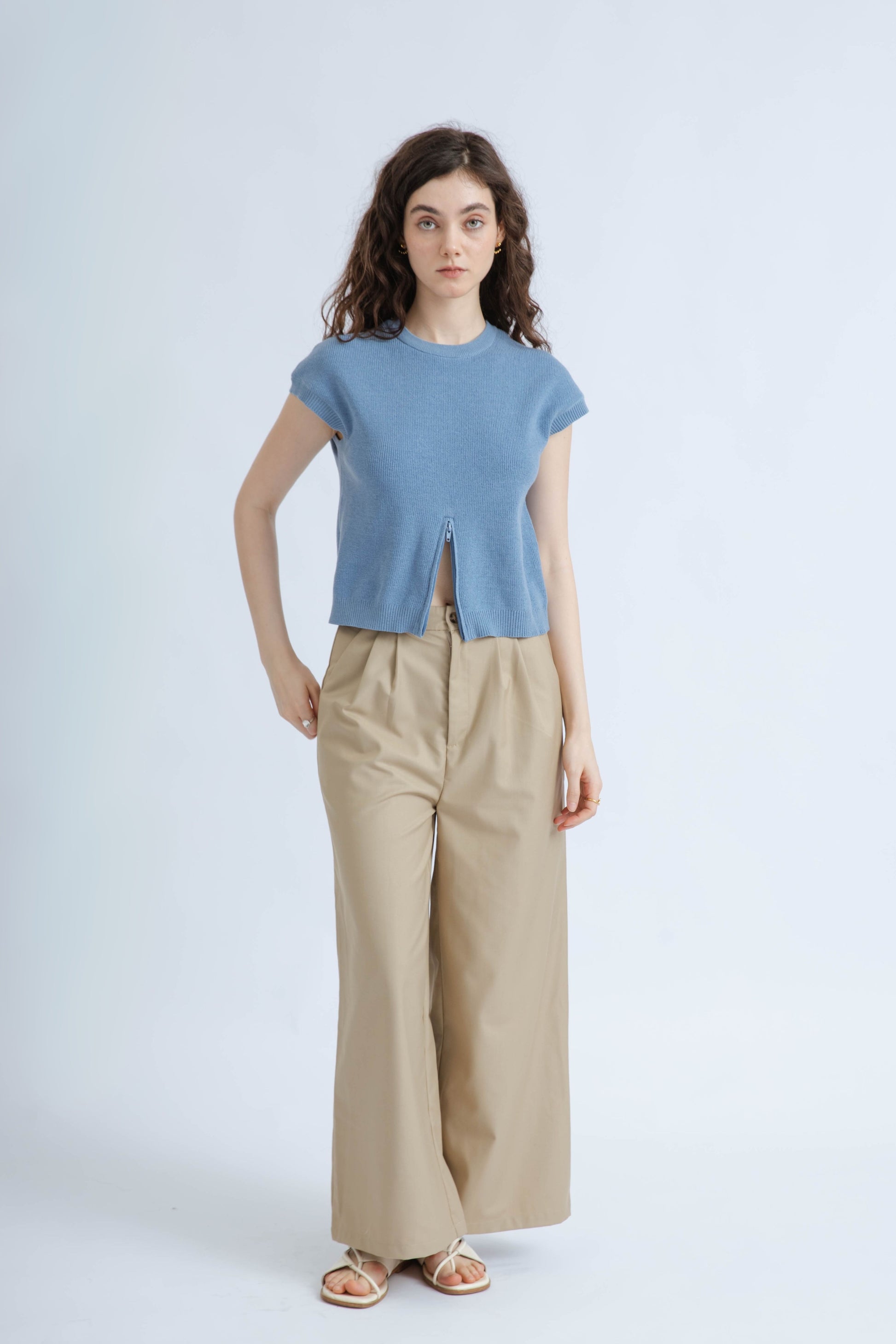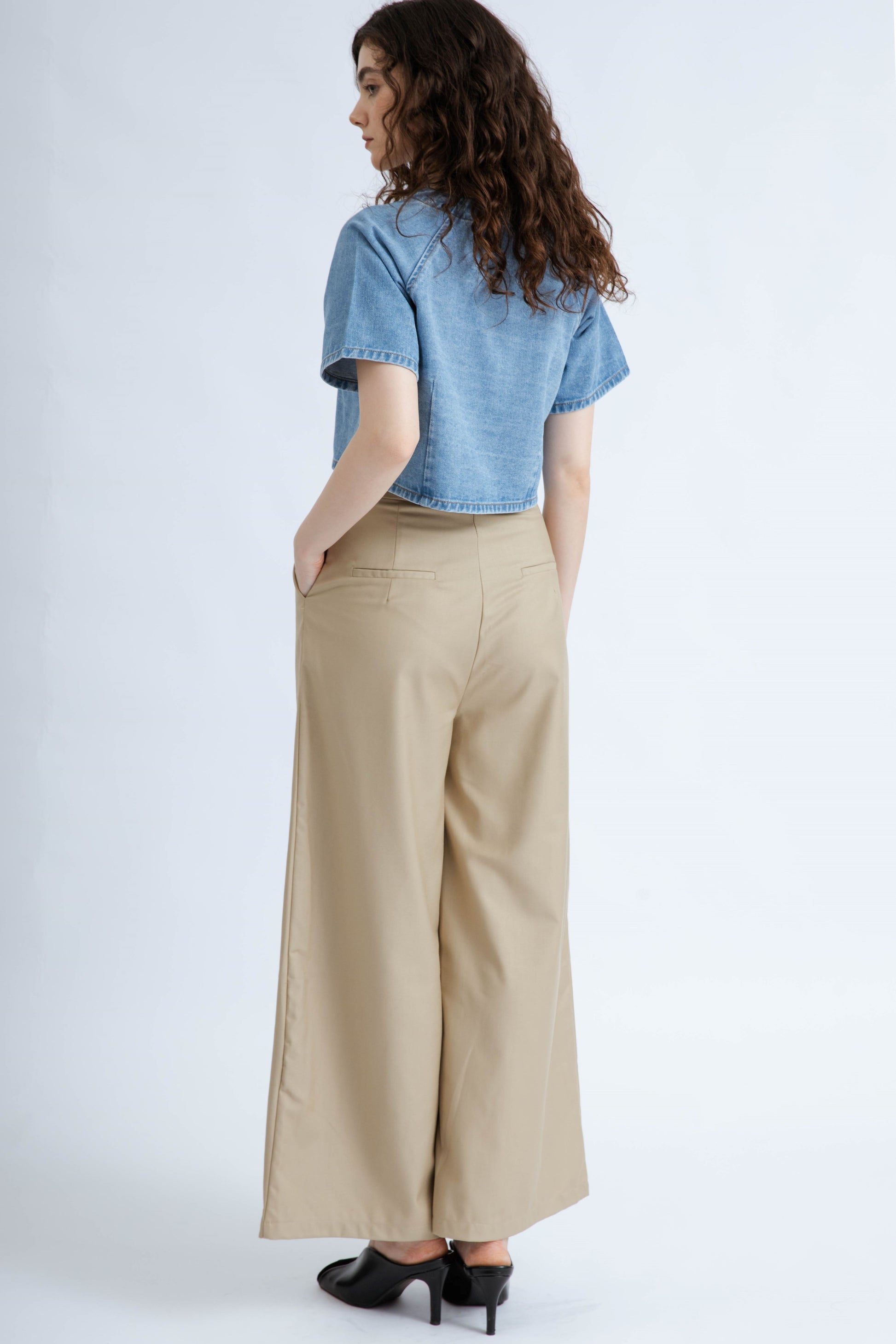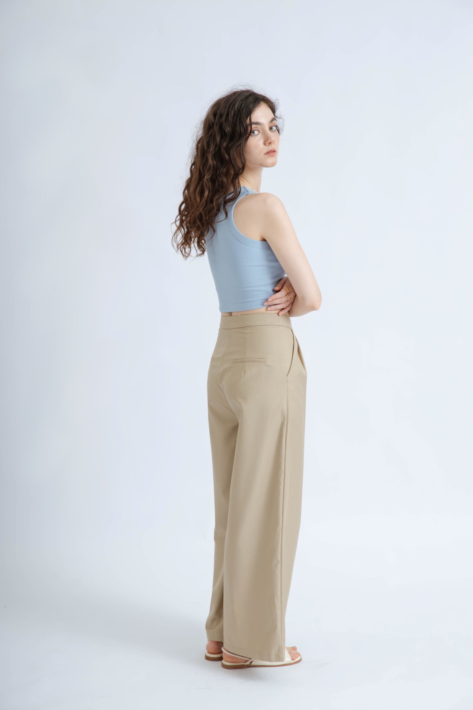 Designed for both comfort and sophistication, these tailored pants feature a flattering high-rise fit and subtle front pleats that add a refined touch. Crafted from a durable yet soft blend of 80% polyester and 20% viscose, they offer a smooth drape and excellent shape retention throughout the day.