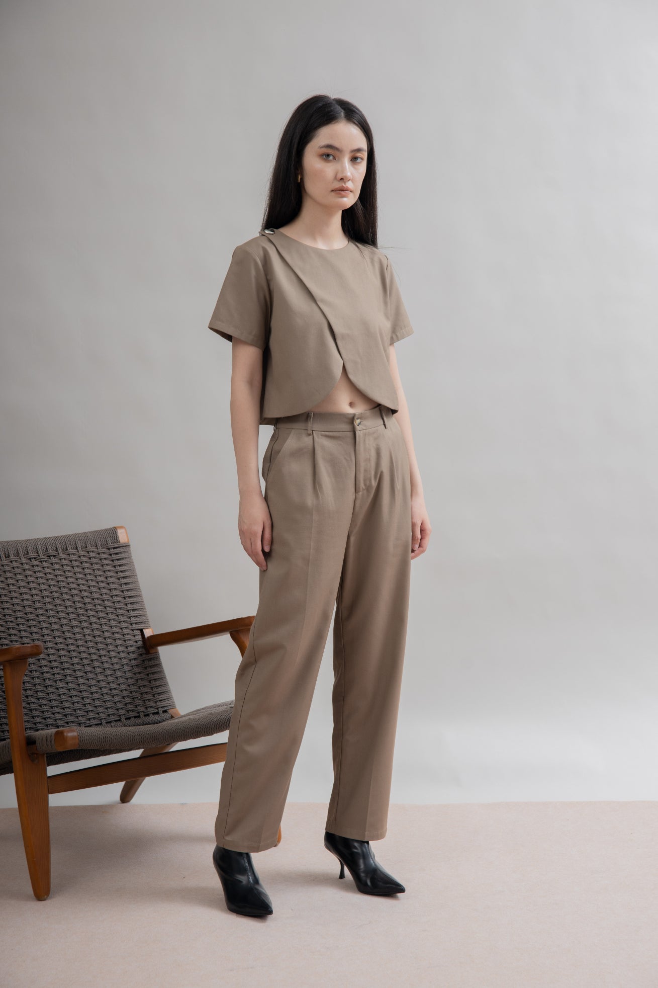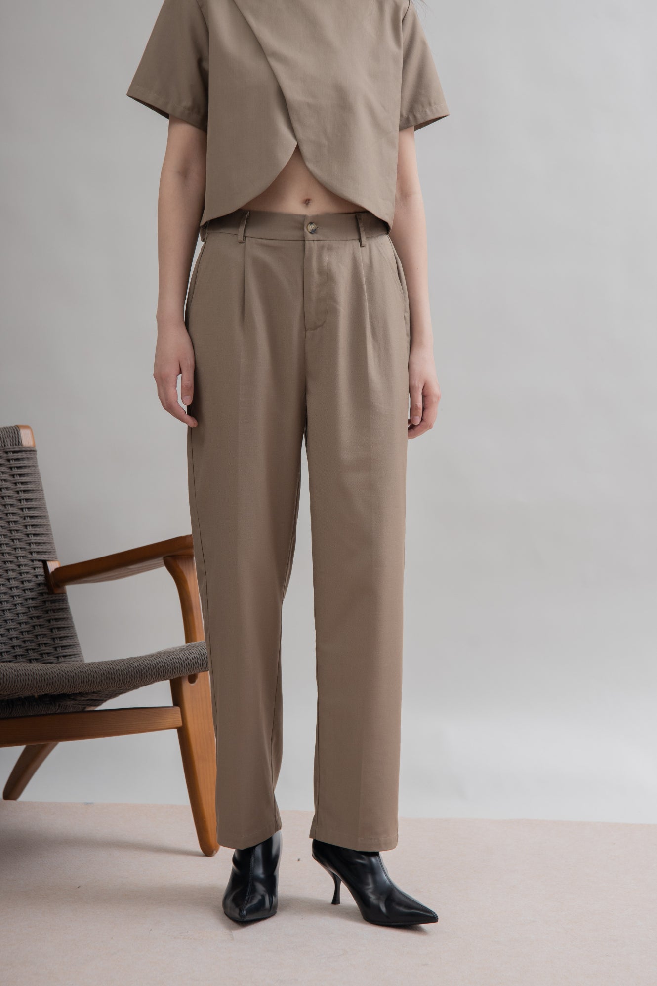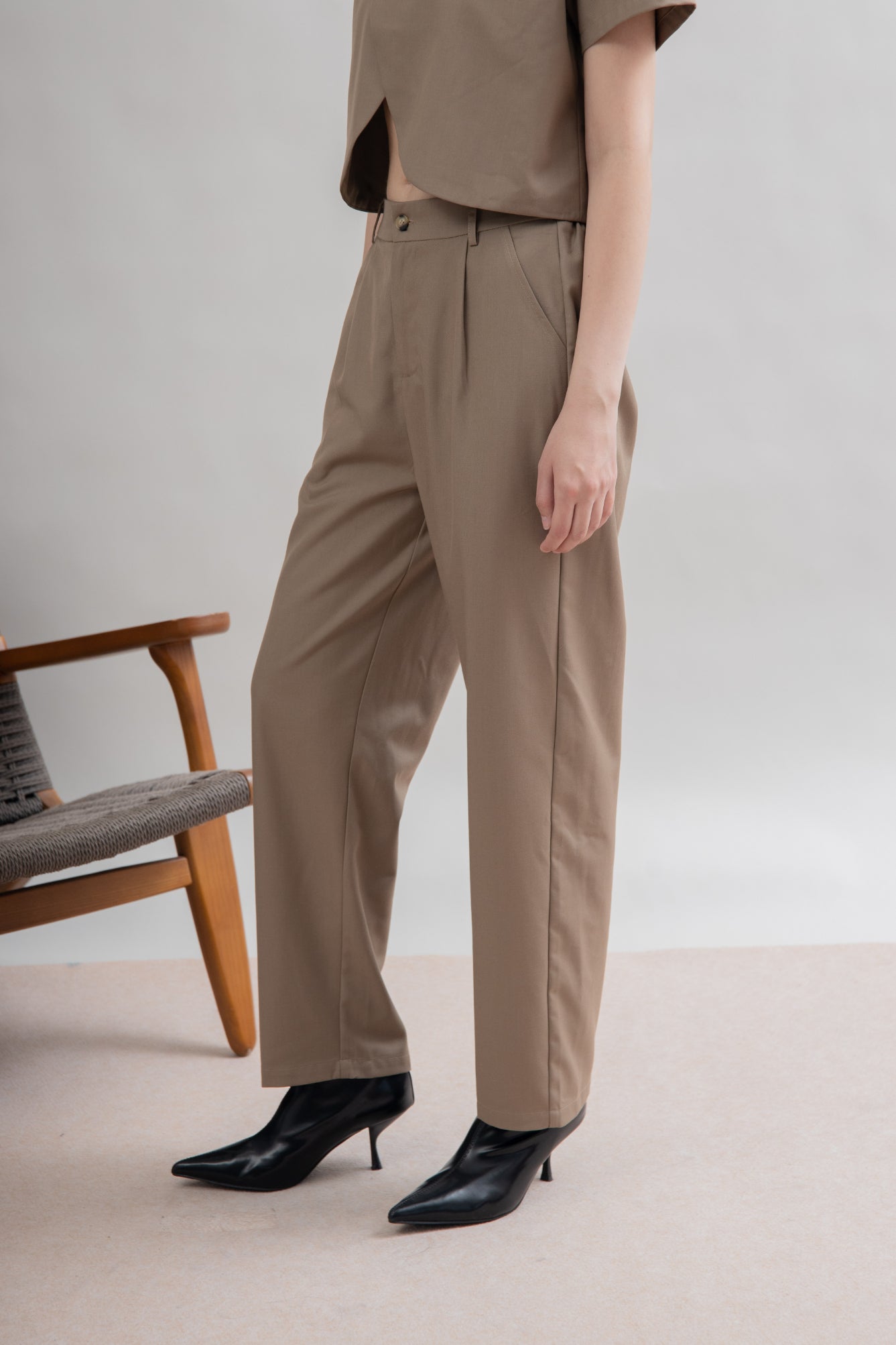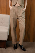 A timeless straight cut trouser in a versatile khaki tone, designed with subtle front pleats for a tailored touch. Crafted from 80% Polyester and 20% Viscose, it combines structure with a soft drape for all-day comfort. Effortlessly refined, this piece transitions seamlessly from workwear to casual styling.