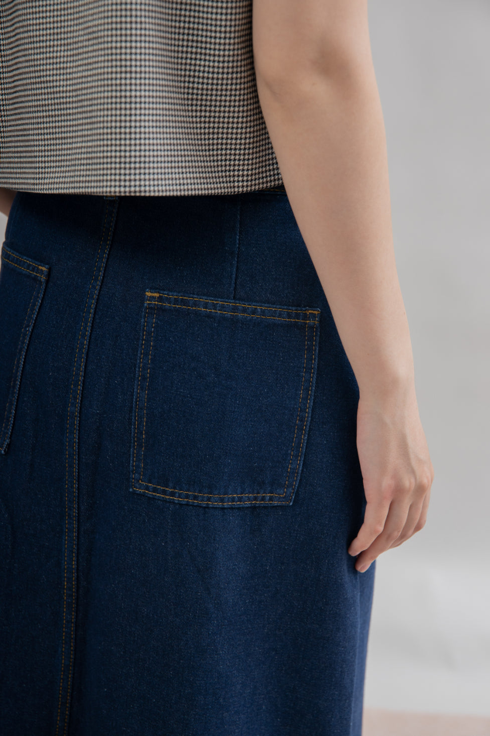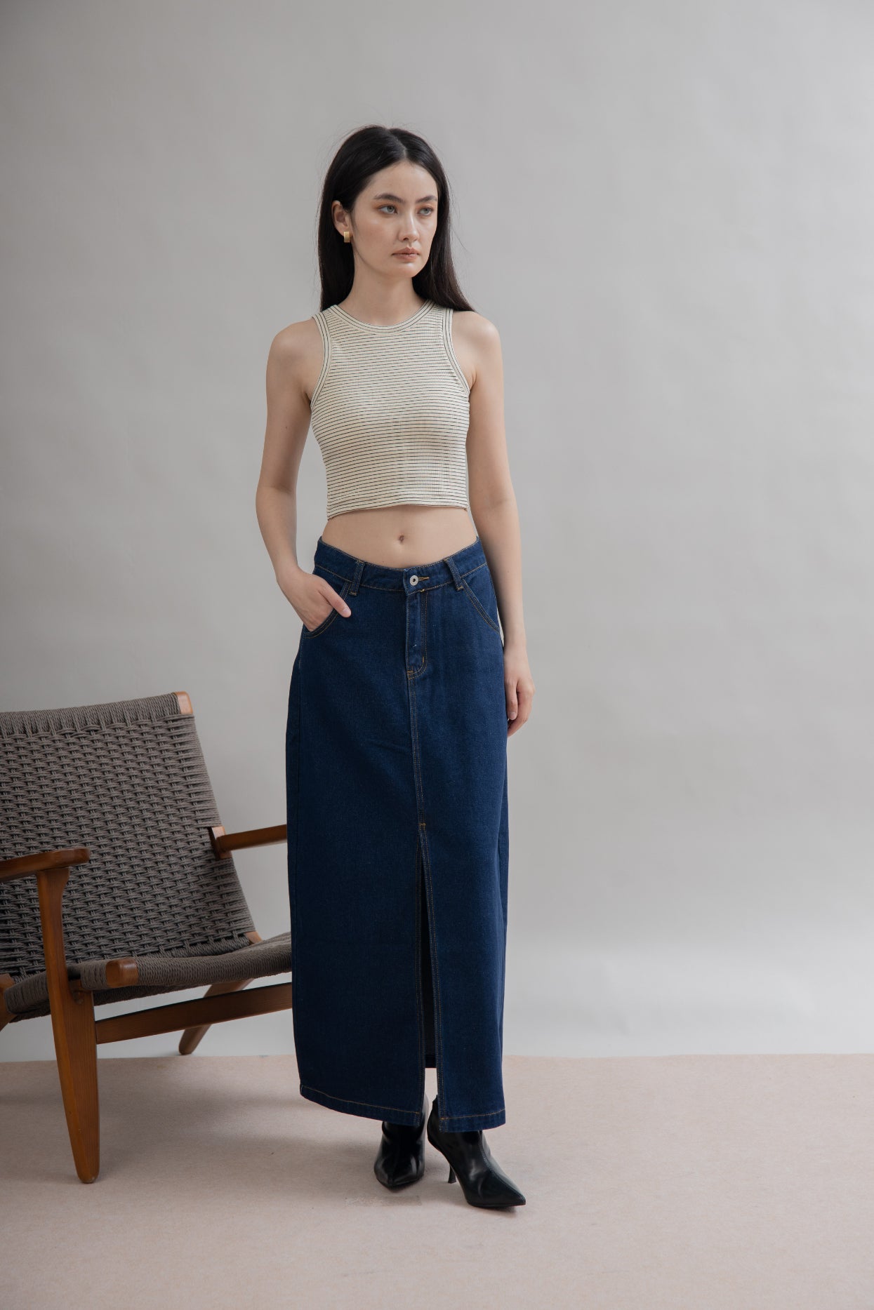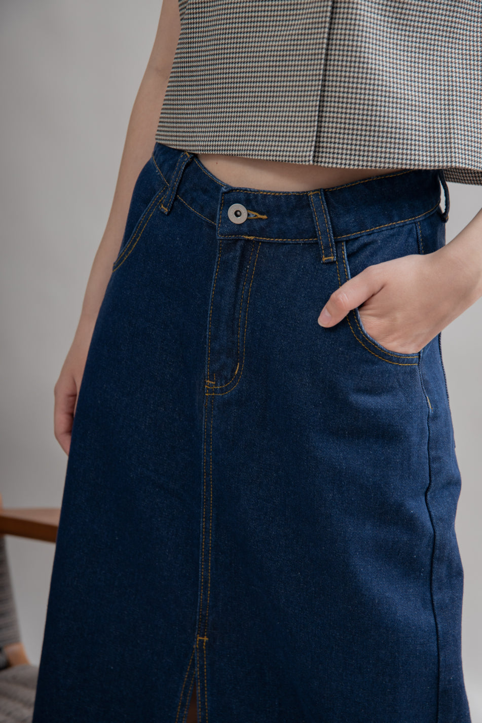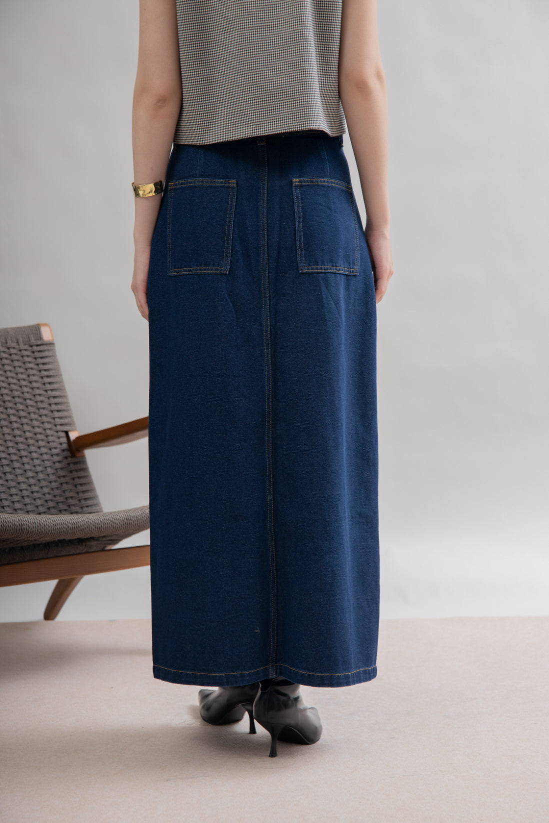 This denim long skirt is crafted from 100% Cotton and features a front slit, plus side pockets in a classic ankle-length design. Ideal for those who appreciate comfort and fashion, this non-stretchable skirt is perfect for any occasion.