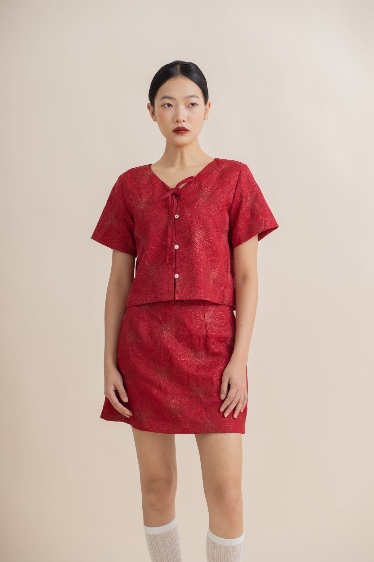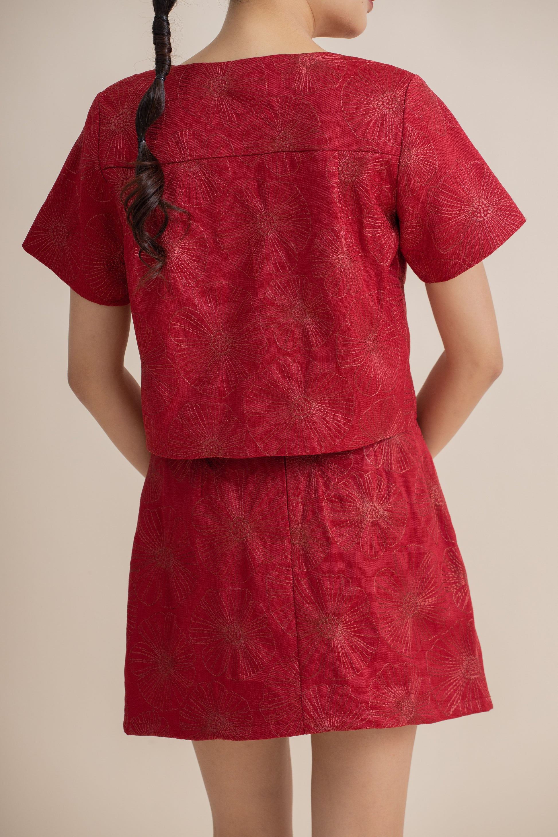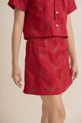 Full Blossom Embroidery Short Skirt (Red)