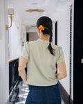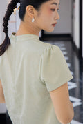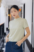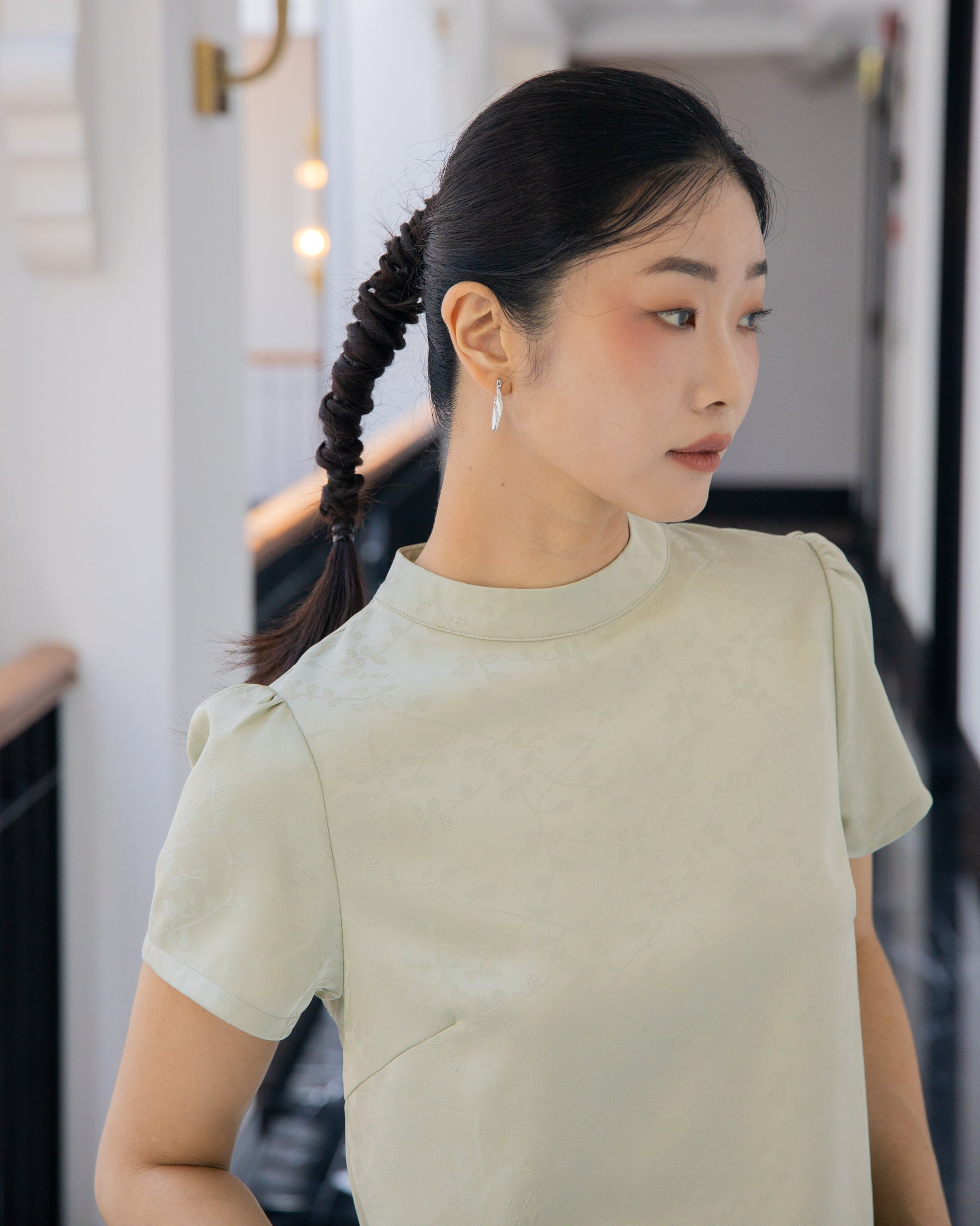 Glimmer Floral Mock Neck Top (Pastel Green)