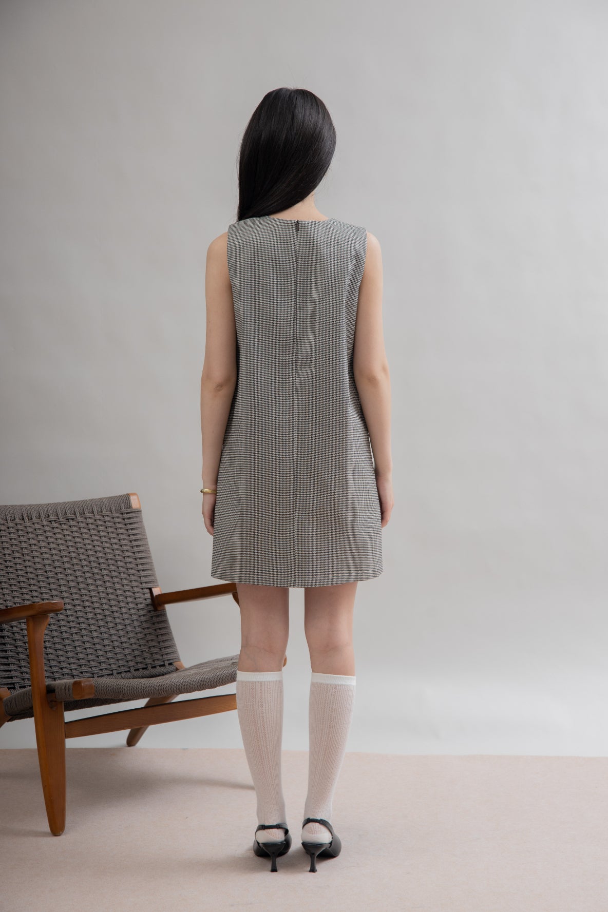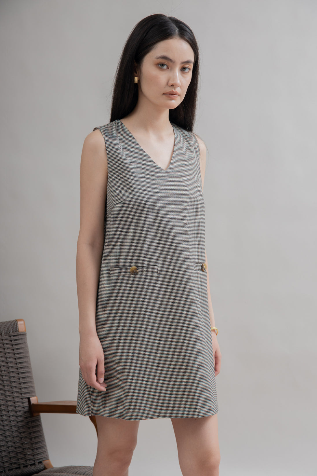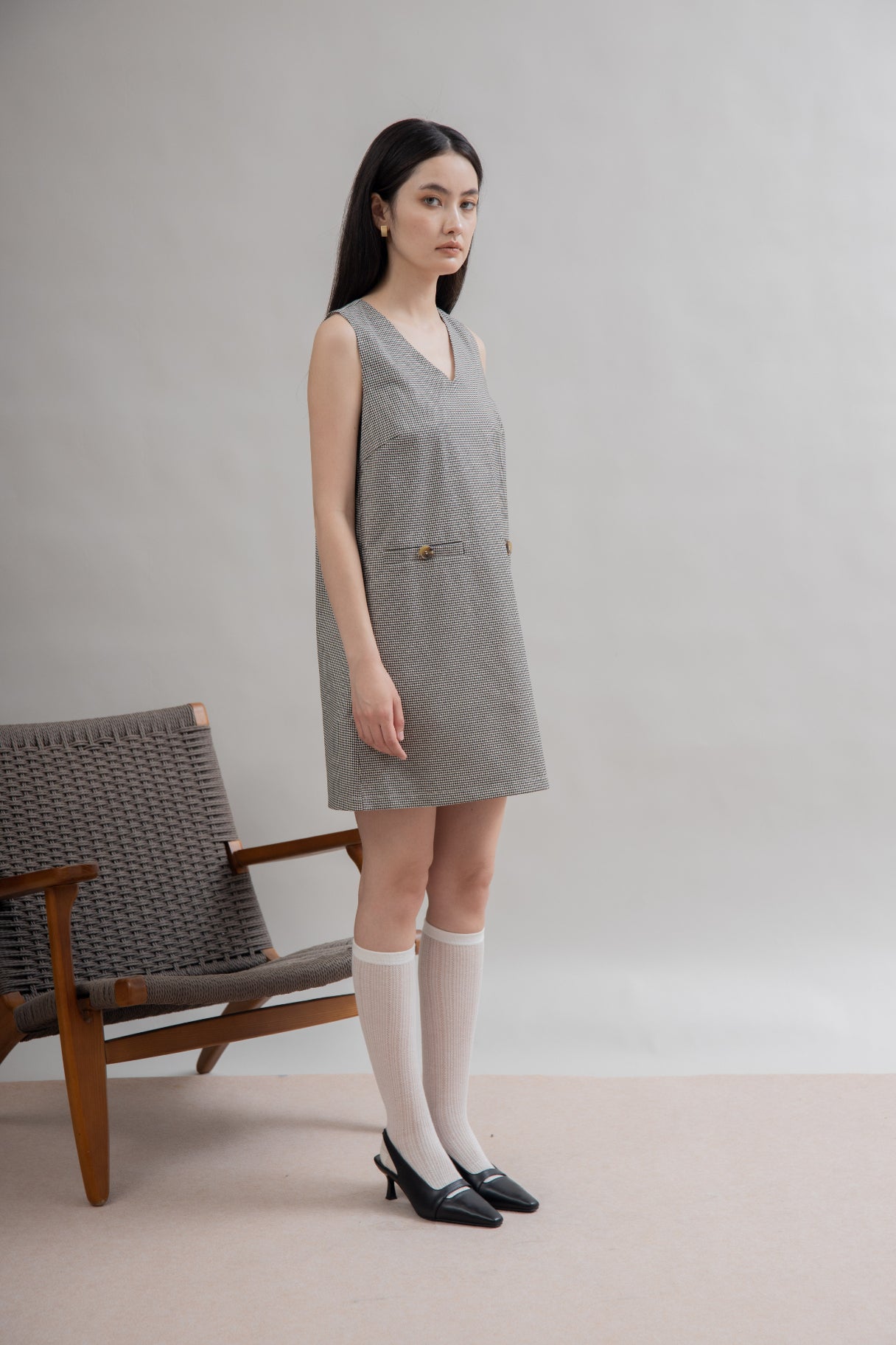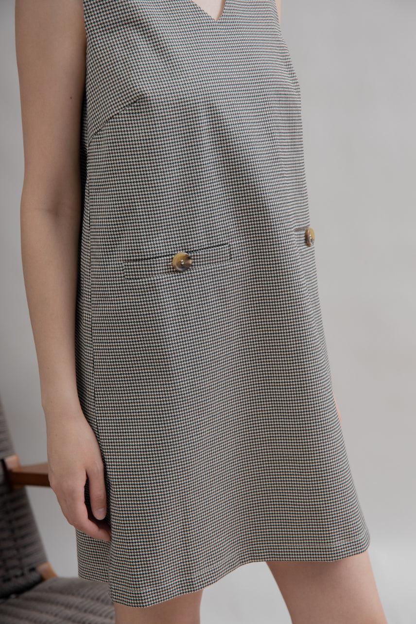 Houndstooth V-Neck Sleeveless Dress (Slategrey)