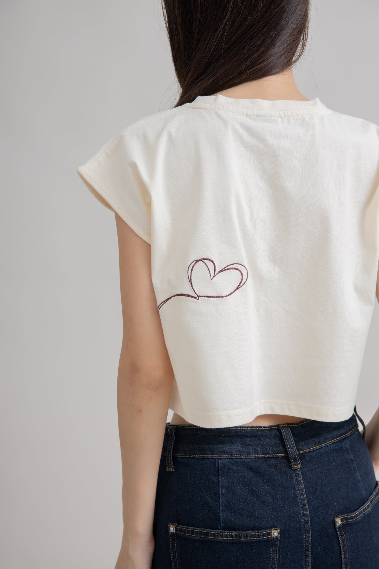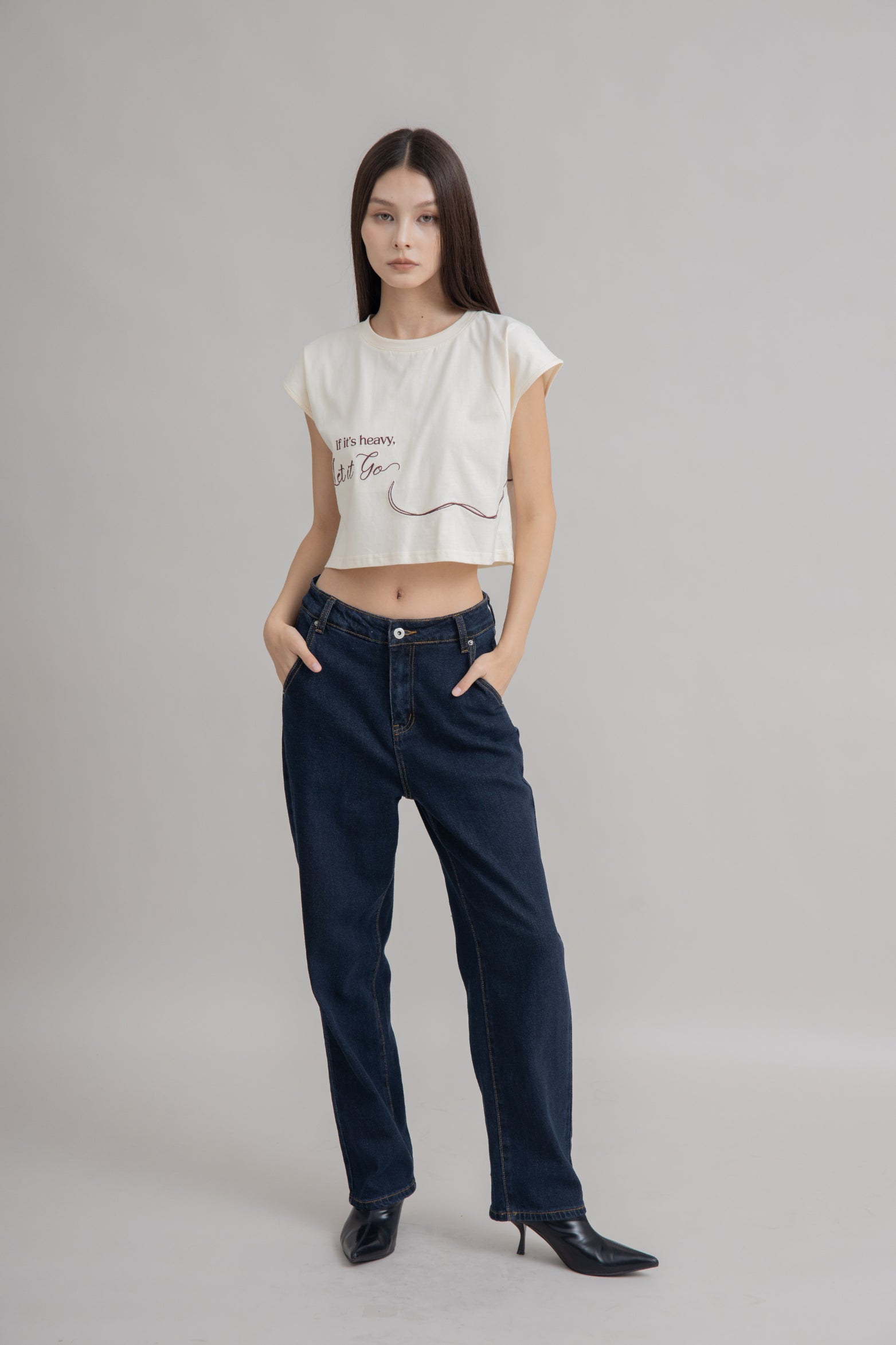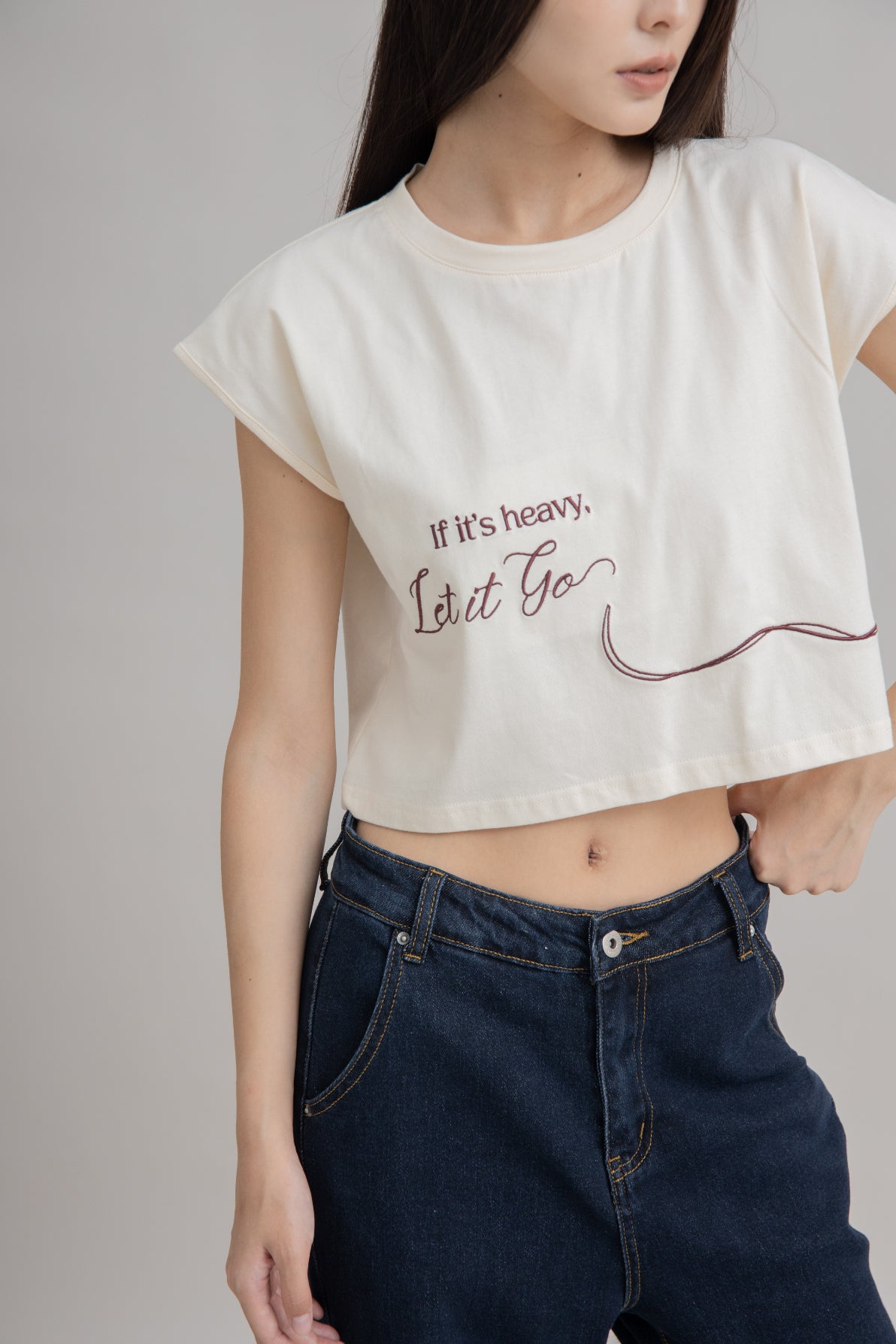 Keep it light with this beige crop tee, crafted from 100% cotton for a soft, breathable feel. Featuring delicate embroidered lettering that reads “If It’s Heavy, Let It Go”, it’s a gentle reminder wrapped in everyday style. Designed with a relaxed cropped cut, it pairs effortlessly with high-waist bottoms for a laid-back yet meaningful look.