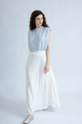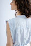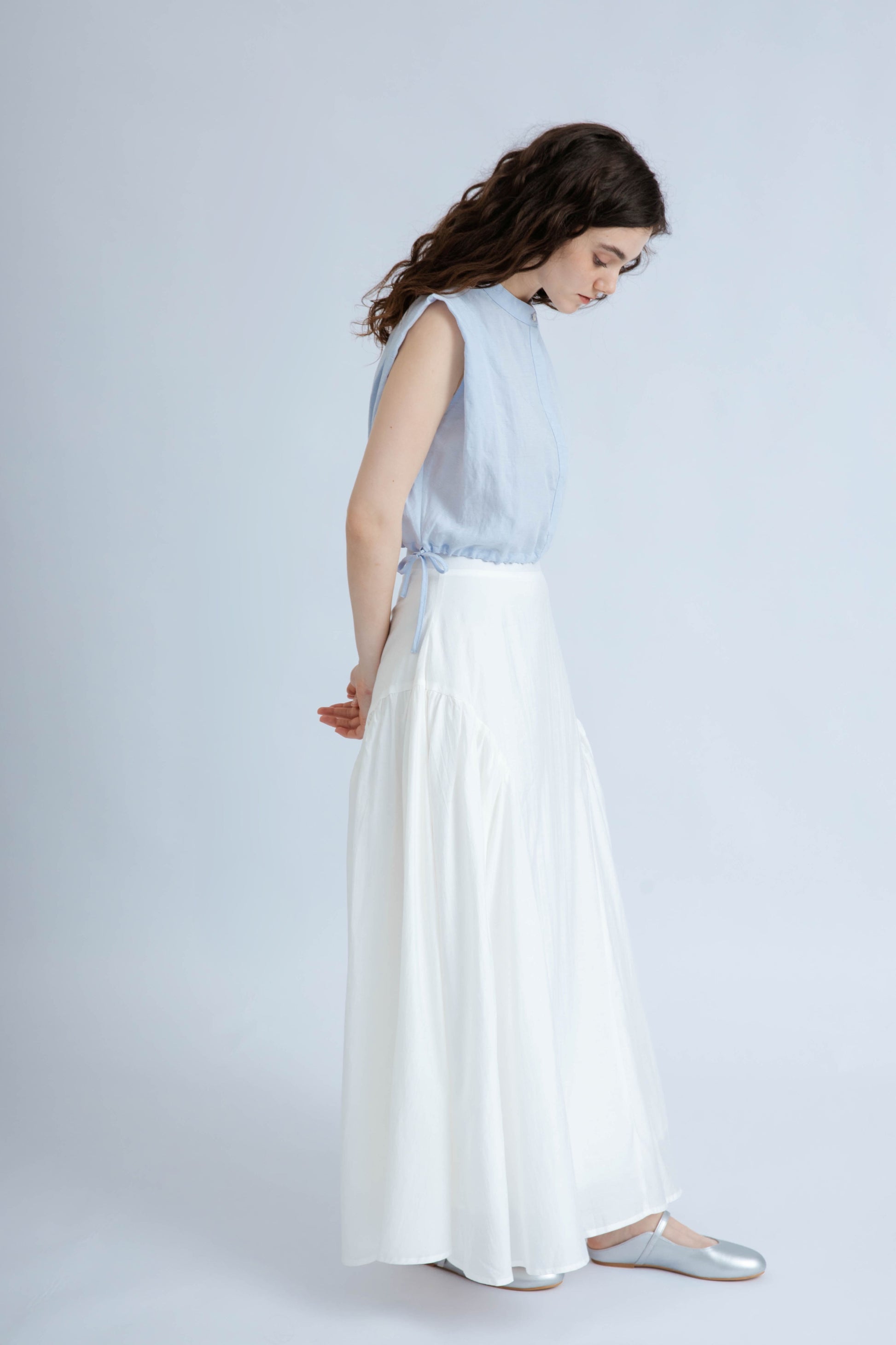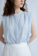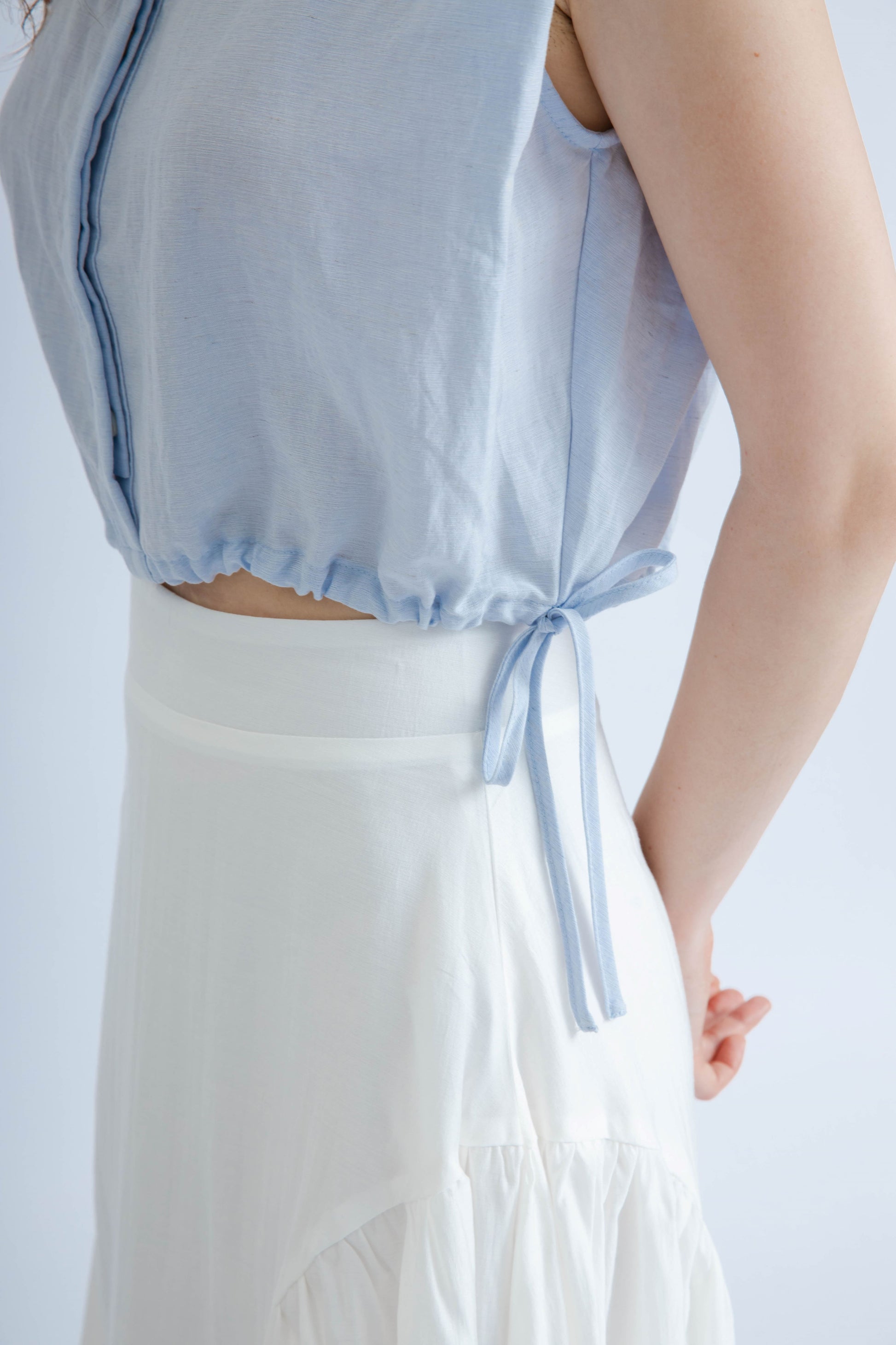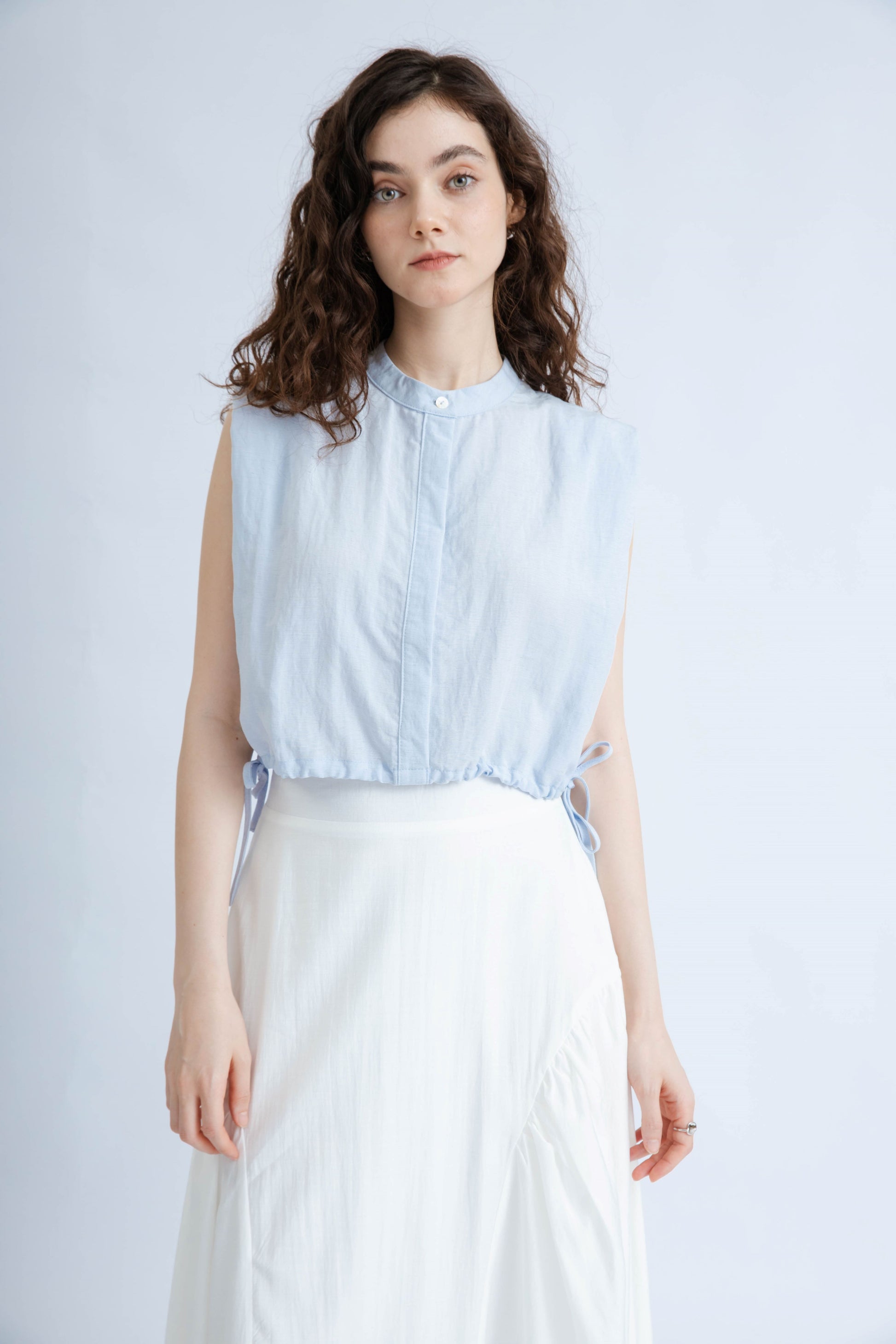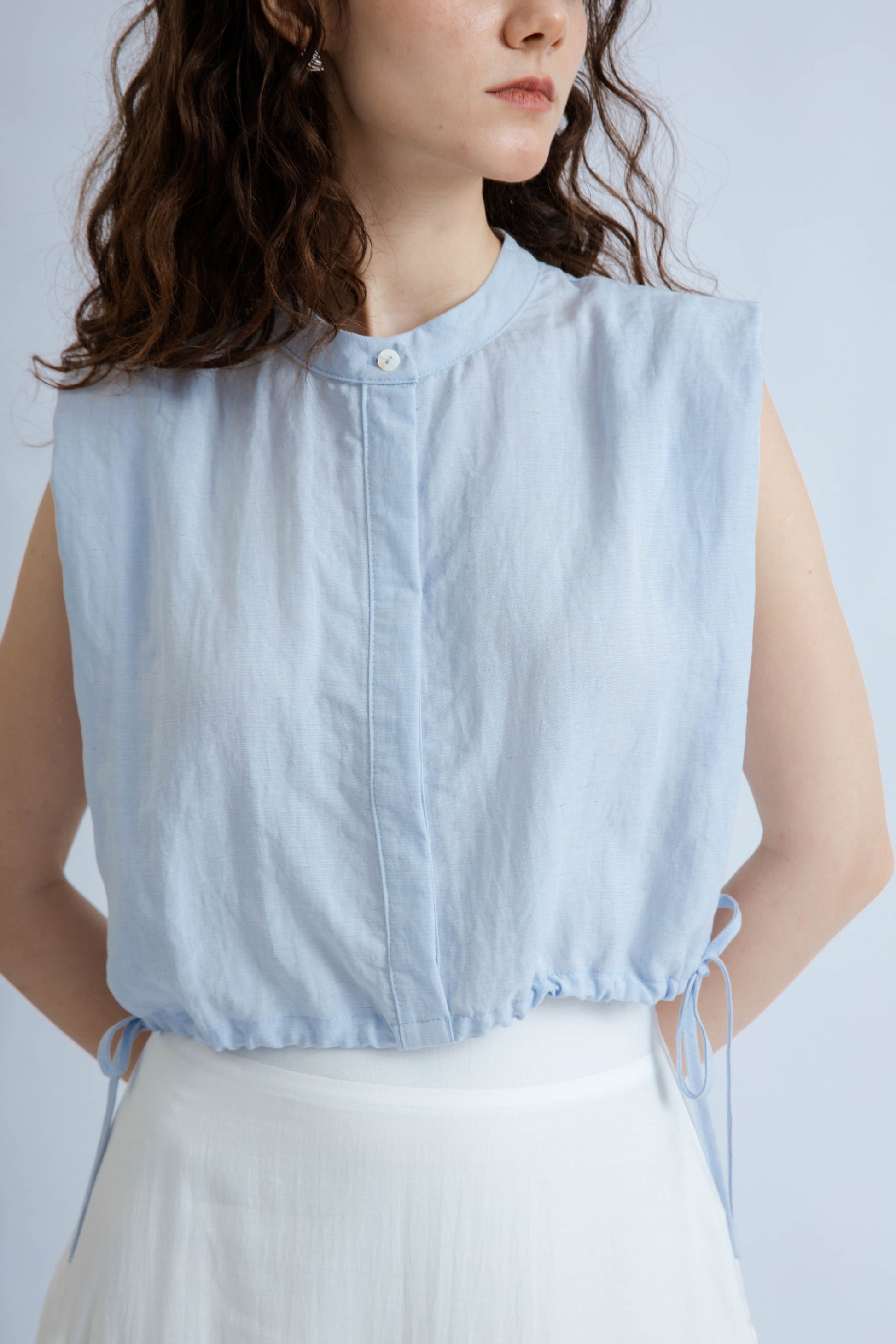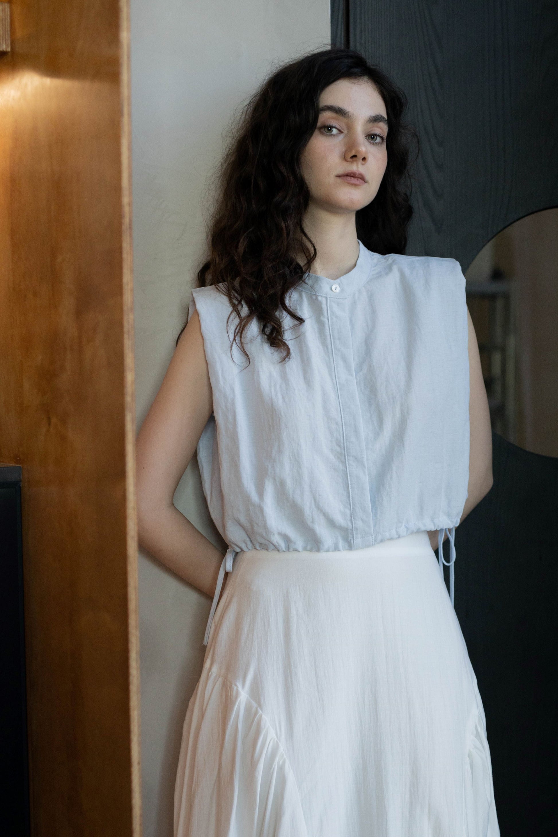 Effortless and modern, this sleeveless top is crafted from a premium blend of 51% Tencel, 36% Viscose, 9% Polyamide, and 4% Linen—designed for breathable comfort and a fluid drape. The minimalist silhouette is elevated with a subtle sheen and soft texture, while the adjustable drawstring hem adds a contemporary, customizable touch.