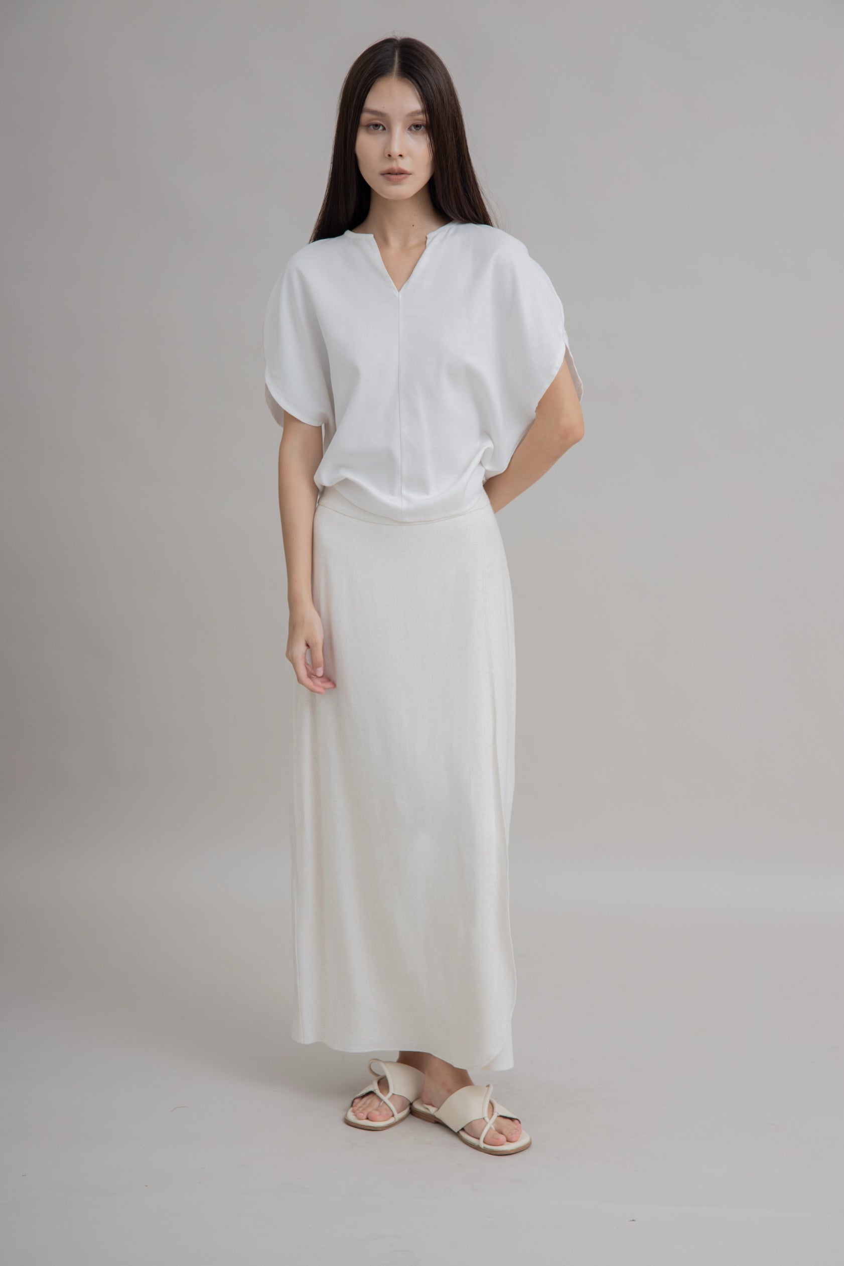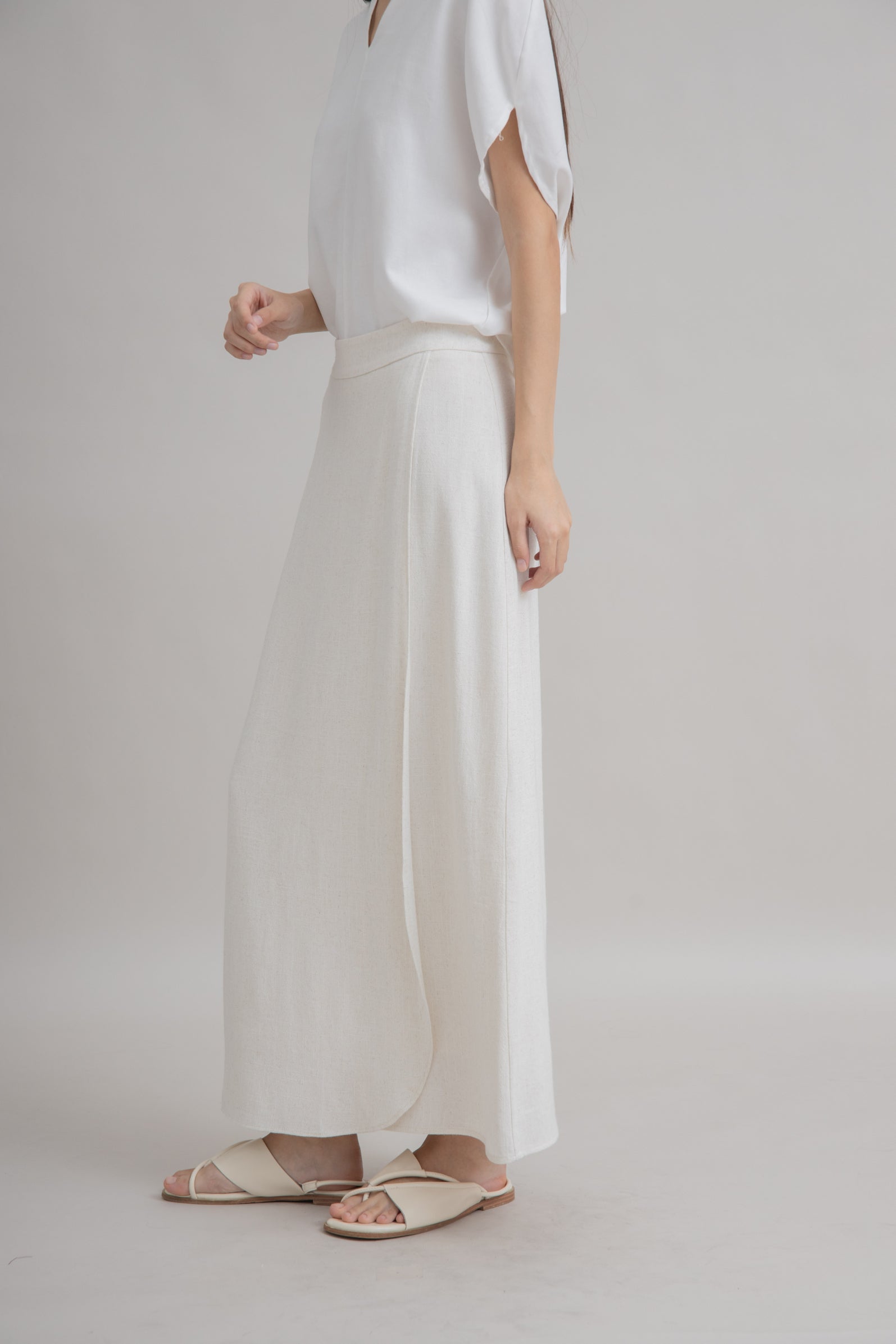 Linen Overlap Long Skirt (Beige)