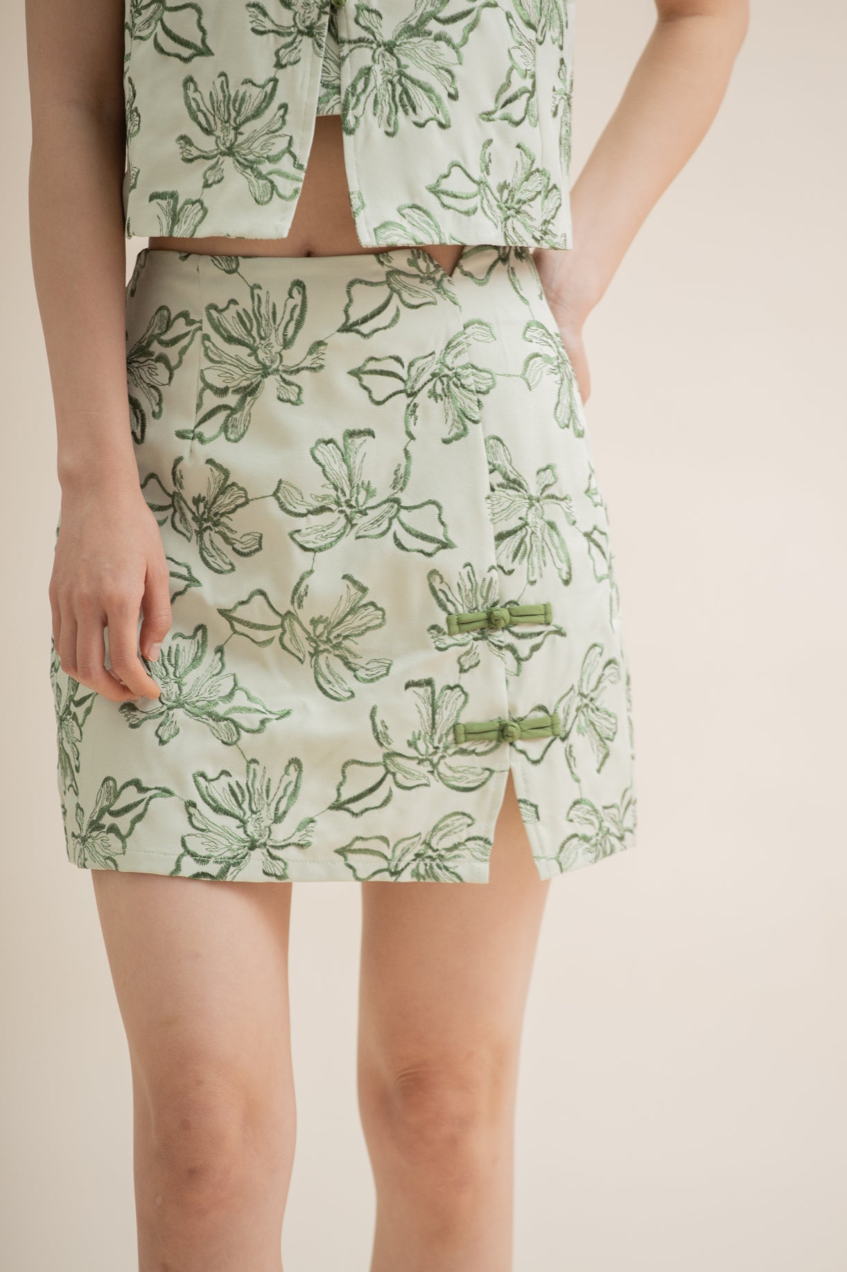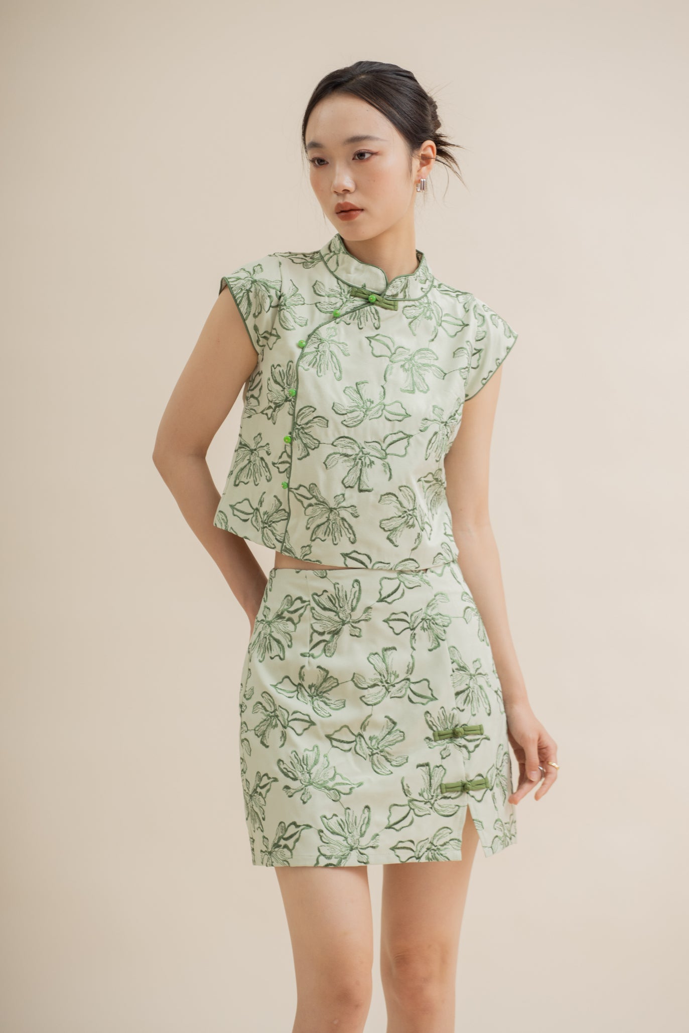 LingHua Embroidery Cheongsam Short Skirt (Green)