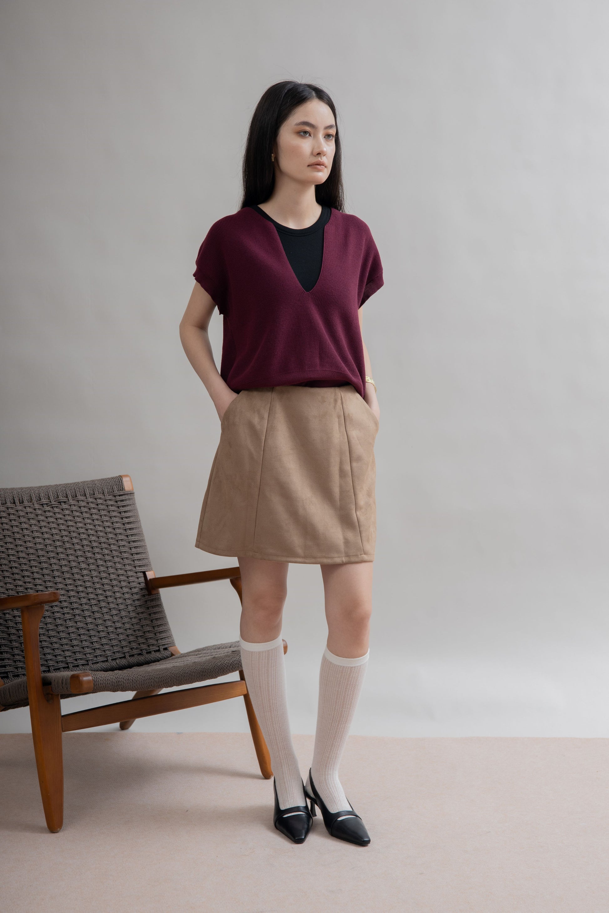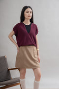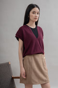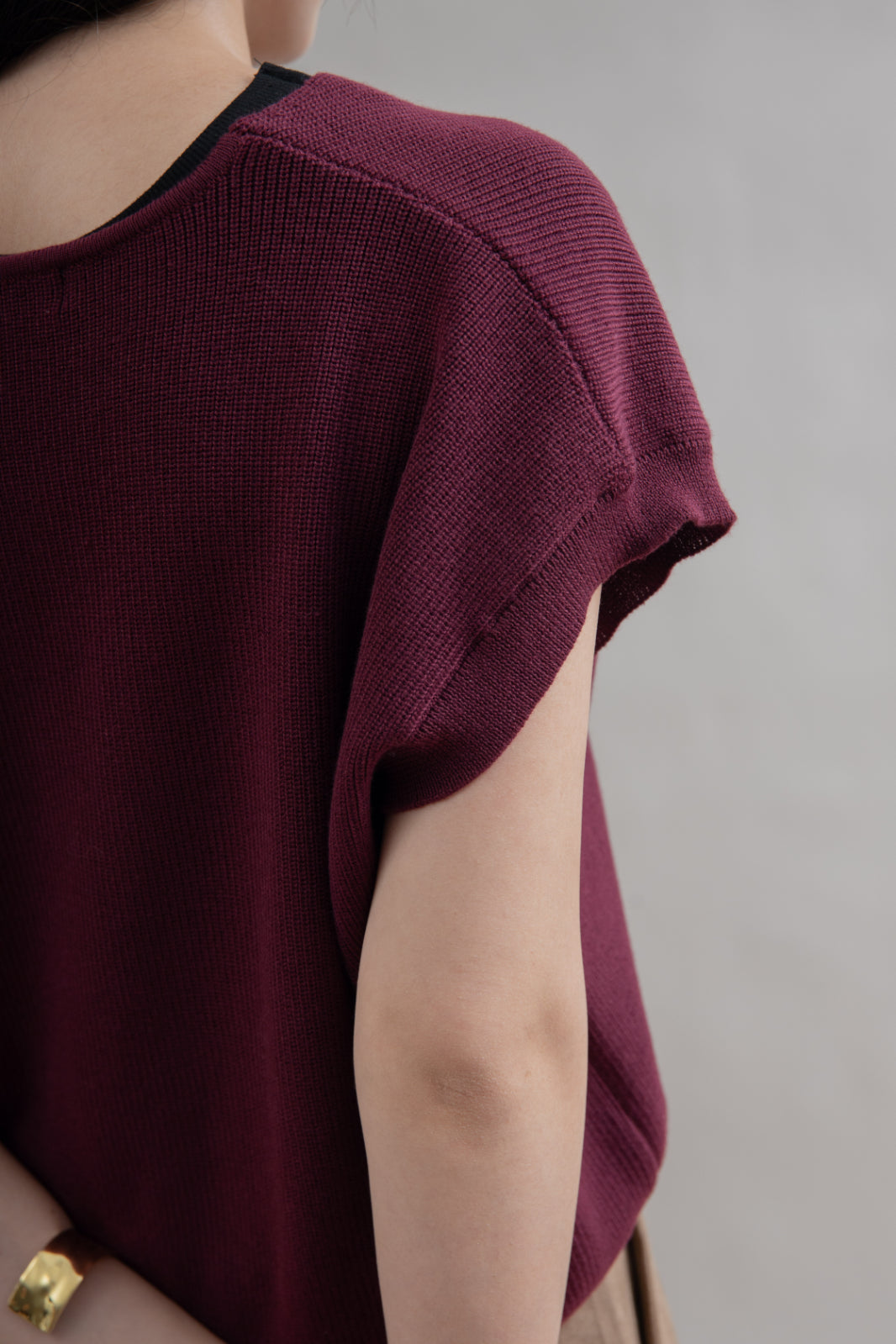 Effortless style meets everyday comfort. This relaxed knit top is crafted from 100% Recycled Polyester, giving it a soft, lightweight drape that feels easy on the skin and kinder to the planet. Designed with a flattering V-neckline and a loose, laid-back cut, it’s perfect for layering or wearing on its own. Available in classic grey and deep maroon, two versatile shades that transition seamlessly from casual days to cozy evenings.