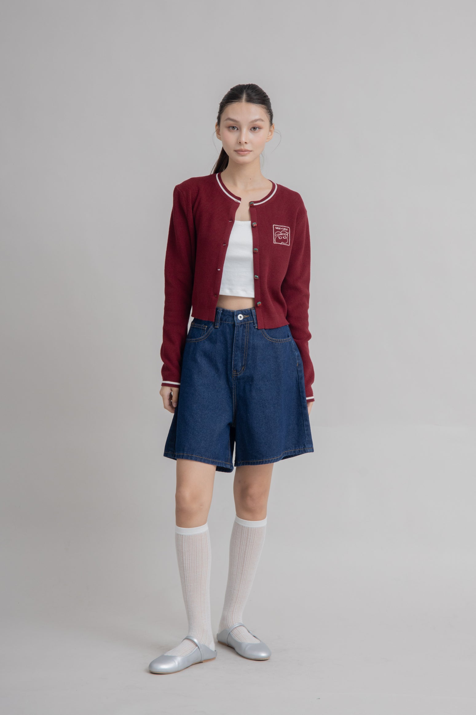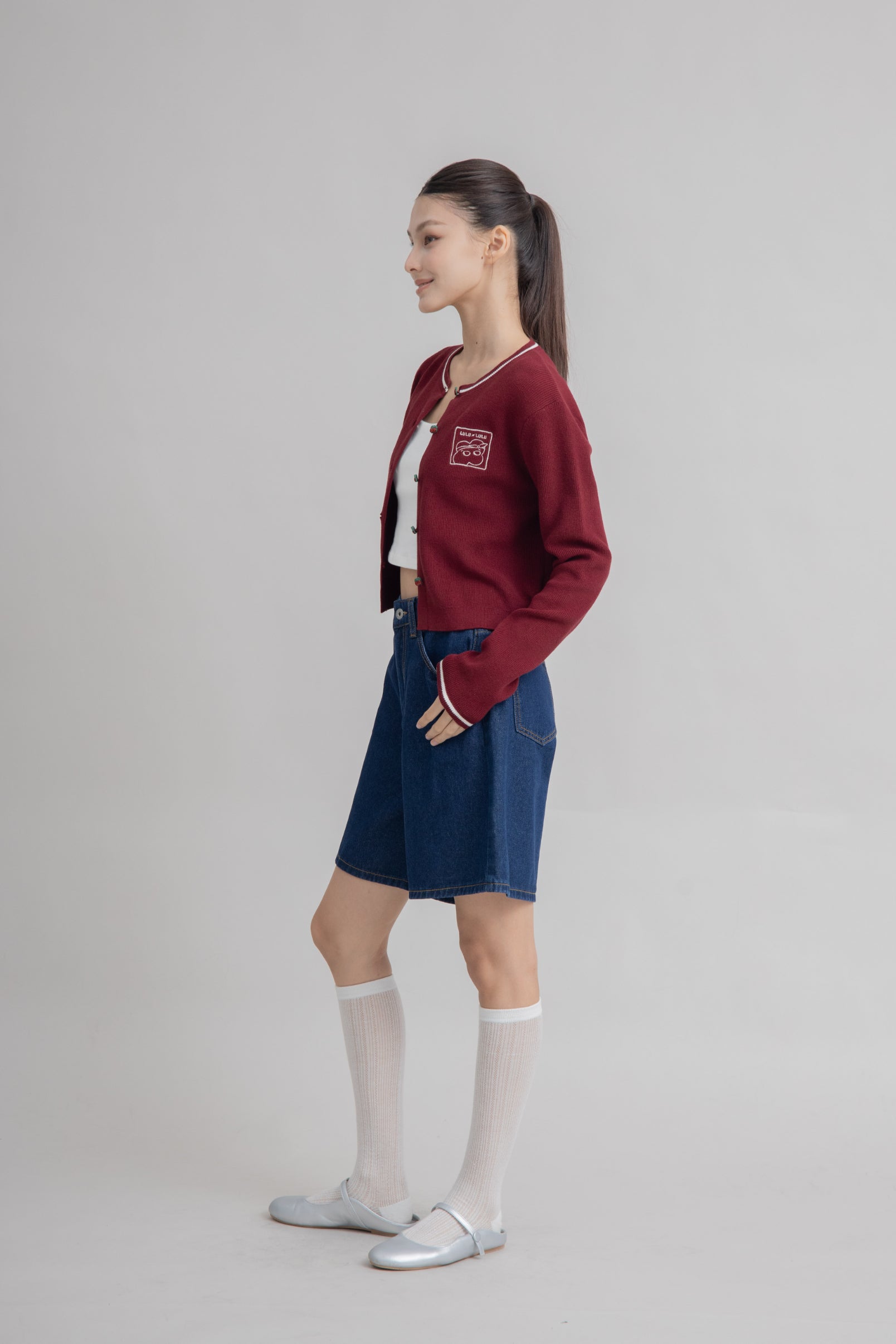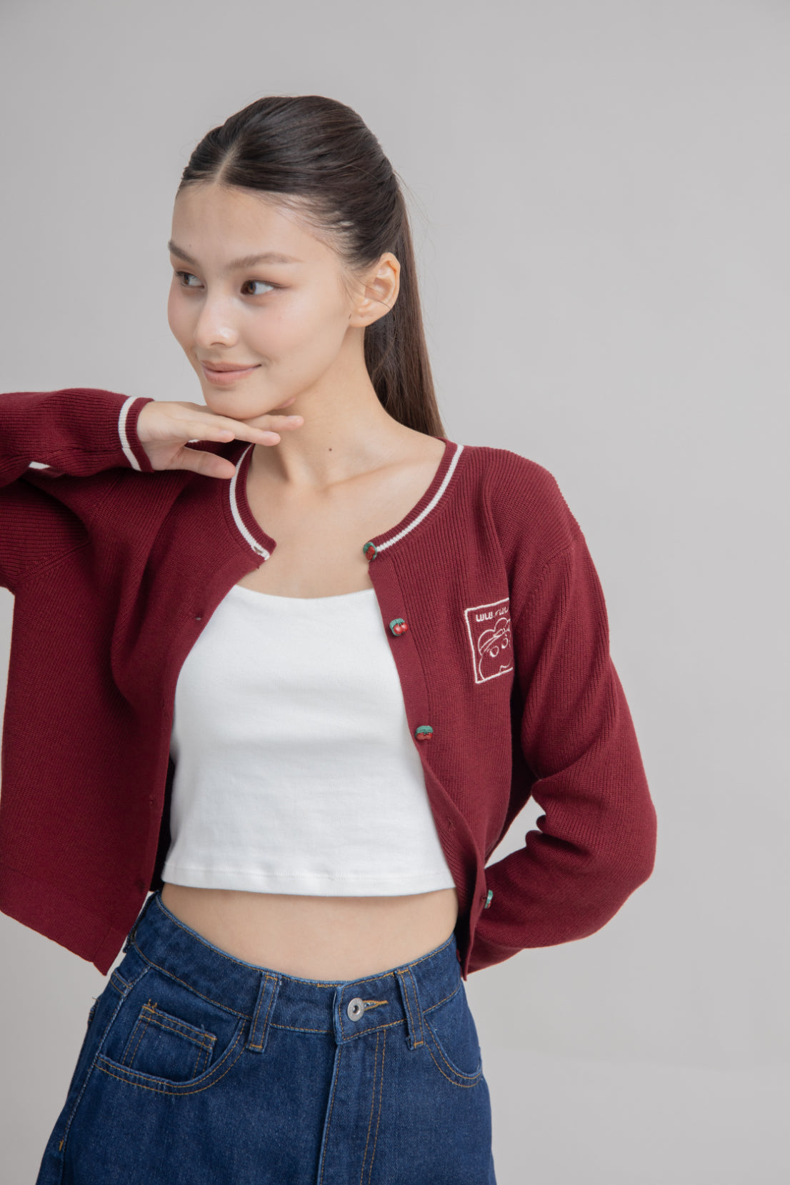 Sweet and cozy with a playful twist — this maroon knit long sleeve is detailed with contrast trim that highlights its classic silhouette. Down the front, cherry-shaped buttons add the cutest touch of personality. Made from 100% cotton, it’s soft, breathable, and perfect for layering or wearing on its own for a charming everyday look.