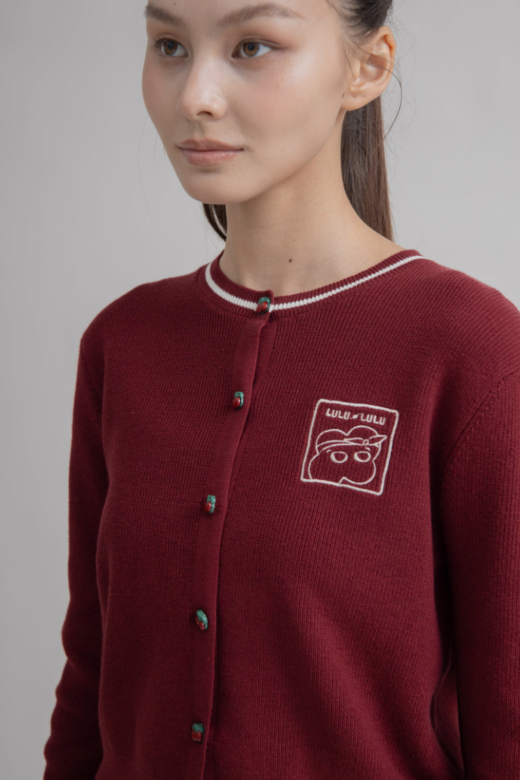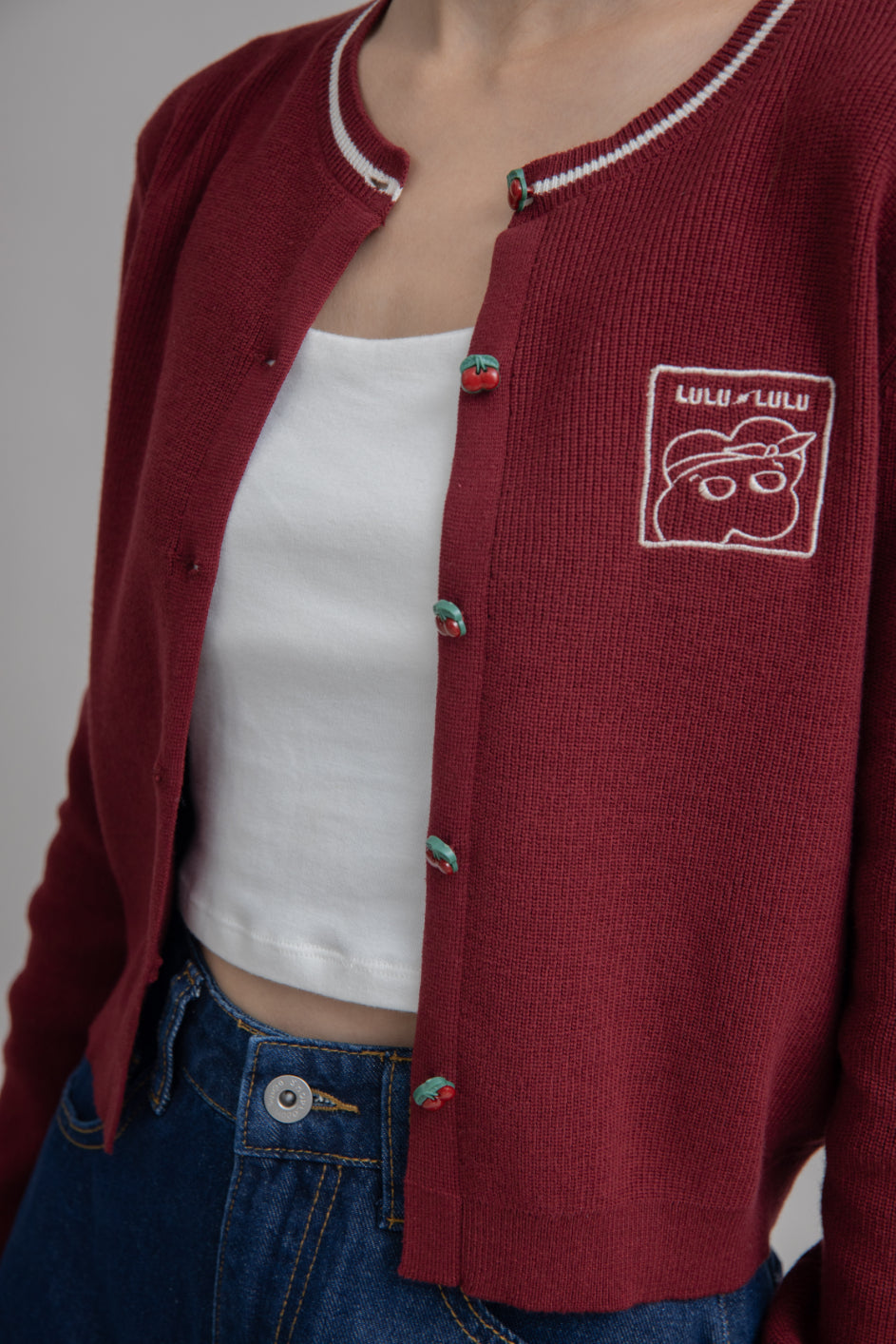 LULU Cherry Button Knit Long Sleeve (Maroon)