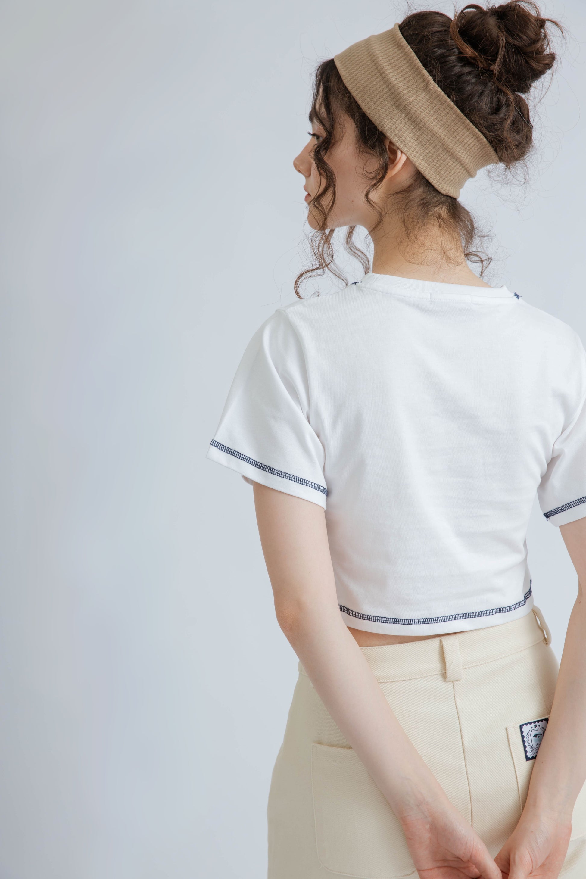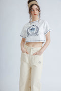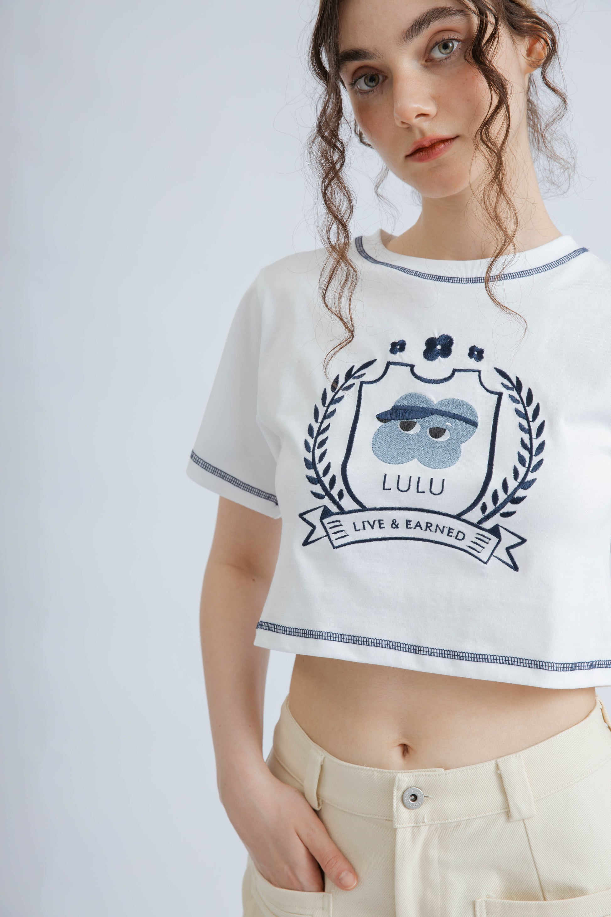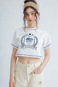LULU Contrast Thread Embroidery Crop Tee (Ivory)