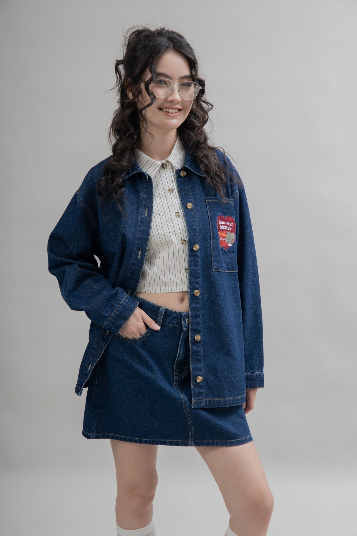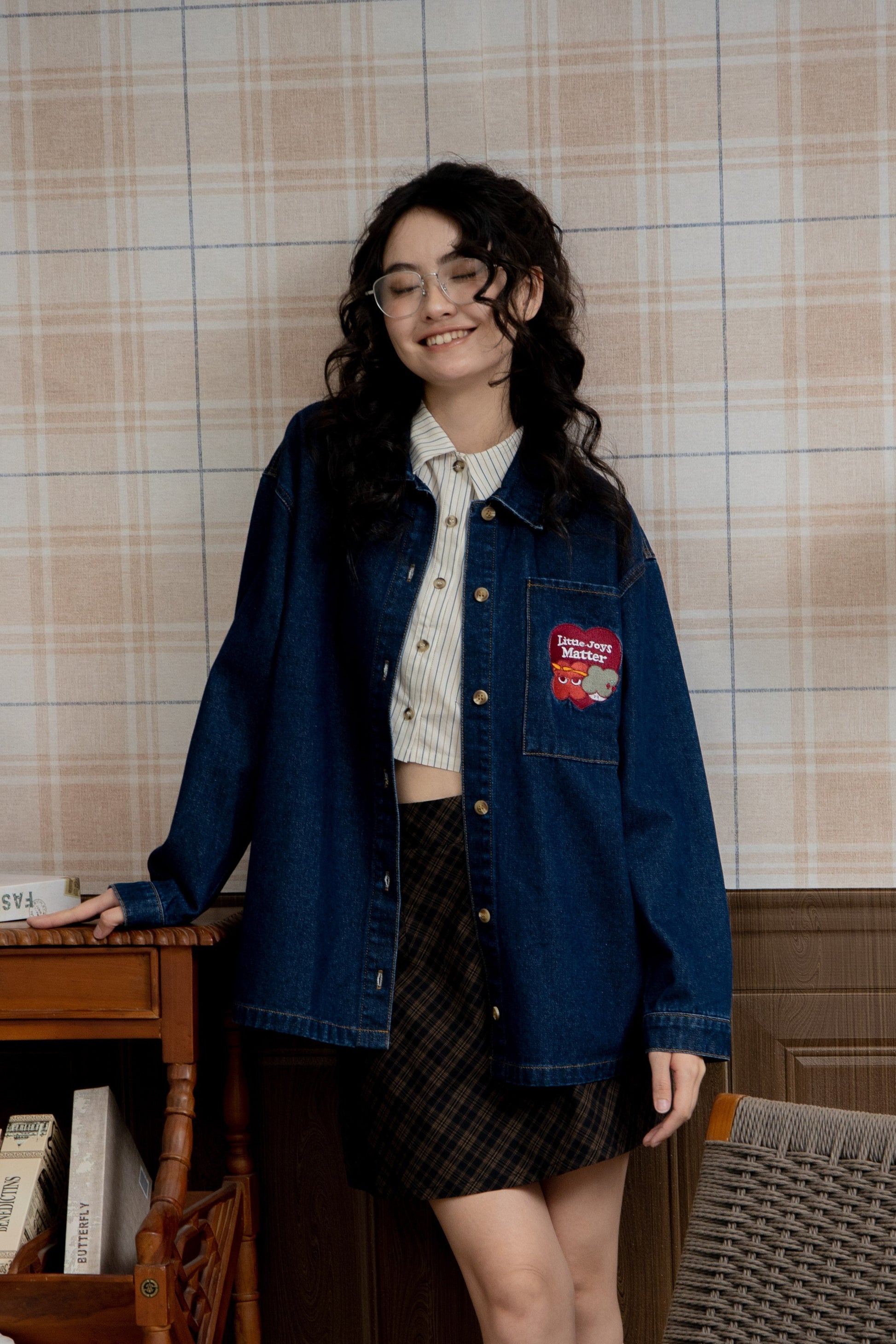 This oversized denim jacket blends classic street style with a hint of charm. Made from a soft yet structured mix of 73.3% cotton, 11.7% polyester, and 15% viscose, it’s designed for comfort with a relaxed, easy fit. A standout red LULU embroidery at the front pocket adds a playful signature touch—making it the perfect throw-on layer for everyday edge with personality.