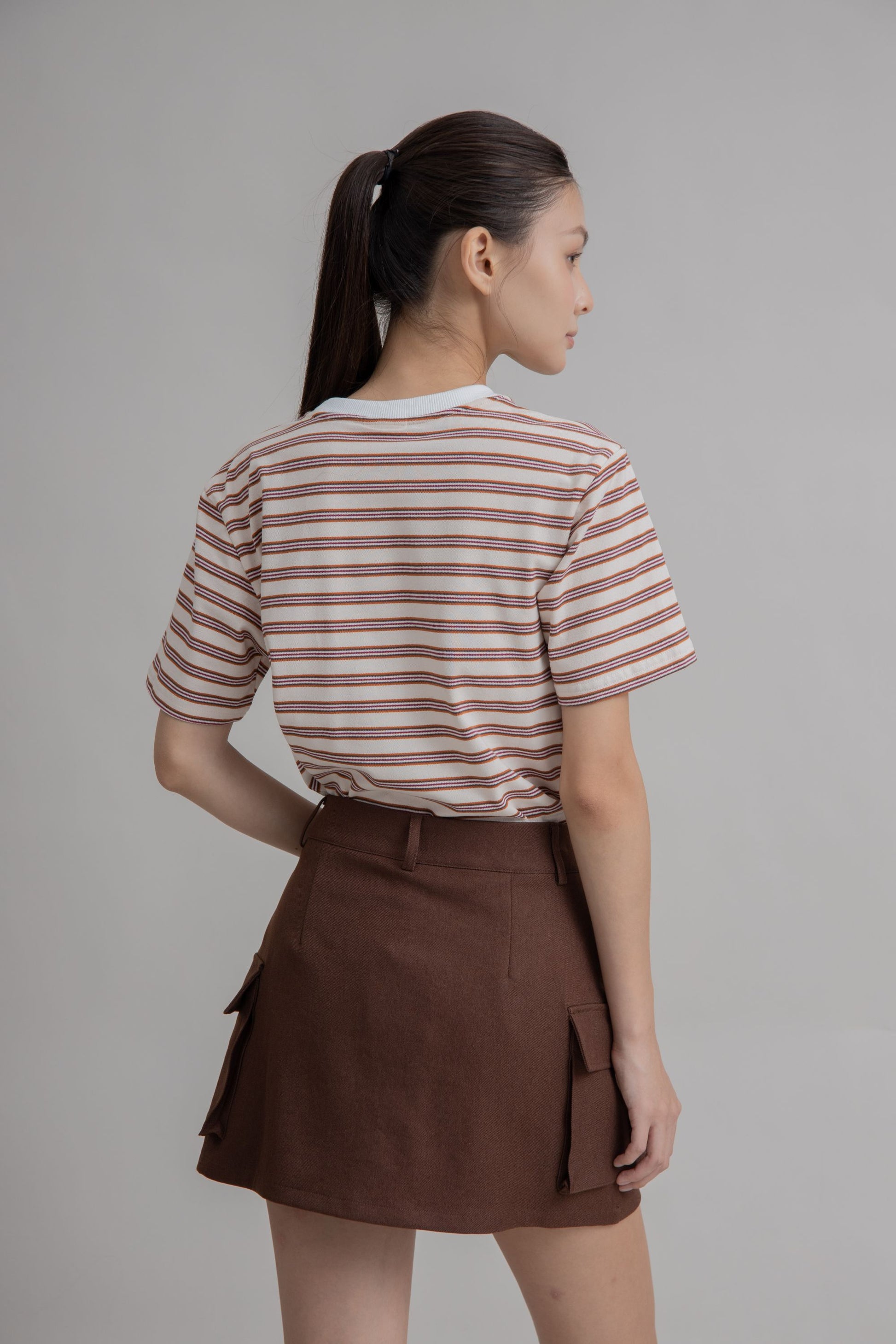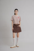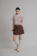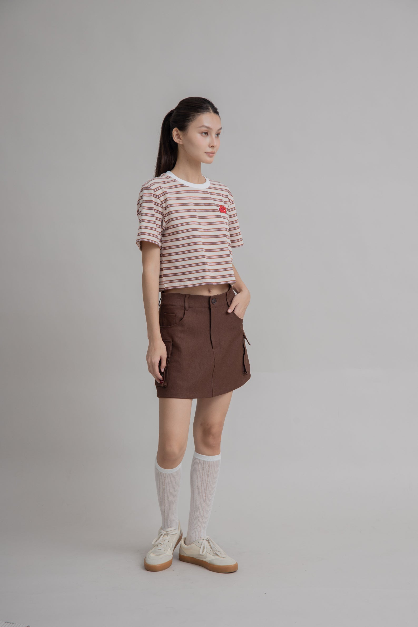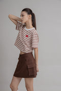 LULU Embroidery Stripes Crop Tee (Beige Stripes)